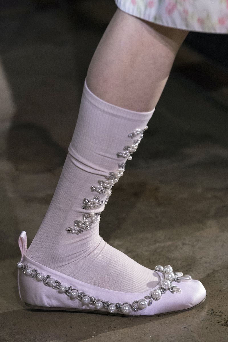 Il Balletcore è naturalmente il passo successivo nell'evoluzione dell'activewear, nella sua declinazione più principesca. Addio aderente lycra e il nylon, benvenuti cotone e cashmere: in una sorta di spotswear estetico ispirato al thriller oscuro del 2010 Black Swan, con Natalie Portman nei panni di Nina Sayers e Mila Kunis nei panni di Lily, oltre allo stile Twee dei primi anni del 2010. Il Balletcore abbraccia l'iperfemminilità, ma, come altri stili dell'era Tumblr, la sua storia è complessa, sinonimo dello stereotipo della ballerina ingenua, bianca e molto magra, frutto della diet culture e di canoni estetici molto lontani dalla consapevolezza di oggi. Adesso le ballerine si arricchiscono di una nuova veste, etica ed estetica. Per Miu Miu al trend di stagione si aggiungono tacchi a spillo e nuove colorazioni, dalle più classiche nuance rosa cipria, baby blue, bianco al rosso acceso. Rispetto ala collezione SS16 del marchio, che ha portato per la prima volta alla ribalta le décolleté cult con nastri e fibbie, la nuova generazione di slipper ha una silhouette più semplice, in pelle o in raso, ed è dotata di un semplice cinturino elastico logato. È ufficiale: il Balletcore è qui per restare.
