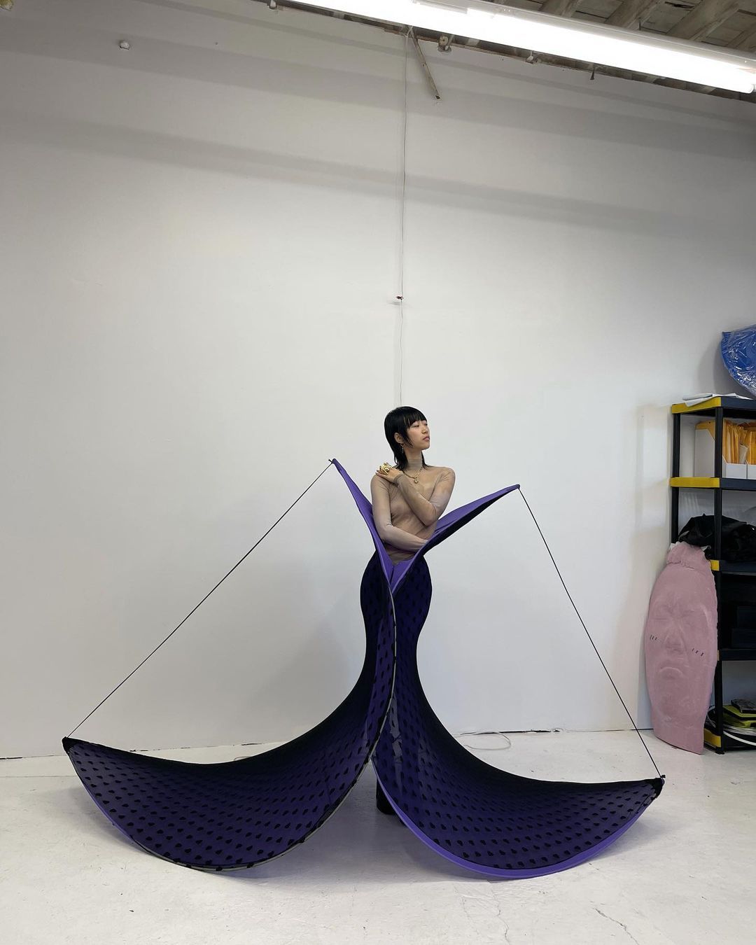 @bad_binch_tongtong, fondato dal designer nato a Wuhan e residente a New York Terrence Zhou, propone abiti che sembrano provenire dai sogni più estremi della nostra fase rem. Il marchio d'avanguardia è noto infatti per le sue silhouette fantasiose che sfidano le leggi della fisica tra enormi abiti a forma di palloncino, esagerati orli rigidi che formano un cerchio, code da sirene in stile cyber punk. Capi che sfidano la funzionalità (e spesso anche le leggi della fisica) per evocare emozioni. Non è un caso dunque che il brand si stia ora approcciando al Metaverso con una collezione NFT, un universo in cui tutto è possibile e in cui gli abiti scomodi non sono più un problema.