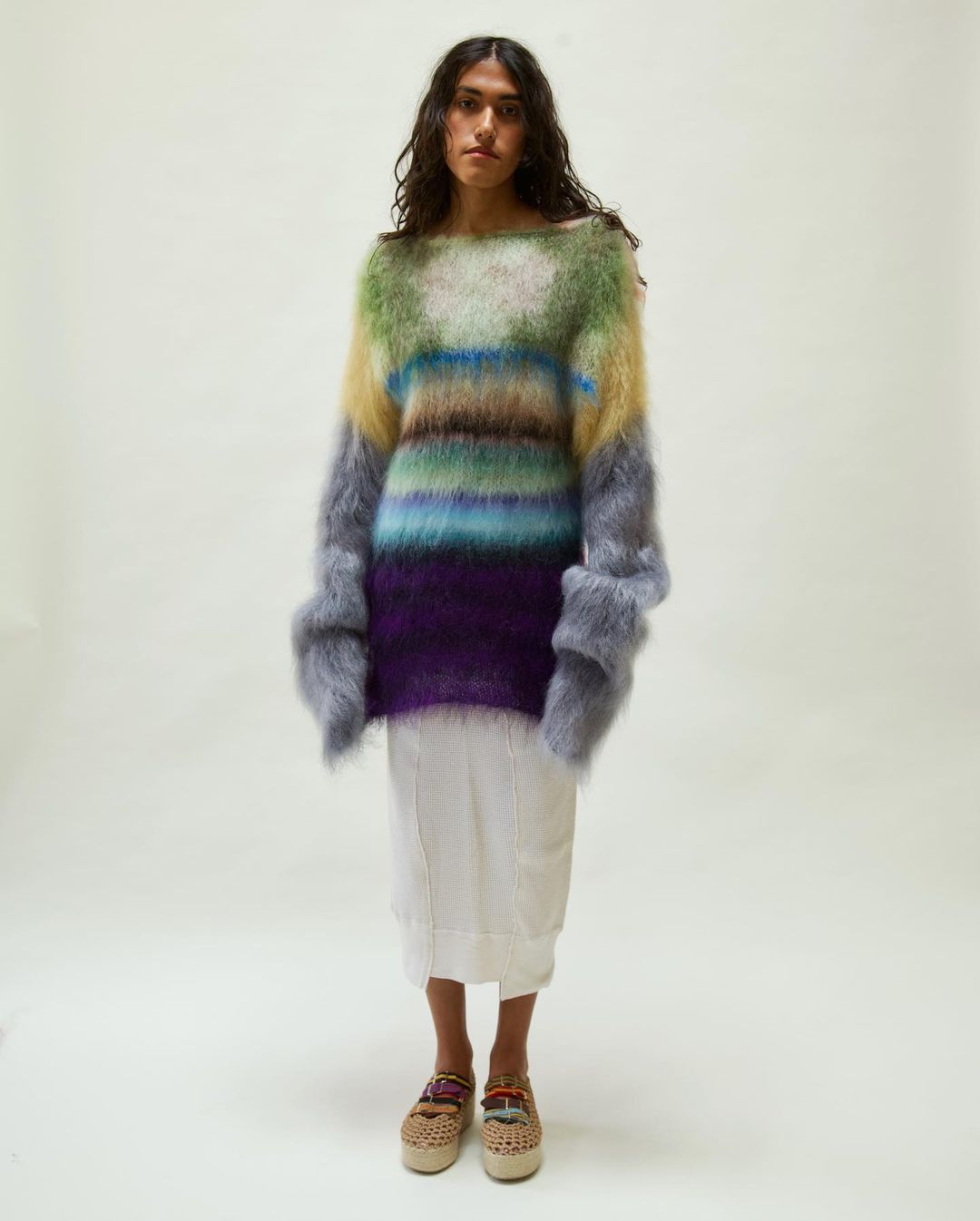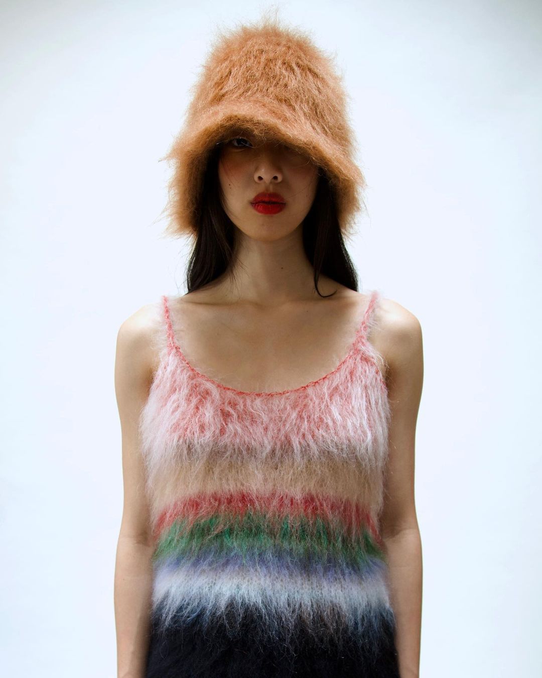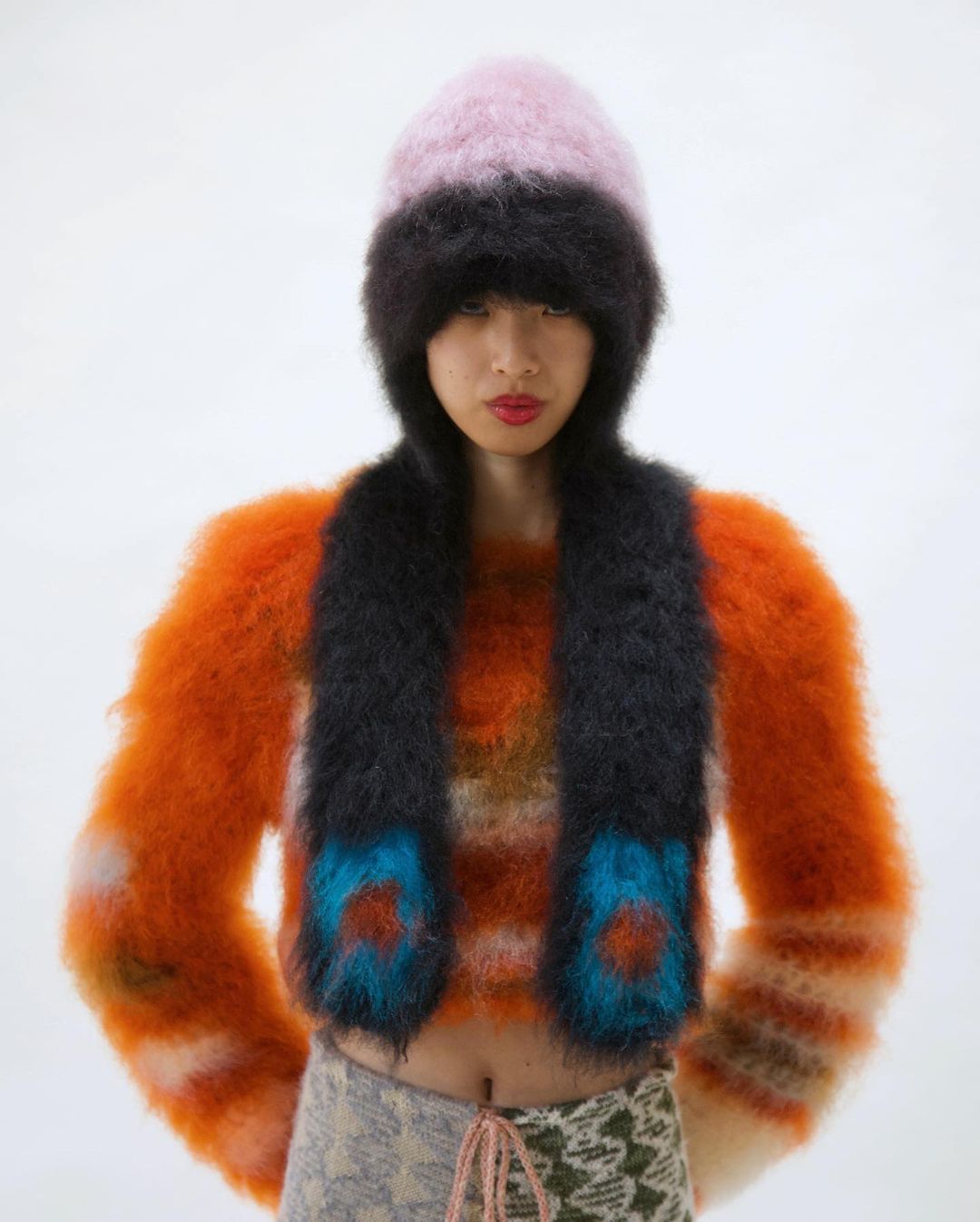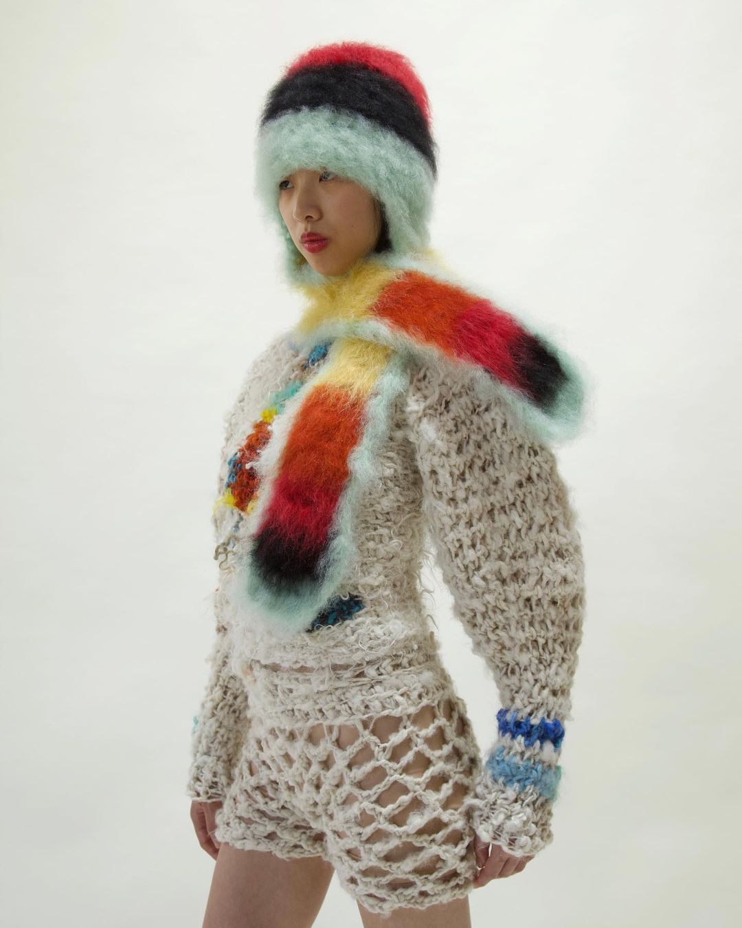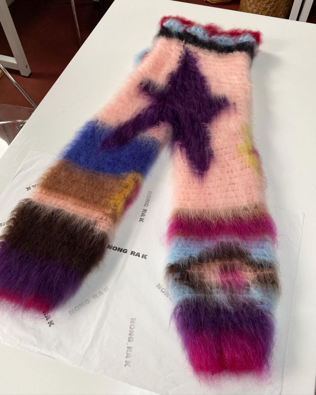 Da boutique vintage a brand sostenibile di knitwear, @thenongrak è una boccata d'aria fresca e creatività nel sistema moda. Da una classica macchina da maglieria e una tecnica di tessitura popolare negli anni Ottanta, tra filati vintage e cruelty-free, tinture artigianali e pezzi unici, il brand esplora un'estetica cartoonesca e veste l'ineffabile morbidezza del mohair. Gonne, pantaloni, guanti, cappelli e balaclava: ogni item, rigorosamente one of a kind, si colora di sfumature allegre. Il duo dietro il marchio, Cherry e Home, ha un approccio sostenibile lungo in tutto il processo creativo, portando pratiche consapevoli in tutto, dall'approvvigionamento al confezionamento, in una visione che nella circolarità trova il fondamento per capi irripetibili. È più certo che il futuro del knitwear passi anche per Nong Rak.
