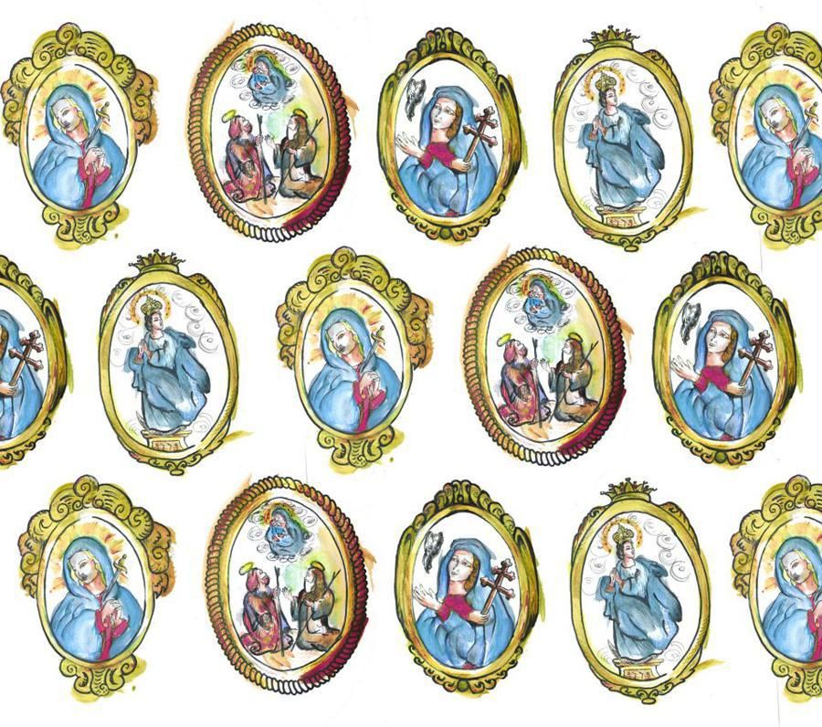 Si approda poi alle stampe all over, esplicitamente ispirate alla permeante tradizione religiosa italiana: raffigurazioni di madonne e santi incorniciati in oro, completamente realizzate a mano, donano ai capi un carattere determinato ed immediatamente riconoscibile.