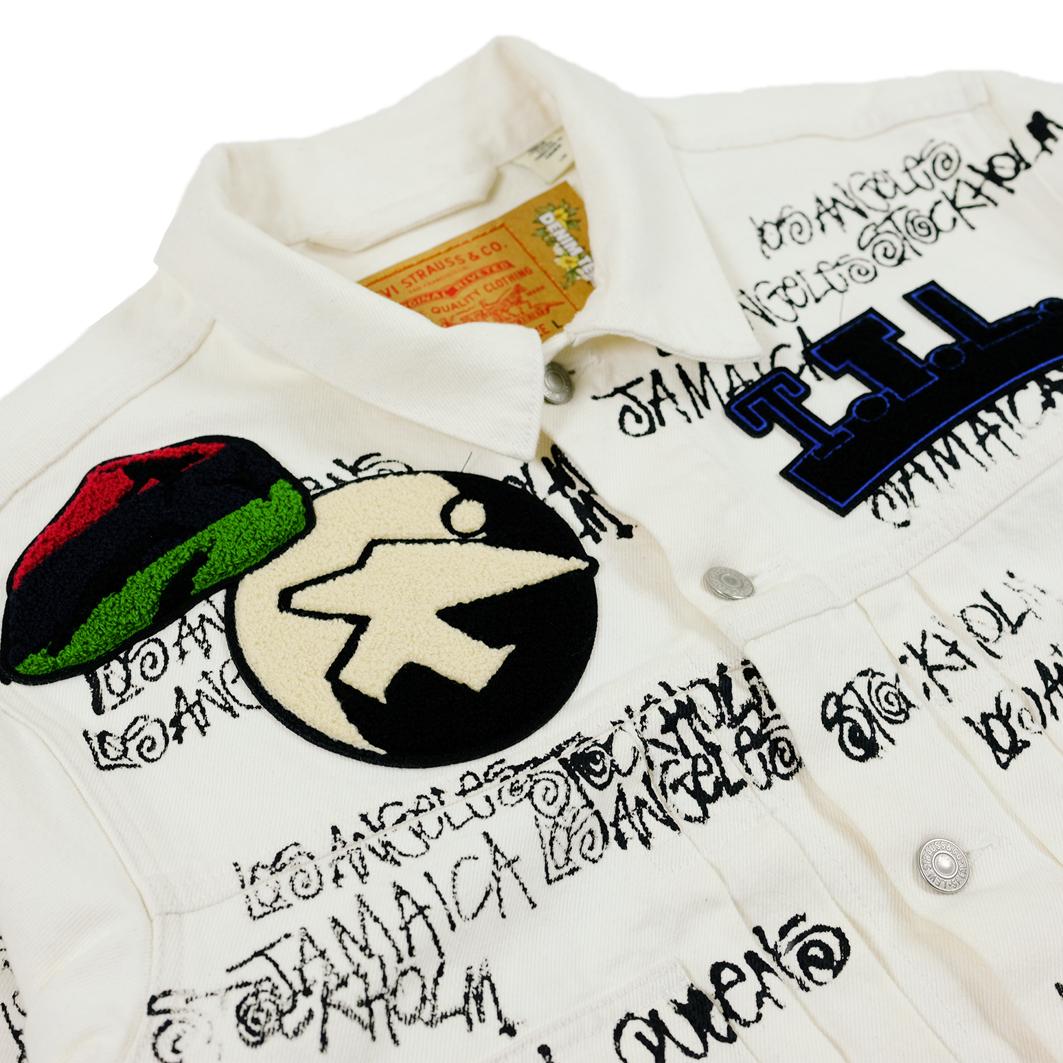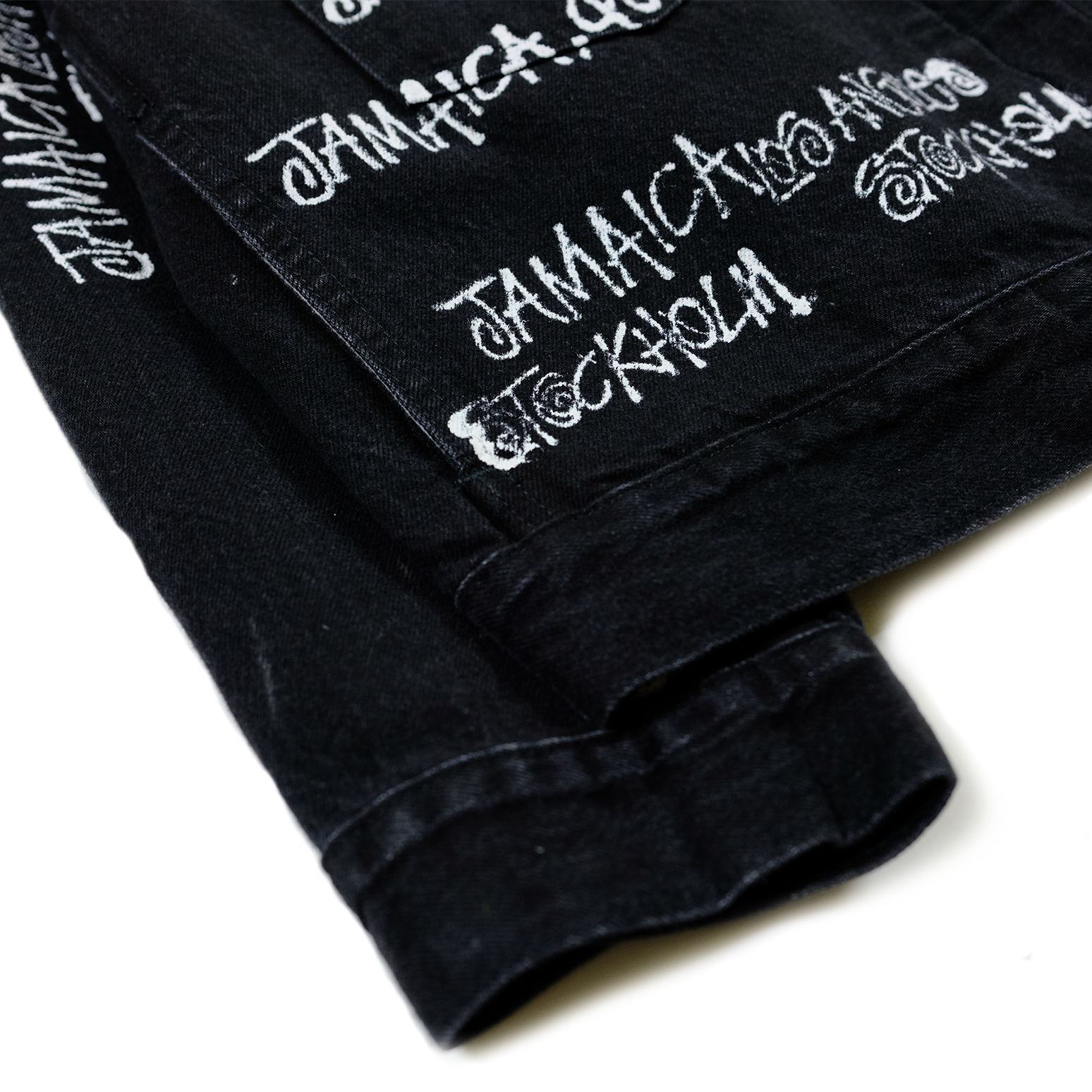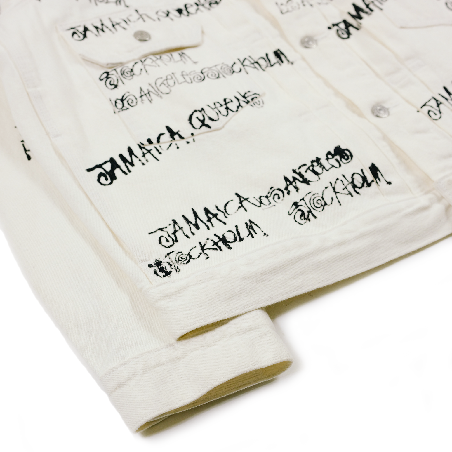 L’idea alla base della collaborazione, che potrebbe essere anche il primo capitolo di un progetto continuativo (già che i brand parlano di una «inaugurazione», facendo presupporre che il loro link-up proseguirà), è basato sul tema delle città di origine: Jamaica Queens, Stoccolma e Laguna Beach. Le giacche e i pantaloni in denim sono decorate da scritte e stemmi che commemorano ognuna di queste location in una serie di reference di cui i due capi, presentati in due colorway diverse, sono letteralmente ricoperti.