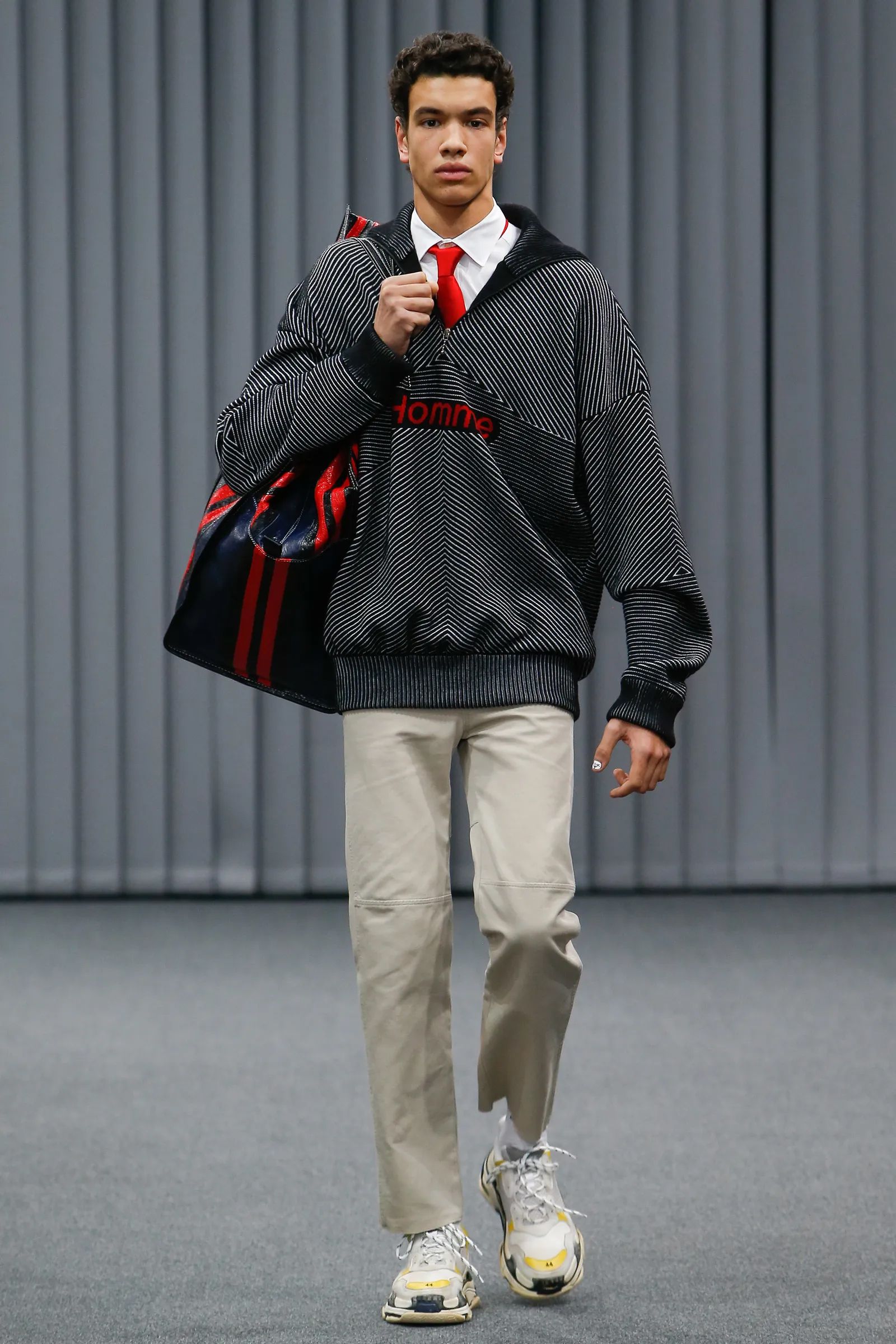 «Lavoravo ancora nei bar, vivevo nelle case occupate» aveva raccontato. «È diventata una carriera fattibile solo molto in là nel tempo, praticamente quando Demna mi ha detto: “Mi piace quello che fai. Vuoi venire a farlo qui?”.» L’incontro con Demna è sembrato uno di quelli scritti nel destino, l’incontro perfetto tra due DNA incredibilmente simili capaci di fondersi dando modo ad entrambi di esprimersi. Non è un caso se tra i marchi distintivi dell’operato di Martine Rose ci siano i loghi, spesso al cento dei suoi design in versioni parodistiche, da quello in stile Carlsberg a quello che riprendeva il logo Pirelli. Proprio durante il suo operato da Balenciaga, era lo show menswear Autumn/Winter 2017, fece il suo esordio il Political Logo, parodia di quello utilizzato da Bernie Sanders nella sua campagna elettorale, e diventato uno dei simboli più riconoscibili del brand sotto la guida di Demna. Per questo, mentre nelle stanze segrete di LVMH si decide il futuro di Louis Vuitton, qualcuno nel gruppo Kering fa il tifo per Martine Rose.