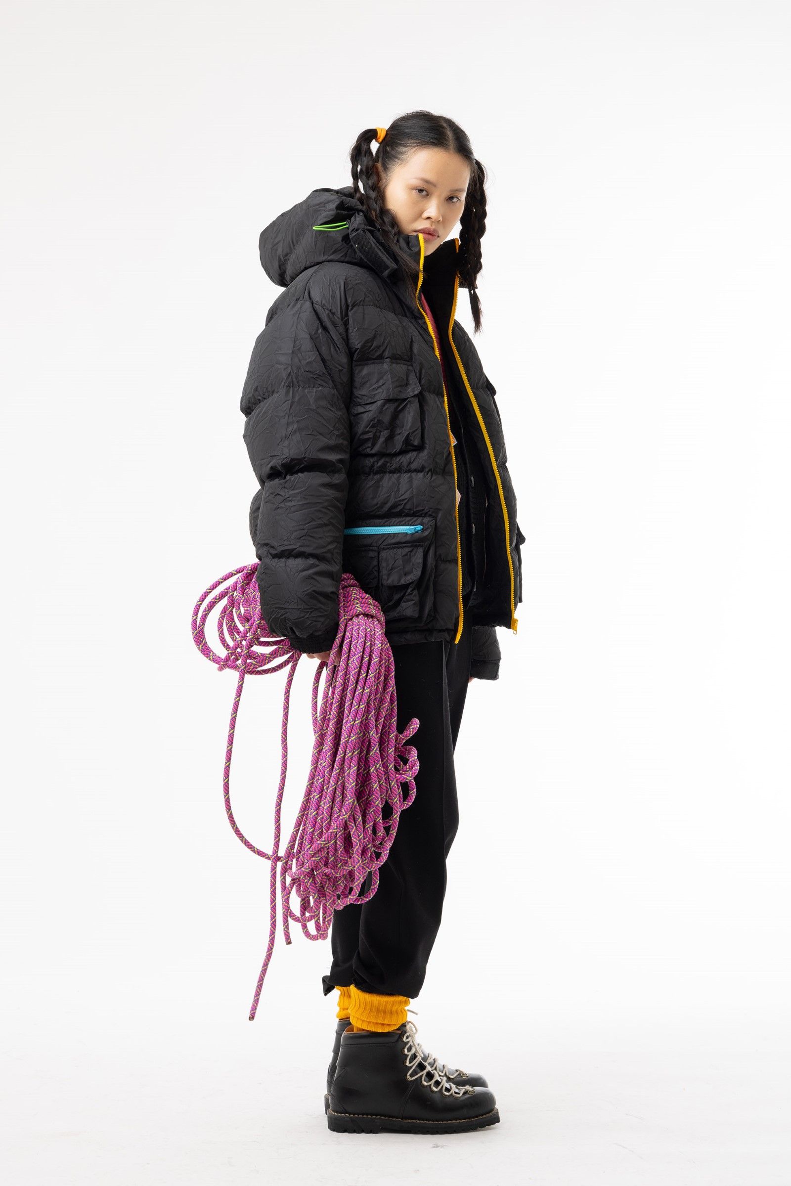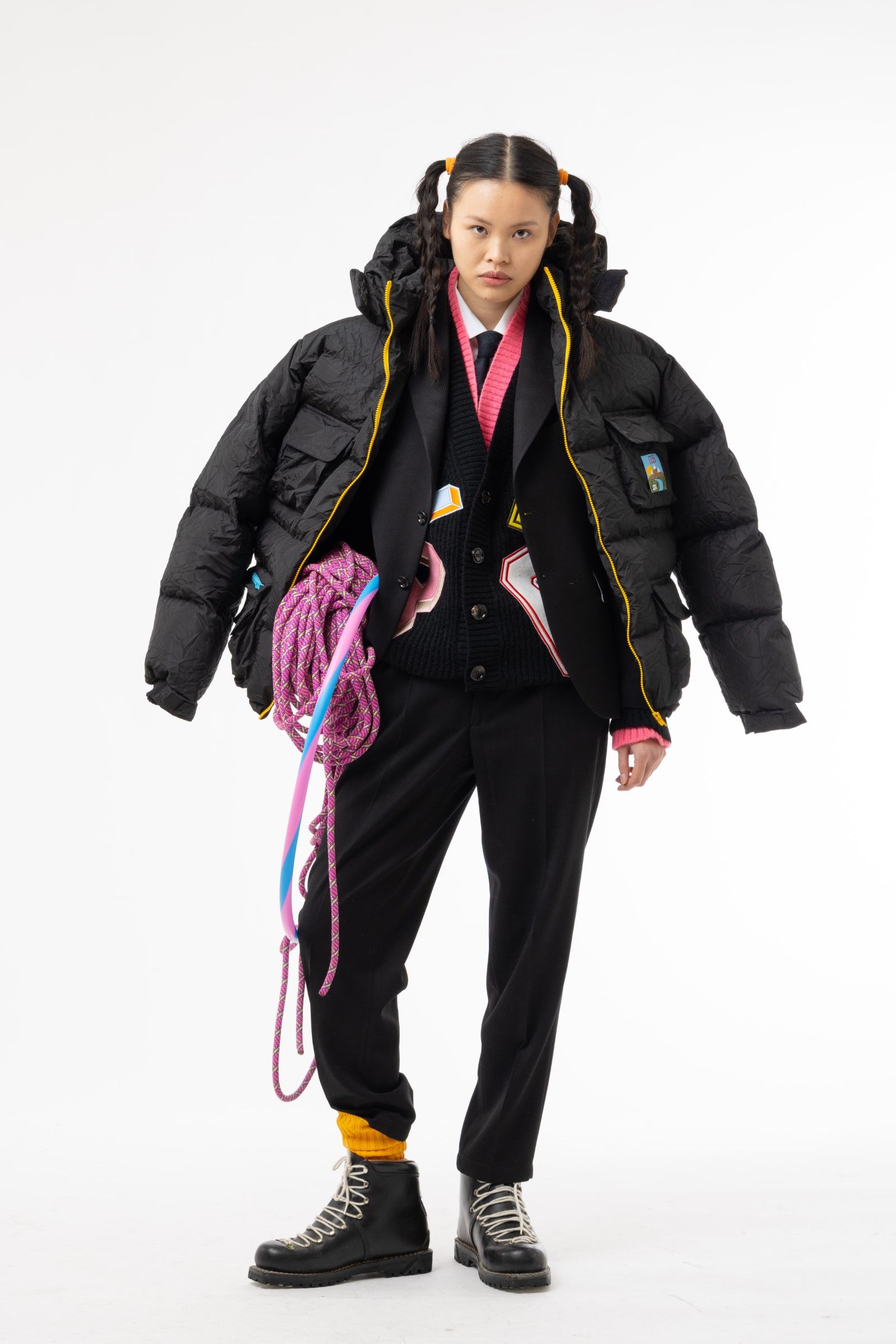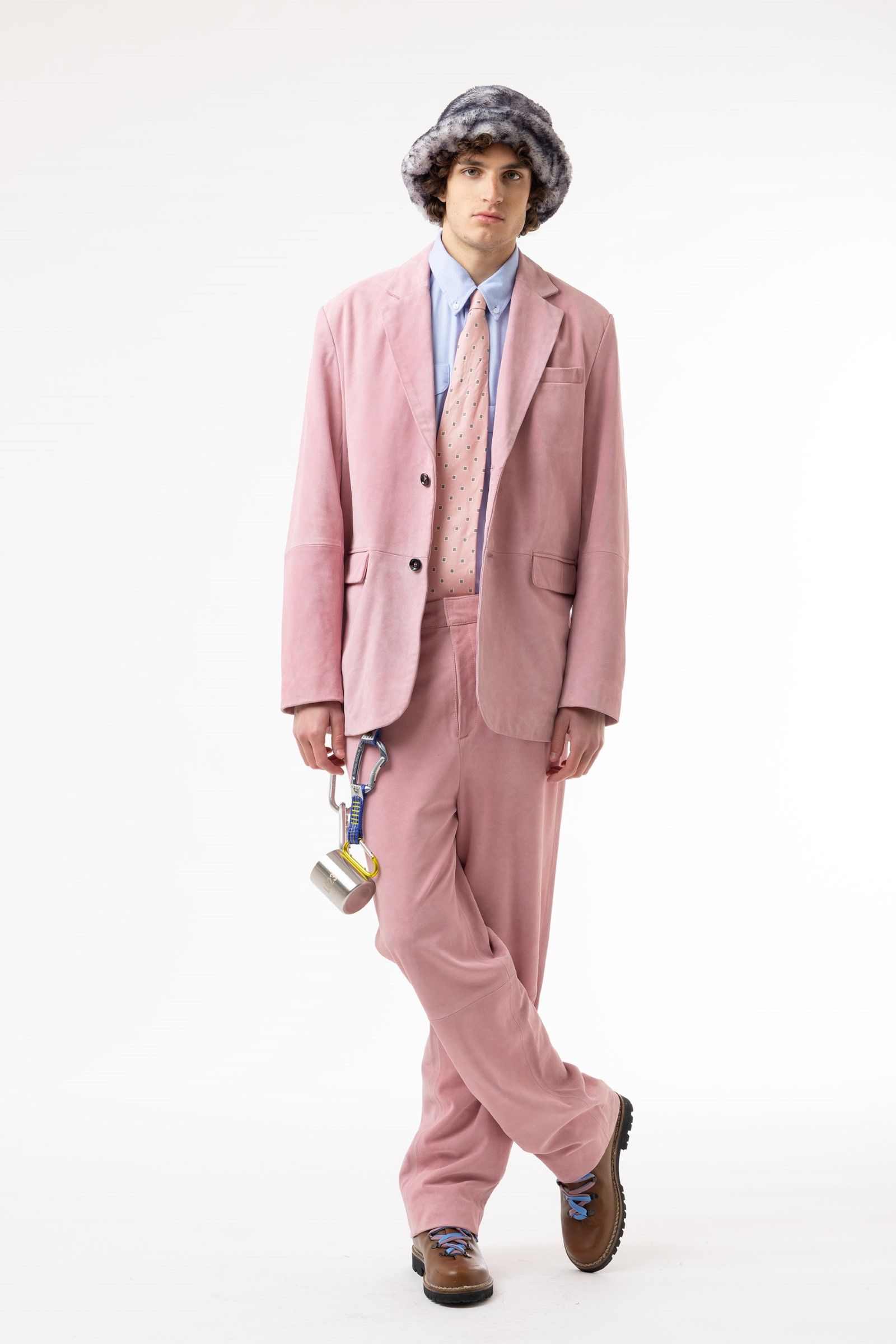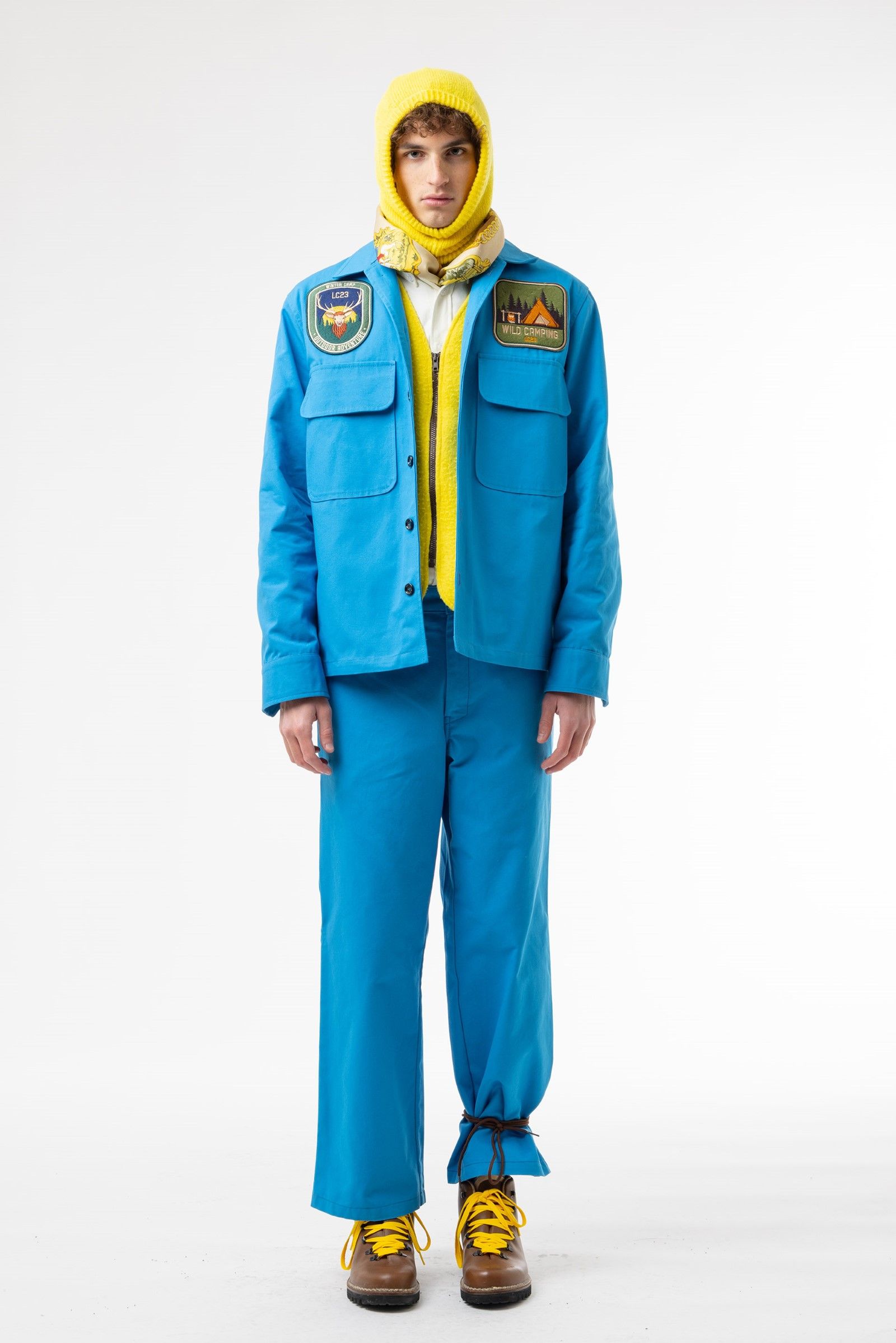 Negli anni lo stile di Colaccico e del suo LC23 è rimasto abbastanza coerente, mostrando una passione per le palette di colori vivaci, le consistenze morbide di maglieria e giacche di fleece e per la costruzione tattica dei capi più direttamente ispirati al mondo outdoor. In questa collezione nello specifico c’è una mistura tra l’estetica preppy dei cardigan, dei completi e delle camicie con un tocco dell’immaginario dei boyscout americani che si materializza attraverso patch, zaini, stivali da trekking e capi tecnici oltre che in classici accessori invernali come berretti o sciarpe.