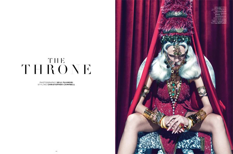 The Throne - Il secondo numero della rivista The Ground Magazine, ha per editoriale una storia di conflitto e amore, la lotta per il potere, con immagini scattate da Seiji Fujimori. Tabea Koebach posa accanto a modelli maschili come Clark Alex Cord Verga, Justin Hileman, Mark Moore, Mike Keute, Ryan Matthews, Jacob Neeley e Peter Gregory. Stilyng by Christopher Campbell.