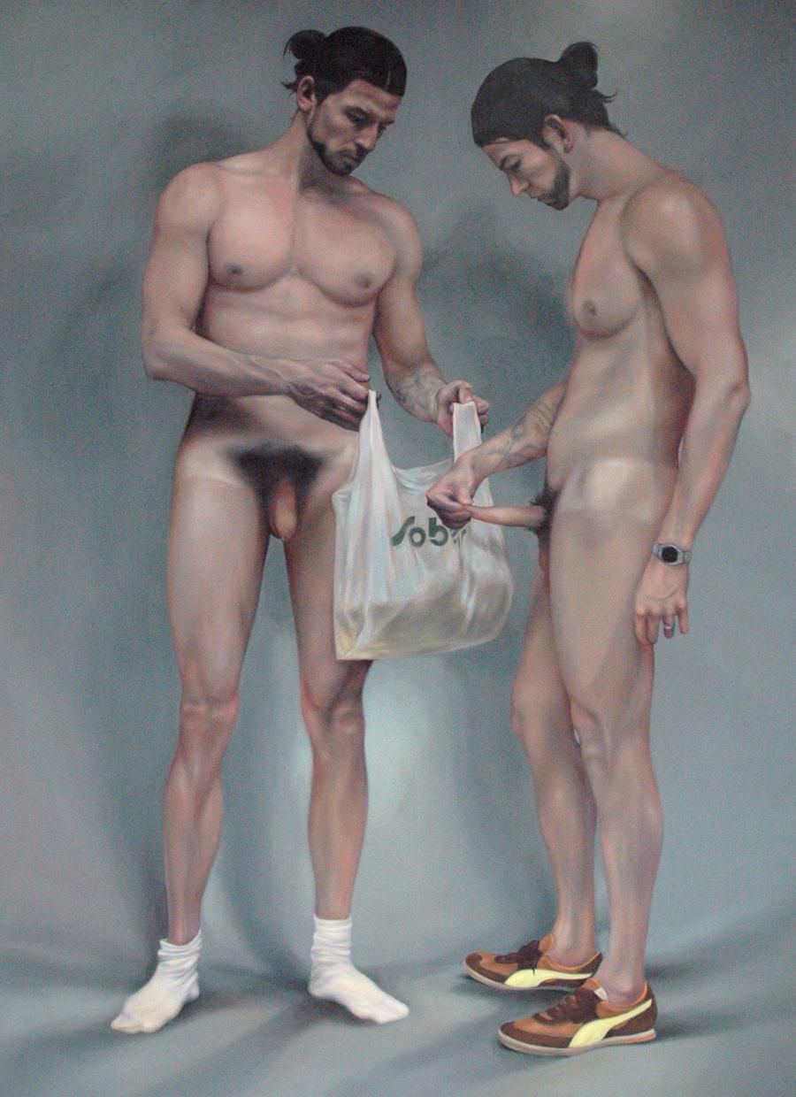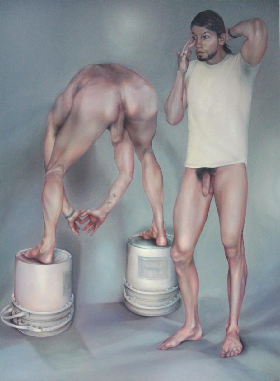 Ama usare se stesso come oggetto unico ed esclusivo delle sue opere. Dipinge in scala per rendere di maggiore effetto e credibilità gli atti spesso mitici e violenti del genere maschile. Accostati a sfondi neutri i suoi nudi, ritratti spesso in scene quotidiane, sono protagonisti assoluti . Una narrativa unica raccontata con il solo linguaggio del corpo.