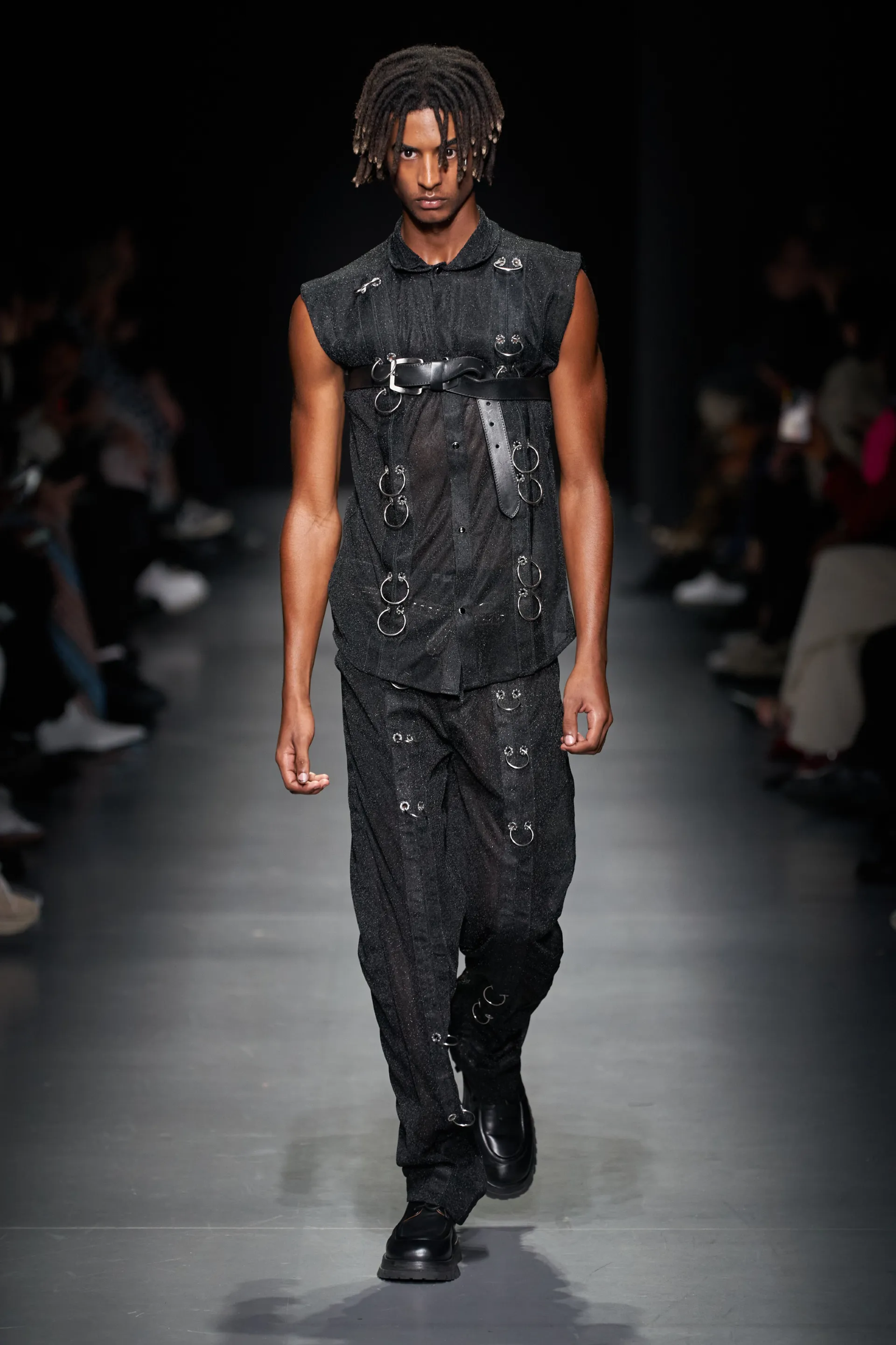 E se brand indie come Cormio e Sunnei hanno evitato i grandi statement proponendo un normcore rivisitato, vagamente eccentrico, come ha fatto anche Andrea Incontri per il suo show inaugurale da Benetton e in chiave pop Massimo Giorgetti da MSGM, il Ferrari di Rocco Iannone ha proseguito la propria evoluzione stilistica muovendosi verso una silhouette contemporanea e indossabile, rielaborando soprattutto un elemento iconico presente nell’immaginario del brand e cioè l’iconica tuta da racing che viene proposta sia in una forma vicina al vero, con i colori del brand e i relativi loghi, che in una versione più sofisticata, in pelle. Significativa, invece, è la sfilata di Tokyo James, forse unico designer di questa stagione a fondere in maniera convincente istanze sociali, personali e commerciali in uno show che non è parso creativamente dipendente da nessun’altra ispirazione ma è stato anzi coeso, concentrato e preciso come un laser ma soprattutto che ha rappresentato l’unico outing di un designer indipendente dalla voce forte e decisa e dalla vision non ostacolata da esigenze commerciali e acrobazie retoriche di sorta. Un designer che, speriamo, continuerà a utilizzare Milano come sua piattaforma e tenere viva la sua scena indipendente.