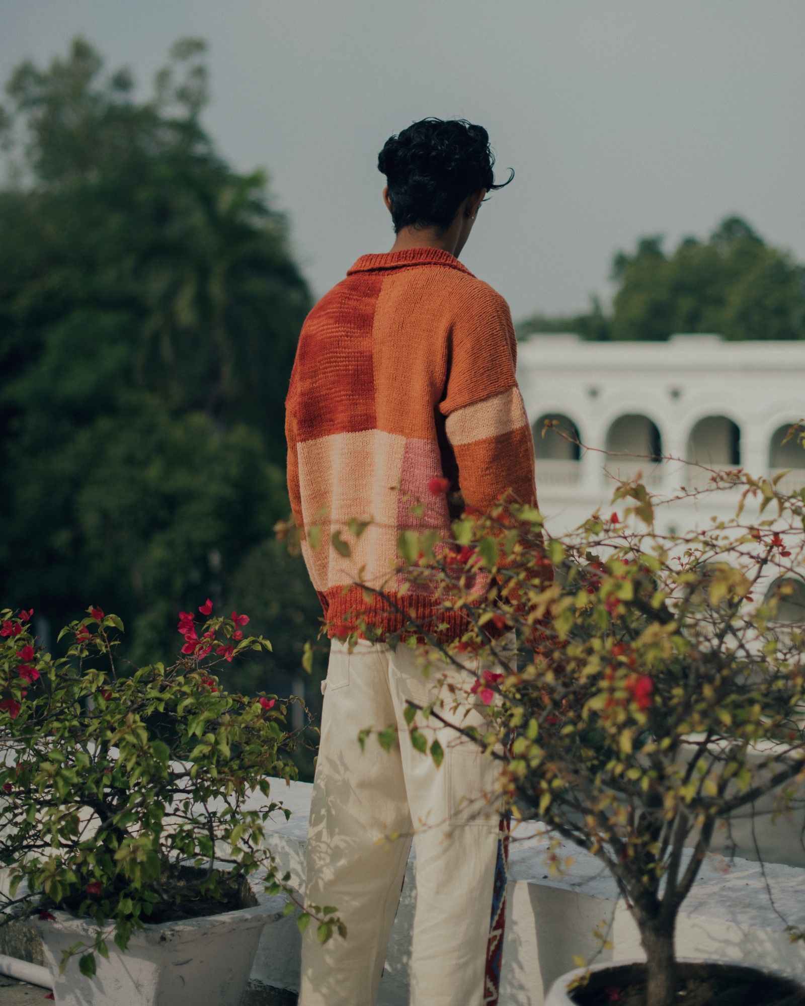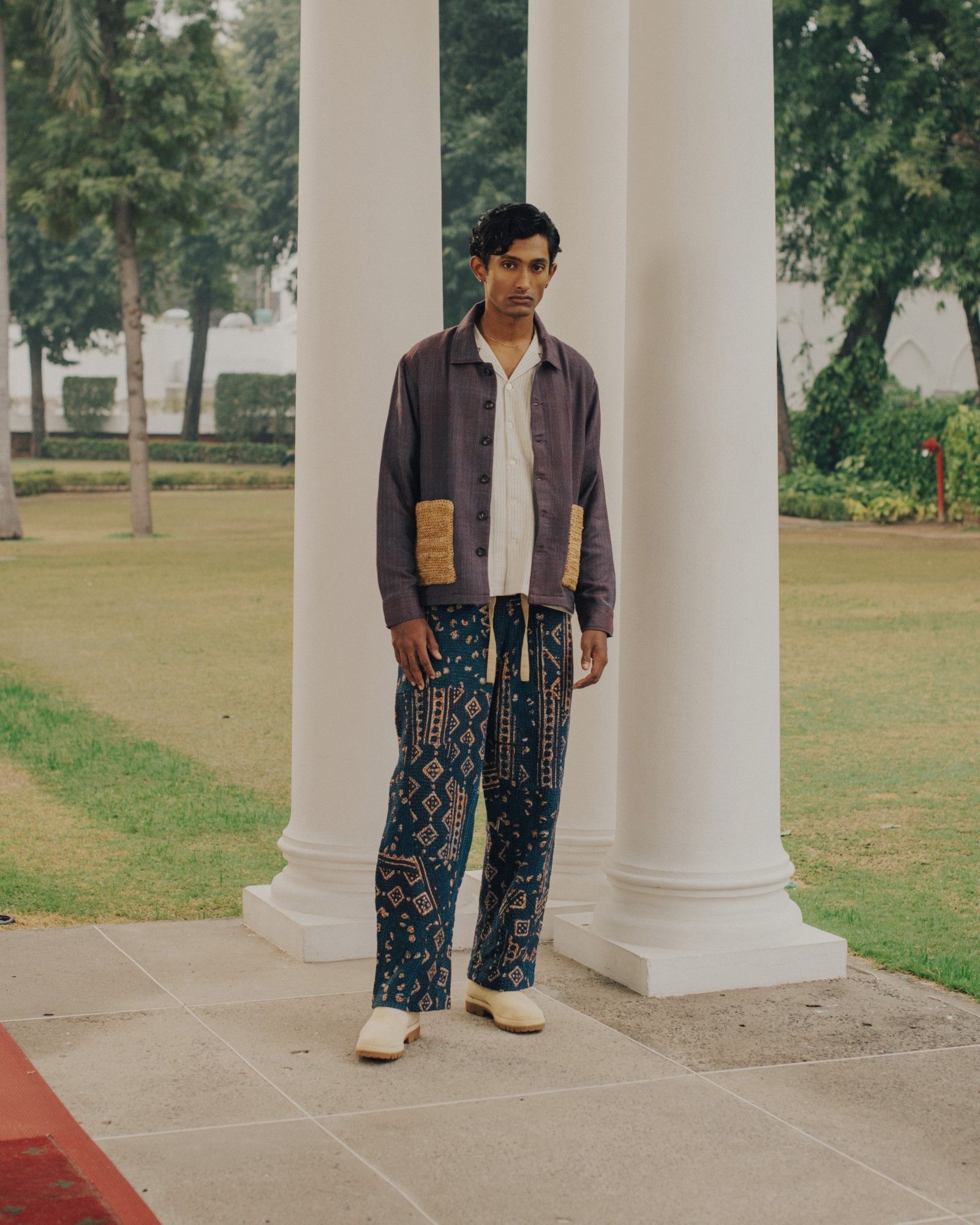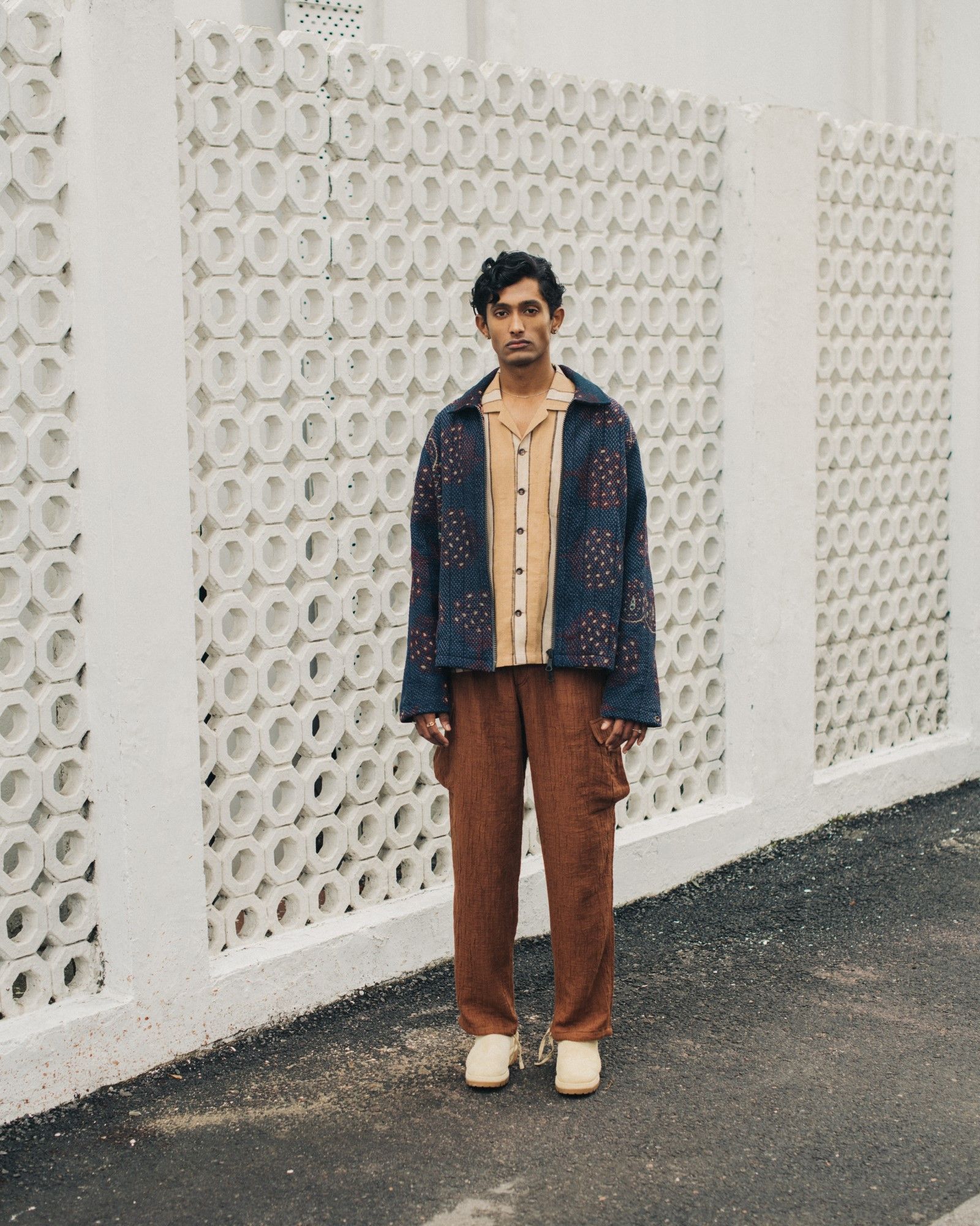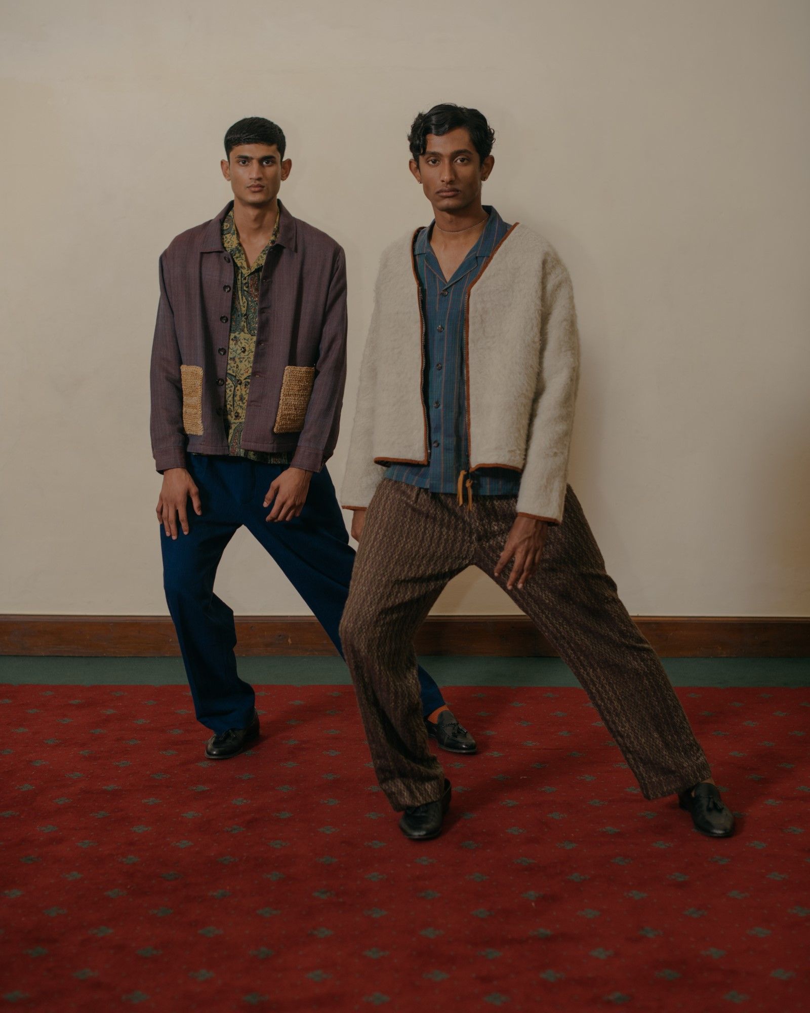 Con un’estetica che ricorda Bode o Kapital, per l’insistenza sulla costruzione artigianale dei capi, l’esuberanza dei colori naturali e la naturale morbidezza dei fit, un importante concept per le collezioni del brand è quella di ridefinire il senso di moda di lusso per la clientela occidentale. Un esempio che Kumra fa è quello delle tasche in fibra di banano che decorano molti dei suoi blazer. «Abbiamo iniziato a collaborare con gli intrecciatori di cesti di Karnataka per creare tasche macramè in fibra di banano per alcuni capi di abbigliamento. All'interno del villaggio, utilizzano lo stesso intreccio di fibre di banano per creare gioielli per le occasioni speciali. […] Per molte delle comunità artigianali con cui lavoriamo, le forme di lusso più ambite possono essere i gioielli in fibra di banana o gli intricati tessuti kantha coi loro ricami; la collezione si chiede perché la nostra percezione generale di beni aspirazionali si riferisca agli ideali occidentali e non a un intricato tessuto fatto a mano». Un punto interessante che Kumra sottolinea – specialmente considerando come, in Europa o in America, filati nobili come la lana o il cashmere siano ormai ultra-diffusi e come dunque il lusso di un capo risieda nella sua costruzione materiale, preziosa in quanto unica, artigianale.