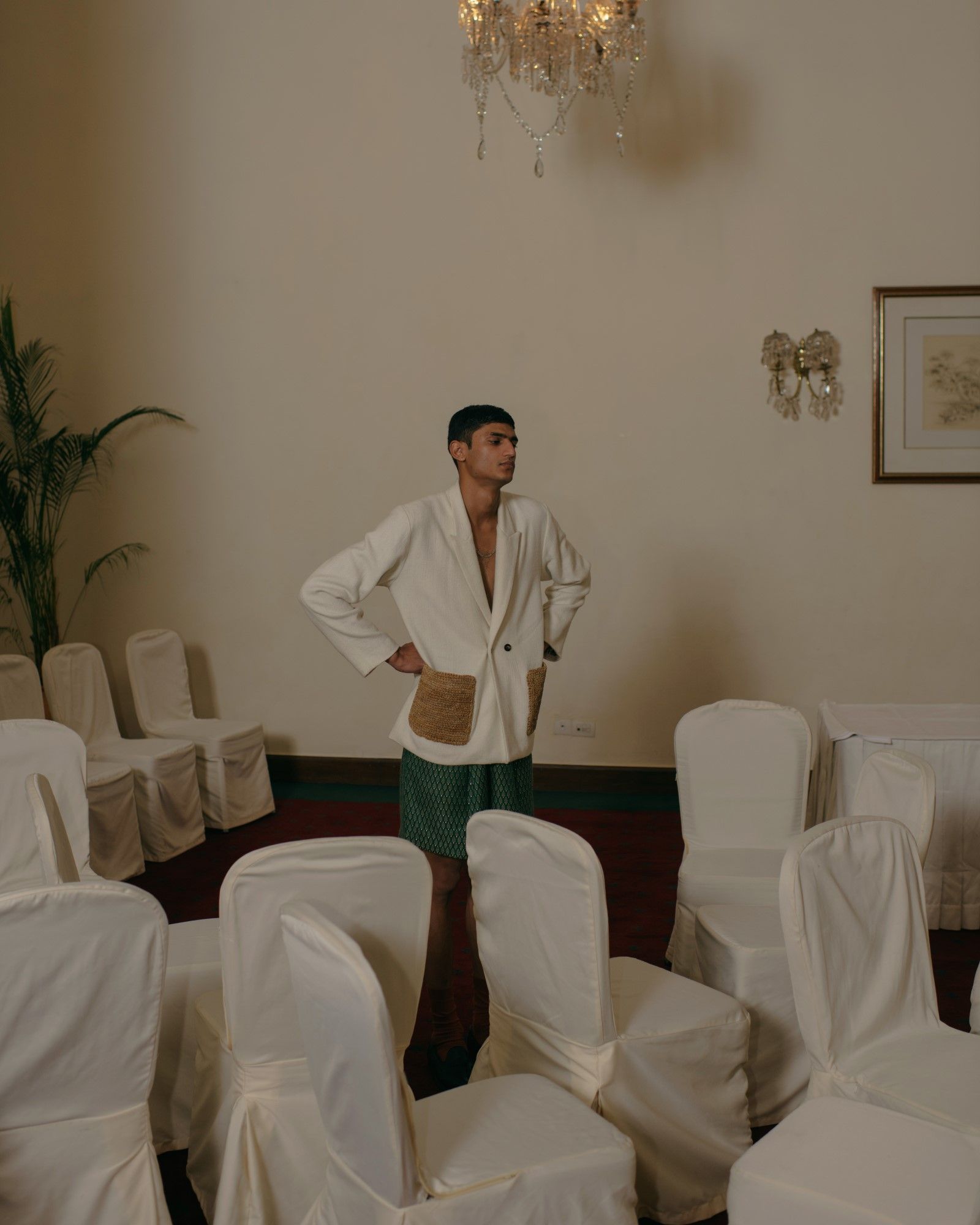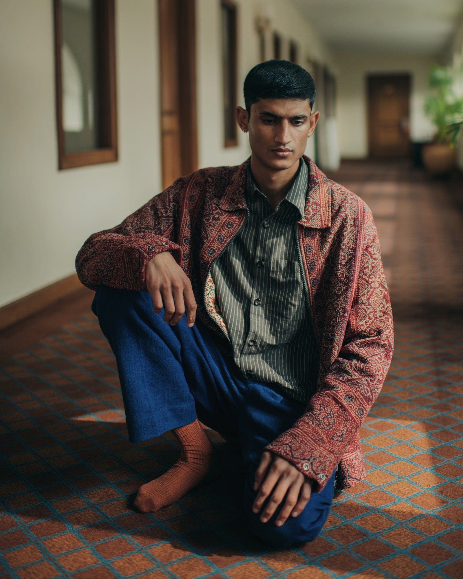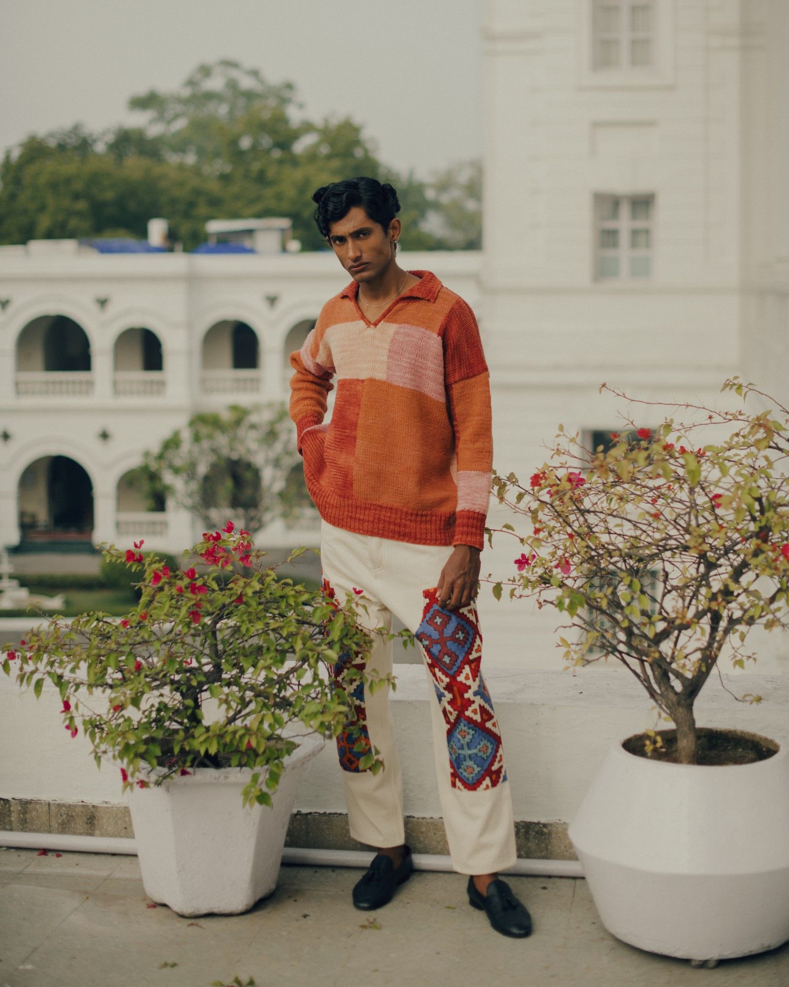 Con un’estetica che ricorda Bode o Kapital, per l’insistenza sulla costruzione artigianale dei capi, l’esuberanza dei colori naturali e la naturale morbidezza dei fit, un importante concept per le collezioni del brand è quella di ridefinire il senso di moda di lusso per la clientela occidentale. Un esempio che Kumra fa è quello delle tasche in fibra di banano che decorano molti dei suoi blazer. «Abbiamo iniziato a collaborare con gli intrecciatori di cesti di Karnataka per creare tasche macramè in fibra di banano per alcuni capi di abbigliamento. All'interno del villaggio, utilizzano lo stesso intreccio di fibre di banano per creare gioielli per le occasioni speciali. […] Per molte delle comunità artigianali con cui lavoriamo, le forme di lusso più ambite possono essere i gioielli in fibra di banana o gli intricati tessuti kantha coi loro ricami; la collezione si chiede perché la nostra percezione generale di beni aspirazionali si riferisca agli ideali occidentali e non a un intricato tessuto fatto a mano». Un punto interessante che Kumra sottolinea – specialmente considerando come, in Europa o in America, filati nobili come la lana o il cashmere siano ormai ultra-diffusi e come dunque il lusso di un capo risieda nella sua costruzione materiale, preziosa in quanto unica, artigianale.
