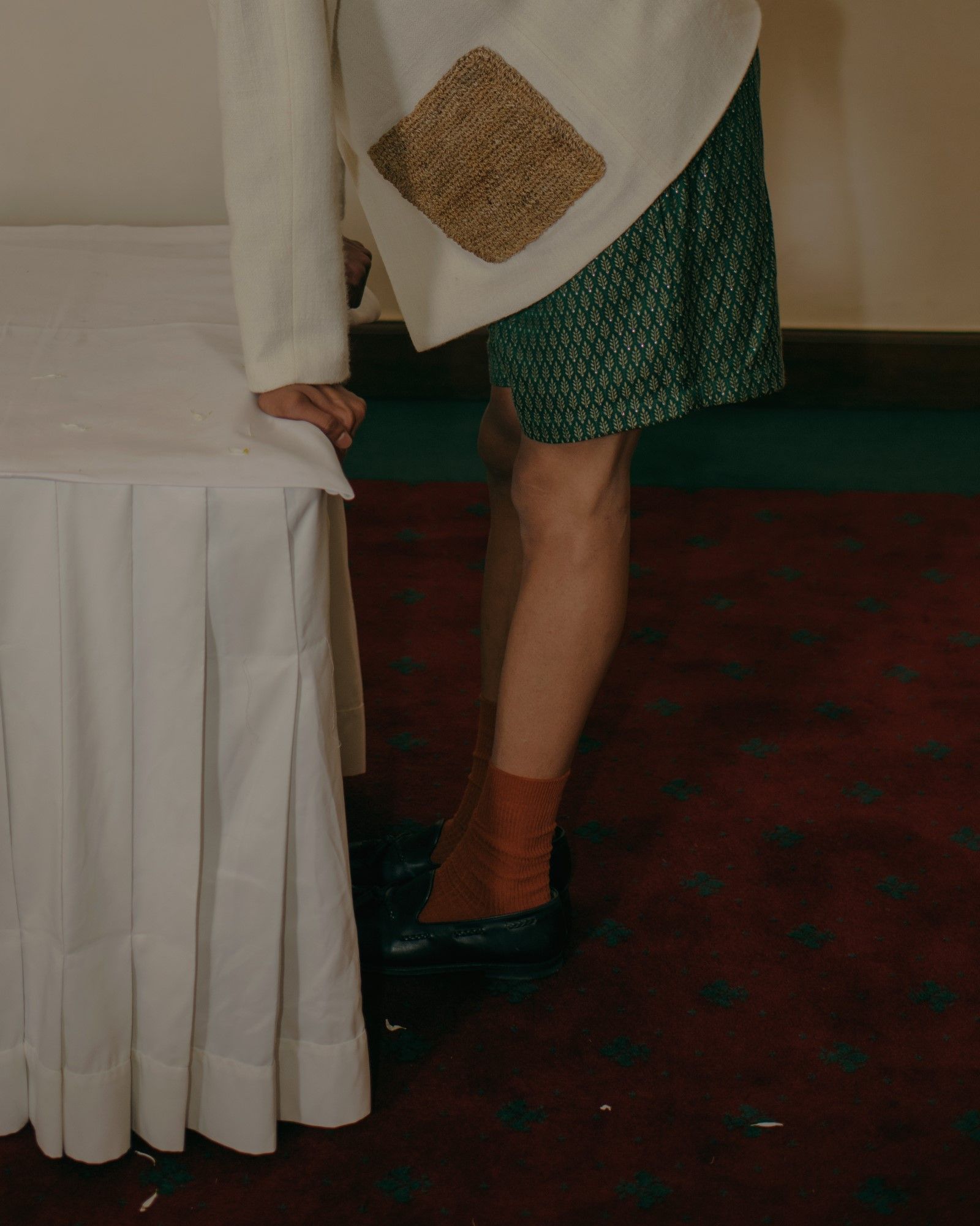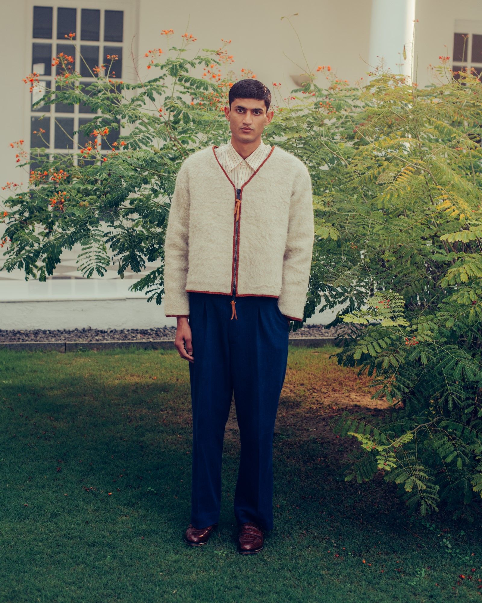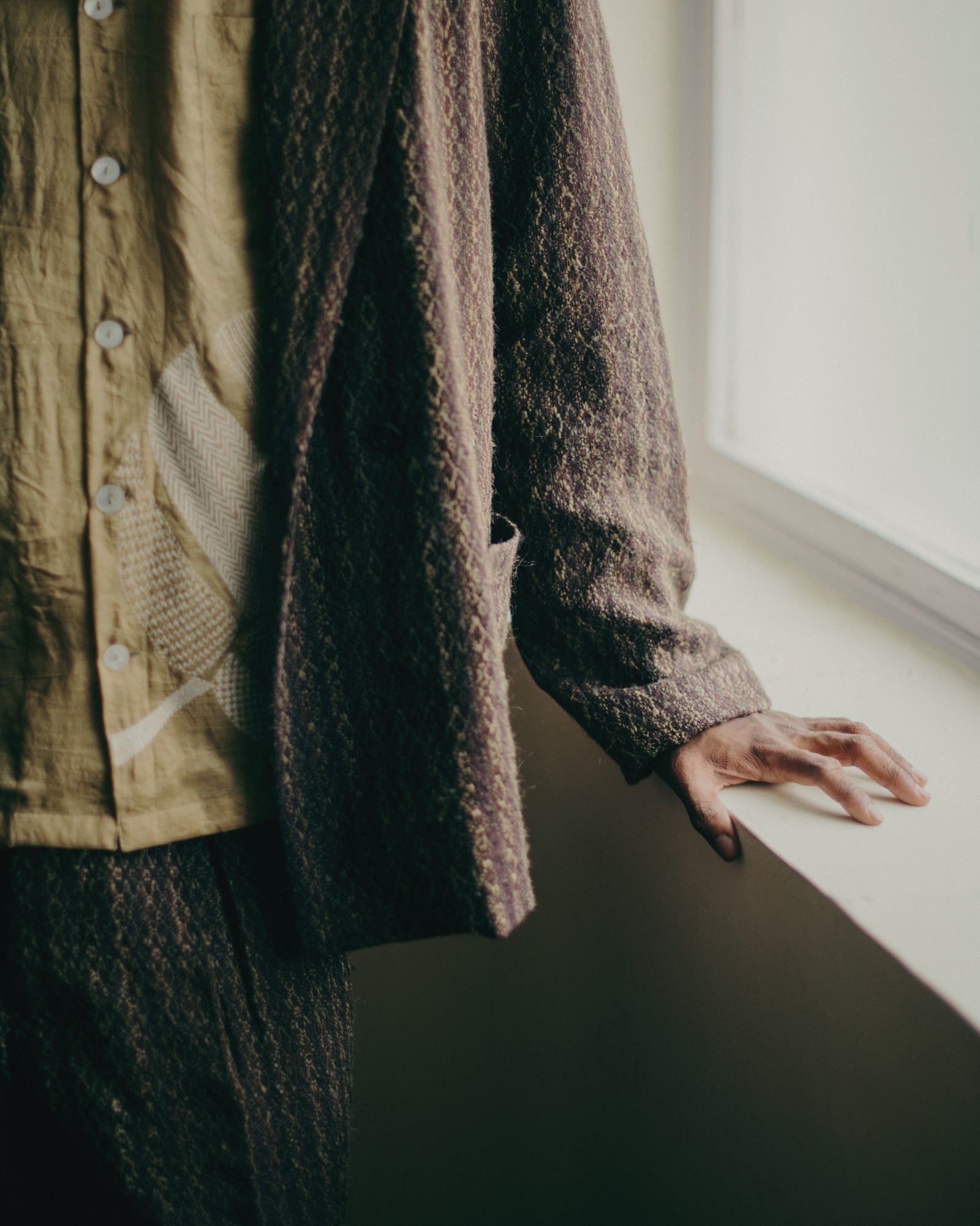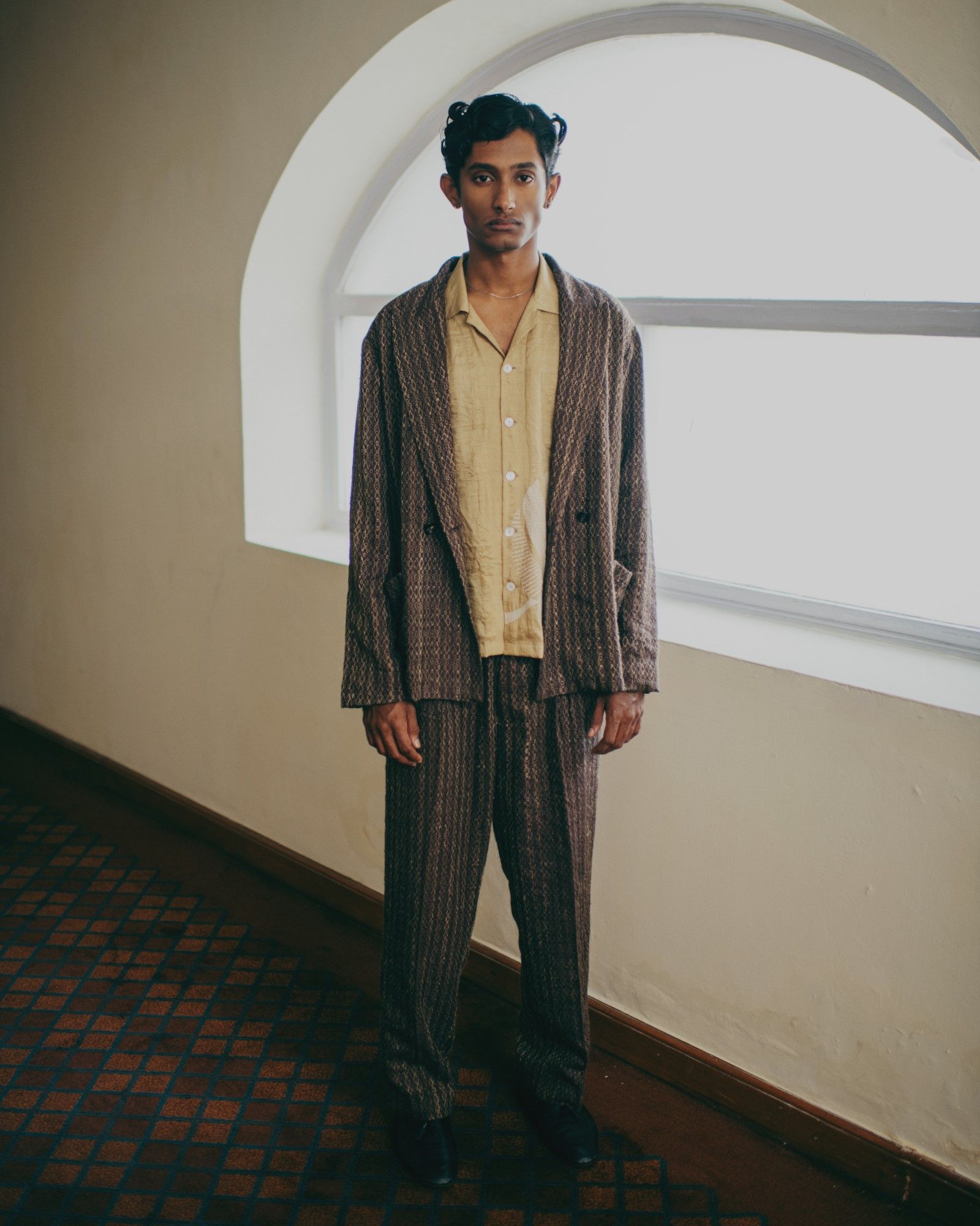 Con un’estetica che ricorda Bode o Kapital, per l’insistenza sulla costruzione artigianale dei capi, l’esuberanza dei colori naturali e la naturale morbidezza dei fit, un importante concept per le collezioni del brand è quella di ridefinire il senso di moda di lusso per la clientela occidentale. Un esempio che Kumra fa è quello delle tasche in fibra di banano che decorano molti dei suoi blazer. «Abbiamo iniziato a collaborare con gli intrecciatori di cesti di Karnataka per creare tasche macramè in fibra di banano per alcuni capi di abbigliamento. All'interno del villaggio, utilizzano lo stesso intreccio di fibre di banano per creare gioielli per le occasioni speciali. […] Per molte delle comunità artigianali con cui lavoriamo, le forme di lusso più ambite possono essere i gioielli in fibra di banana o gli intricati tessuti kantha coi loro ricami; la collezione si chiede perché la nostra percezione generale di beni aspirazionali si riferisca agli ideali occidentali e non a un intricato tessuto fatto a mano». Un punto interessante che Kumra sottolinea – specialmente considerando come, in Europa o in America, filati nobili come la lana o il cashmere siano ormai ultra-diffusi e come dunque il lusso di un capo risieda nella sua costruzione materiale, preziosa in quanto unica, artigianale.