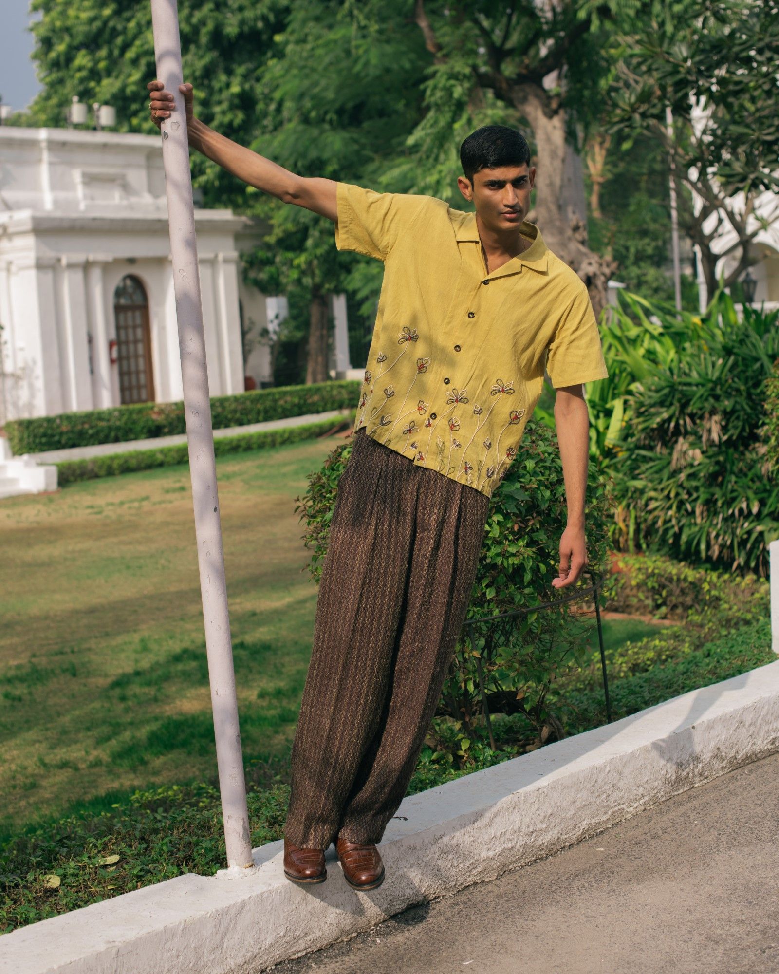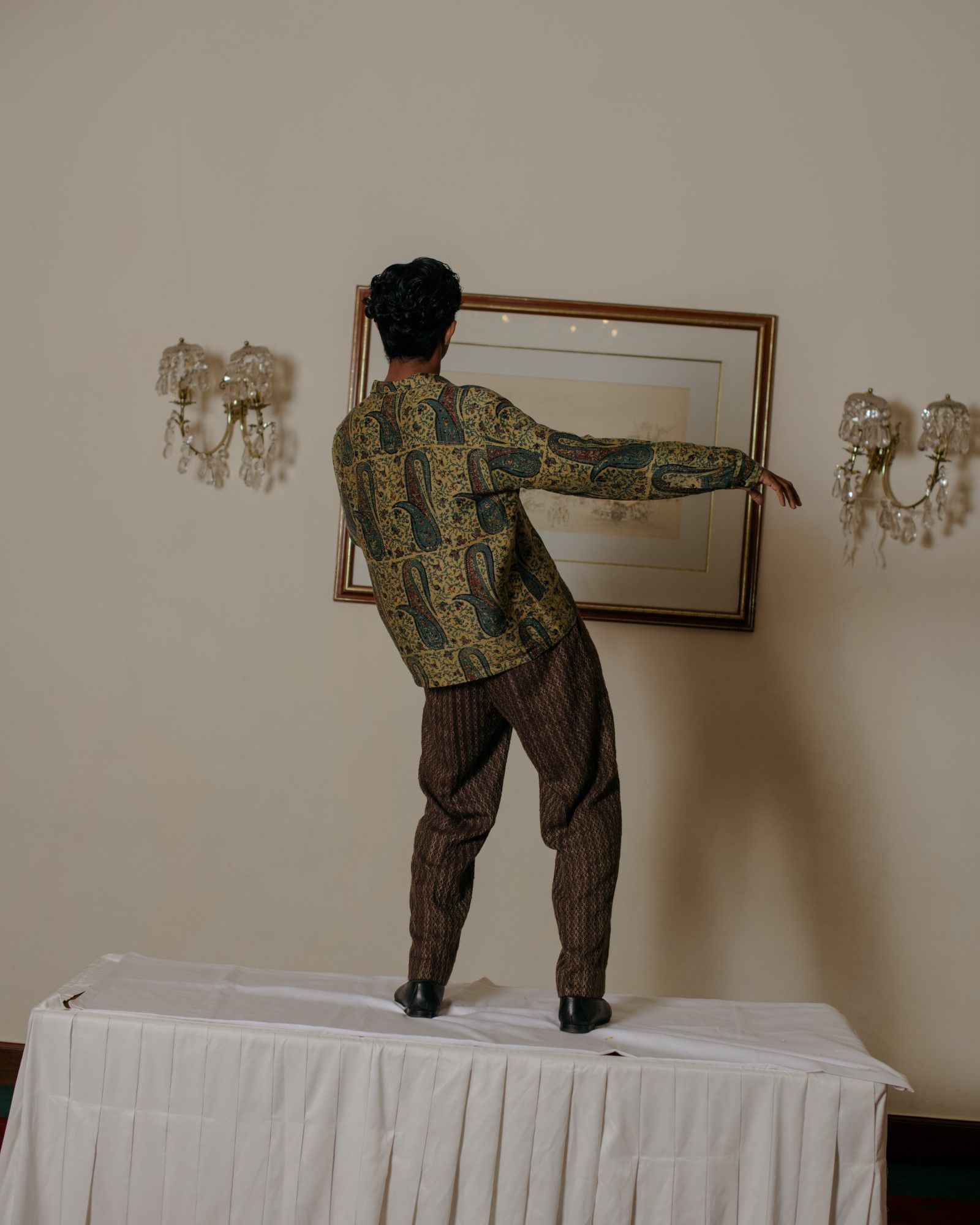 Un importante effetto collaterale della filosofia di produzione ultra-artigianale di Karu Research è anche la sua sostenibilità. E non è una questione di greenwashing: tessuti e stampe sono creati a mano, sempre tinto con pigmenti naturali seguendo la tradizione tessile indiana che è una delle più antiche e sofisticate del mondo. Il risultato è sorprendente. «Tutti i tessuti di questa stagione sono stati realizzati su telai a mano, quindi senza l'utilizzo di elettricità, e tutte le camicie utilizzano tinture naturali», racconta Kumra. Le stampe di quelle stesse camicie, poi, sono state realizzate in collaborazione con uno stampatore esperto della tecnica Ajrakh, che prevede l’utilizzo di blocchi di legno intagliati. «Utilizza tinture naturali e produce in quantità estremamente ridotte. Mi ci sono voluti sei mesi per convincerlo a lavorare con me per sviluppare le stampe di questa collezione». Negli ultimi anni si è vista una forte ascesa di brand che, come Karu Research, si concentrano totalmente sul prodotto e premono l’acceleratore su un tipo diverso di savoir-faire artigianale – la clientela del lusso sembra apprezzarli, seguendo la reazione di una parte degli amanti della moda di oggi che, delusi dall’iper-commercialità dei grandi brand, si rifugiano negli spazi ancora incontaminati dei brand artigianali. Il futuro del lusso, dopo tutto, è fatto a mano.