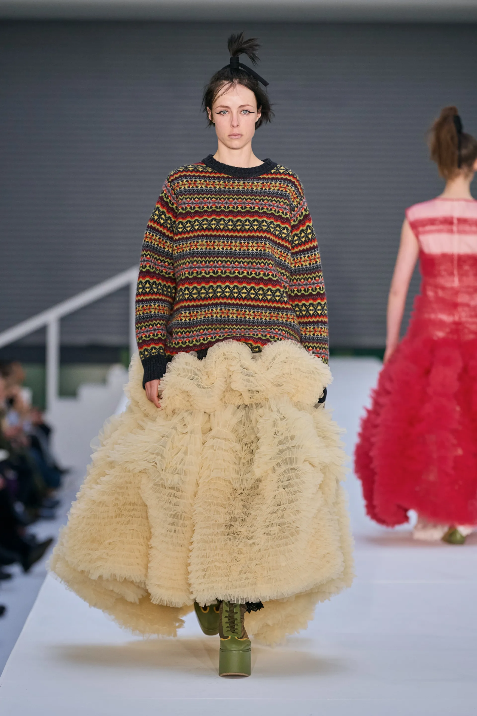 Inaspettatamente, di questa maglieria tradizionale esiste persino una versione couture: nelle remote isole Shetland esistono infatti artigiane specializzate nella tessitura a mano dei classici maglioni Fair Isle. Un articolo di Condè Nast Traveller di qualche anno fa parla di due di loro, Mati Ventrillon e Hollie Shaw, che producono maglioni su misura e con tecniche manuali, soltanto con la lana dell’isola di Fair che è anche del tutto organica e hanno liste di attesa lunghe fino a tre anni. Nello specifico, Mati Ventrillon fu la designer che portò Chanel e Karl Lagerfeld a chiedere scusa per aver plagiato i suoi design nella collezione Chanel Métiers d’Art 2016, dove appunto alcuni particolari tecniche di tessitura vennero replicate dopo che due persone del team del brand si erano presentate nel suo studio in Scozia e avevano comprato due dei suoi maglioni per “ricerca”.