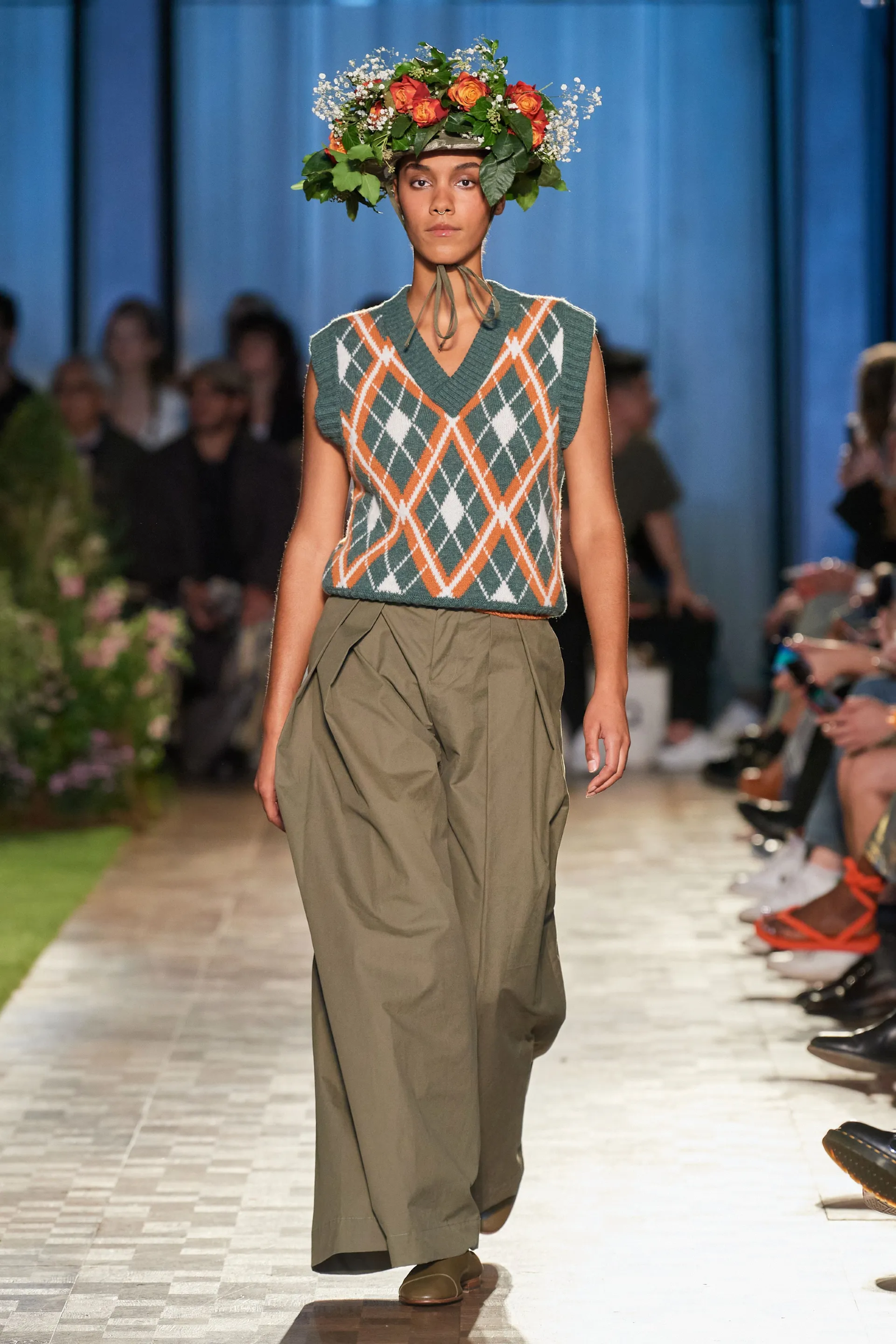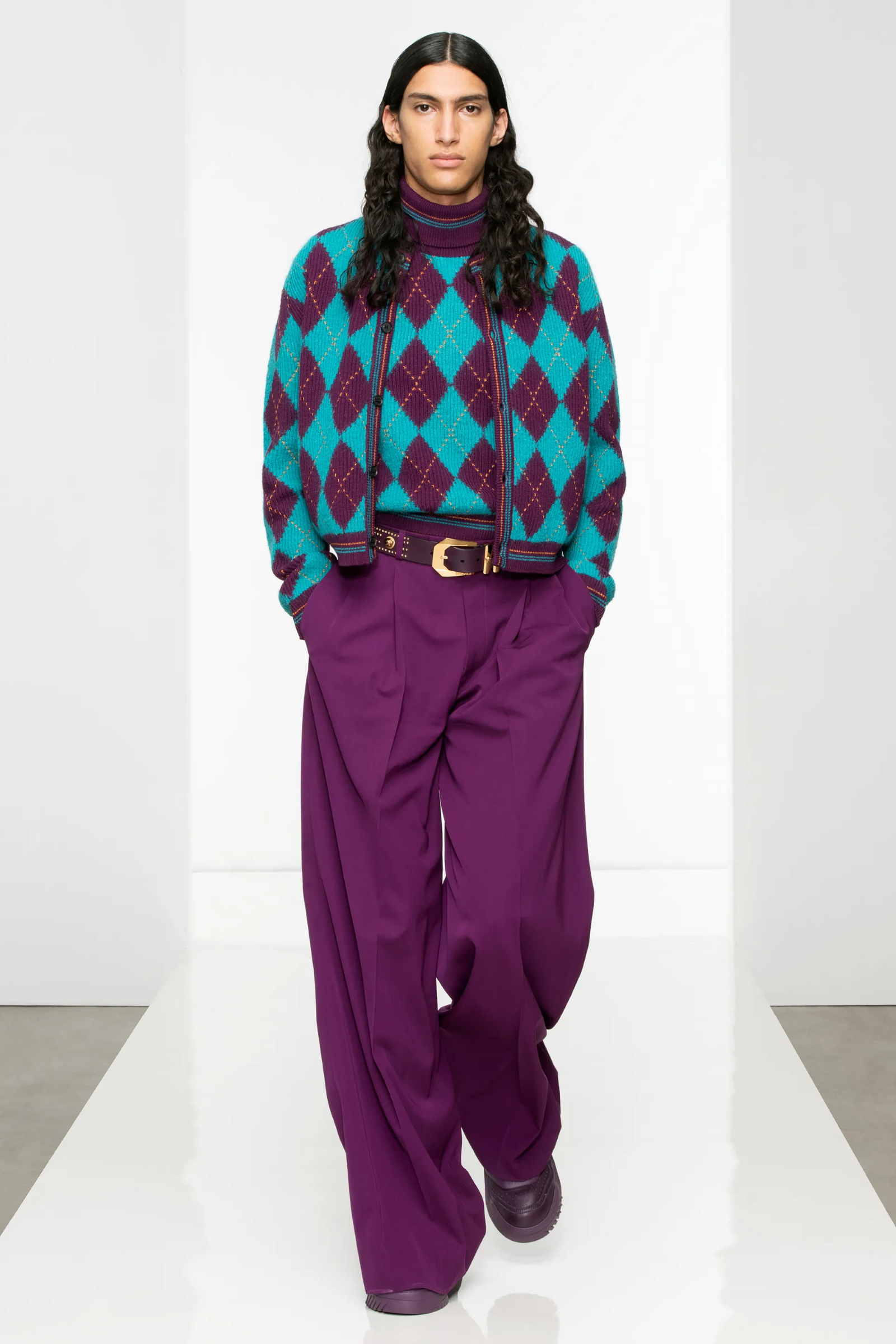 Se i lettori ci consentono un po’ di trend forecasting, oltre alla prosecuzione del trend del mohair e a quello del luxe-minimalism, la stagione entrante porterà con sé una notevole fascinazione per i maglioni a losanghe: se la scorsa settimana un maglione a losanghe legato sulle spalle era parte del secondo look della collezione SS23 di Bottega Veneta, lo stile era apparso preminentemente nella collezione FW22 di Miu Miu, nelle più recenti sfilate di Ami Paris, Celine, S.S. Daley, Marine Serre e ovviamente Marni. E forse sarà una sorpresa sapere che quel famoso motivo a losanghe che sembrerebbe essere nato spontaneamente nel mondo della maglieria venne introdotto negli anni 20 proprio da Pringle of Scotland e popolarizzato dall’allora Duca di Windsor e futuro re d’Inghilterra Edoardo VII. La sua origine era puramente scozzese: si trattava infatti del motivo tartan tradizionale dei Campbell di Argyll – luogo da cui il motivo trae il suo nome in lingua inglese “Argyle”. Quanto ai motivi Fair Isle, invece, il brand più famoso che li ha replicati è Dior, mentre sia Raf Simons che Molly Goddard, Undercover e Kenzo li hanno inseriti nelle proprie collezioni recenti. Jonathan Anderson, invece, li ha incorporati costantemente nelle sue popolarissime collaborazioni con Uniqlo, fino all’ultima in uscita a ottobre. Basterebbe comunque esaminare gli show passati di molti altri brand per vedere come motivi Fair Isle e a losanghe, come anche l’uso della lana Shetland, siano rimasti sempre più o meno presenti nell’immaginazione dei designer.