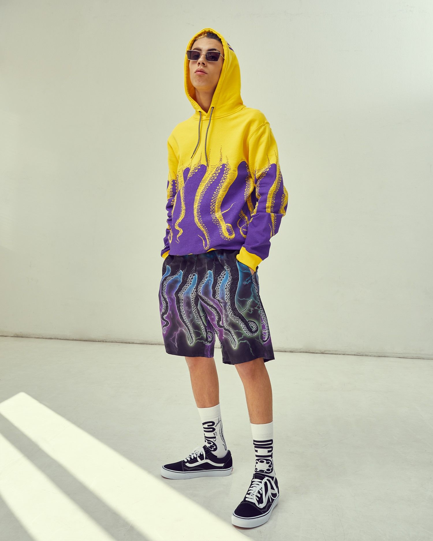 Se gli OG dello streetwear oggi sono brand con collezioni stagionali e direttori creativi che si presentano agli show della fashion week, quella accessibilità e quel fascino oggi sono nelle mani della nuova guardia: sarebbe difficile passare un’intera giornata in giro per le strade di Milano senza vedere una felpa o un cappello di Iuter, di Octopus Brand o Dolly Noire mentre marchi come Disclaimer, 545, Propaganda, Trapstar o Vision of Super diventano sempre più popolari. Per la Gen Z nello specifico, però, al discorso culturale se ne sostituisce uno economico: in un mondo di streetwear elevato dove una hoodie costa 150€, i giovanissimi vanno a caccia di prodotti sotto i 50€ e si rivolgono, quando non a brand di workwear come Carhartt o Dickies, a marchi fast fashion come H&M, Pull & Bear, Bershka e Alcott. Curiosamente, però, i gusti di queste nuove generazioni rimangono devoti all’estetica di brand celebri nel campo streetwear come BAPE, Palm Angels, Marcelo Burlon e DSquared2 di cui però si comprano prodotti quasi sempre fake attraverso tutti gli espedienti possibili: si va dalle felpe Padola vendute su Amazon e dagli zaini di Sprayground che vampirizzano l’estetica di Nigo fino ai servizi di vendita di falsi under the radar che si muovono attraverso Telegram e Instagram con pagine che vendono “originali scontati” dell’80% con l’implicito intendimento che si tratta di prodotti contraffatti.