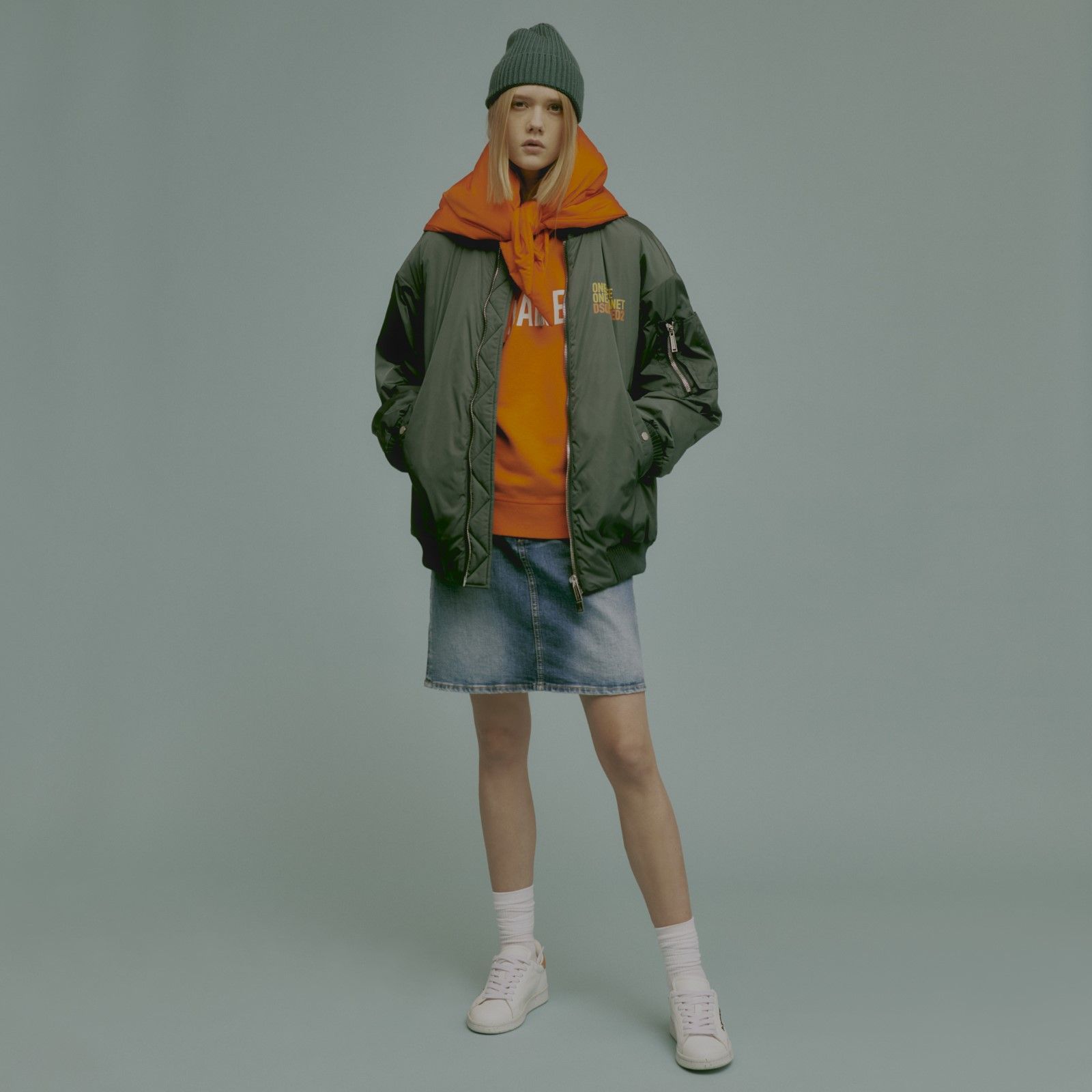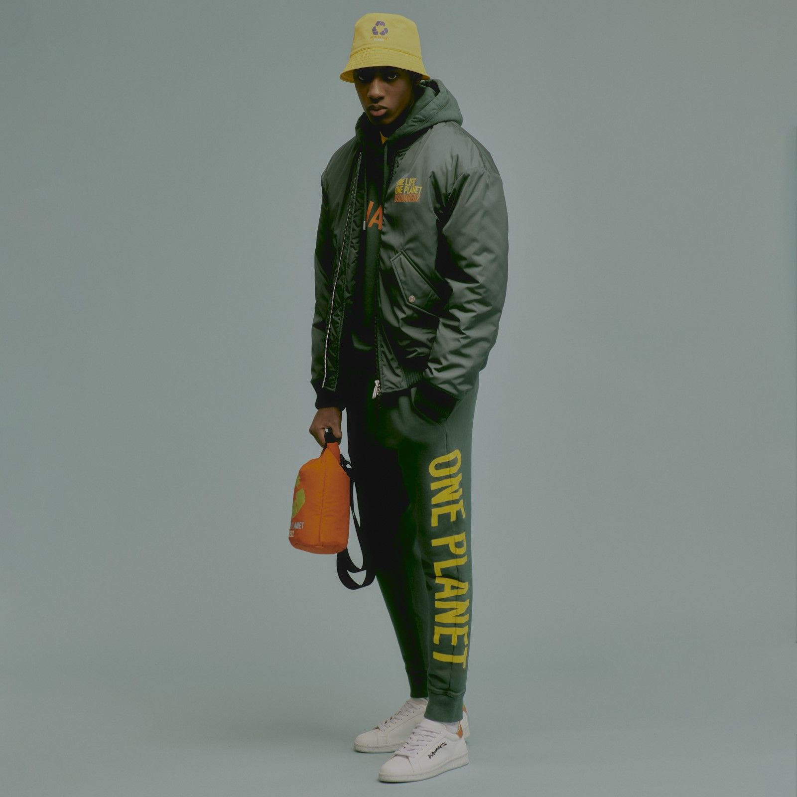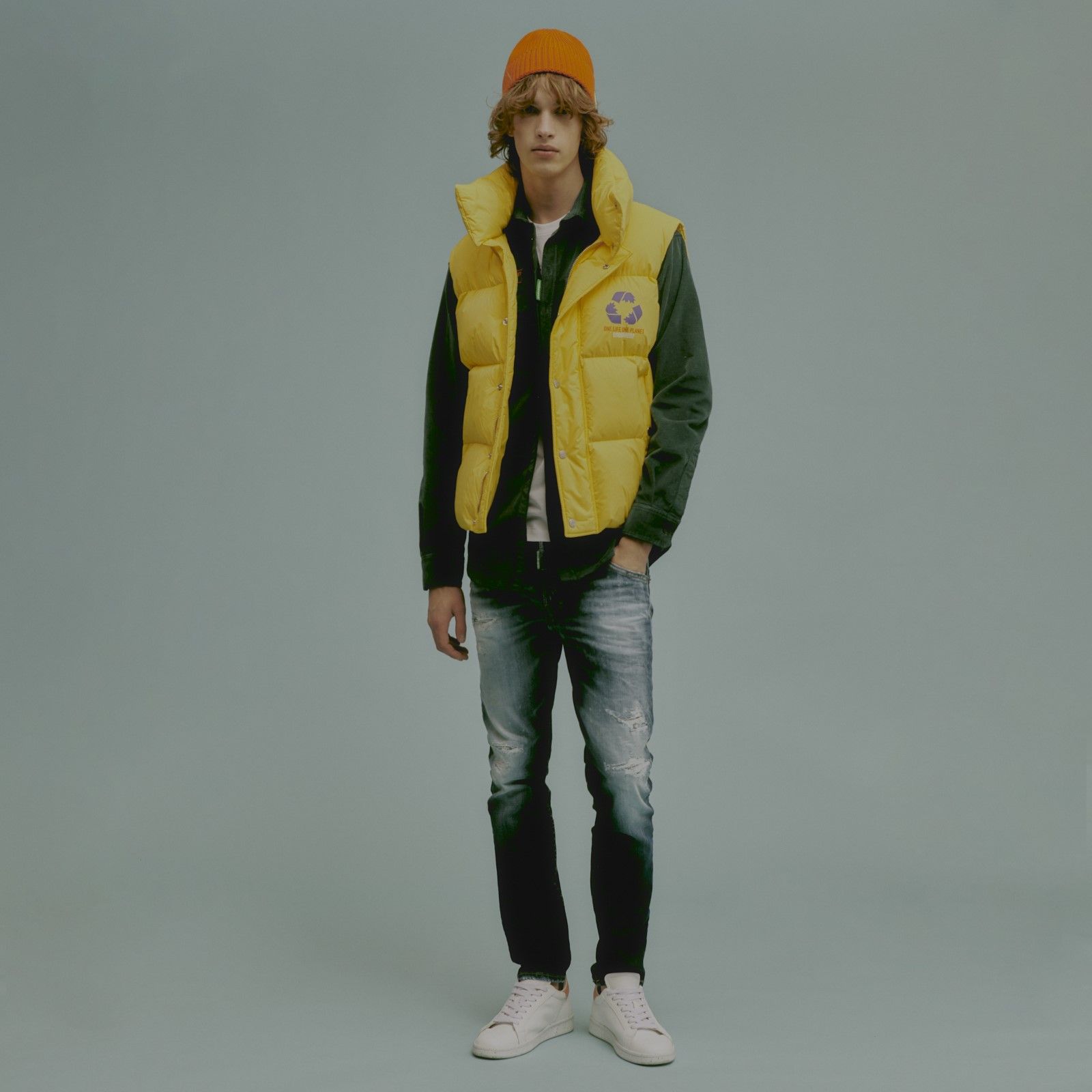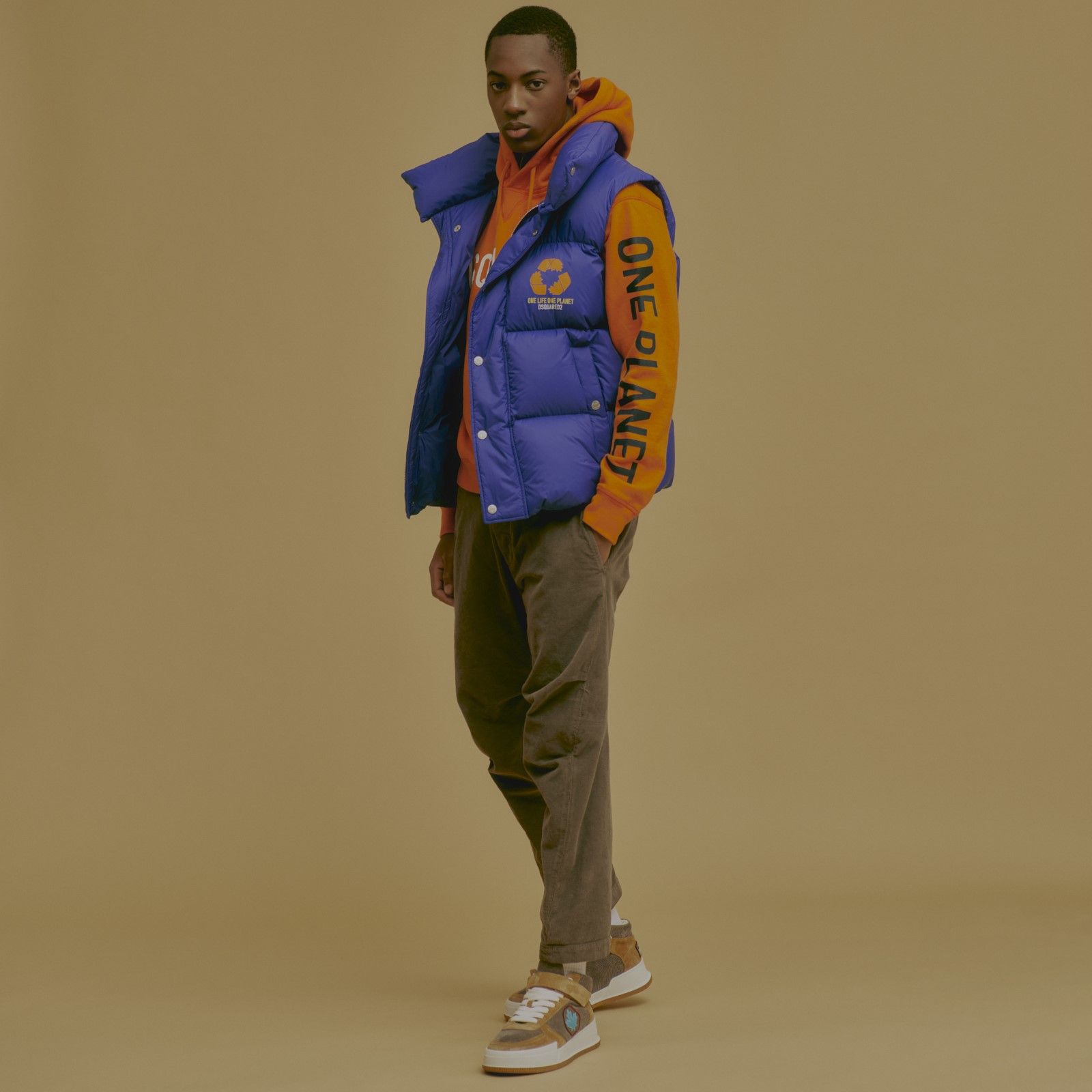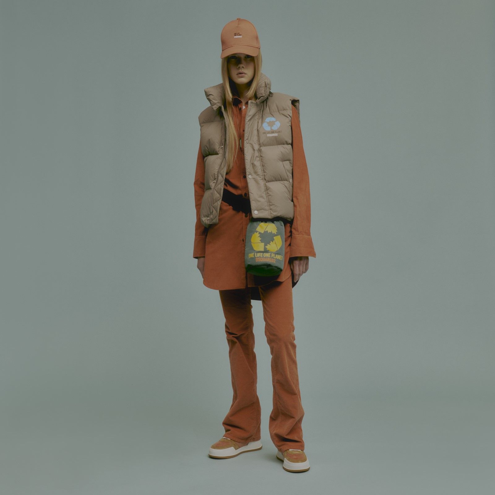Quanto al mood della collezione e ai capi stessi, l’estetica scelta è quella casual-outdoor, con puffer vest, giacche tecniche, borse con ganci che richiamano il mondo della scalata come anche gli scarponi tecnici. Il logo della collezione, e cioè il classico simbolo del riciclaggio, decora molti dei capi dai toni brillanti facendo diventare estetica il messaggio della collezione. Tra gli accessori, ci sono anche borse e marsupi, oltre che cappelli e sciarpe - ma la capsule si estende anche agli accessori per gli animali domestici.