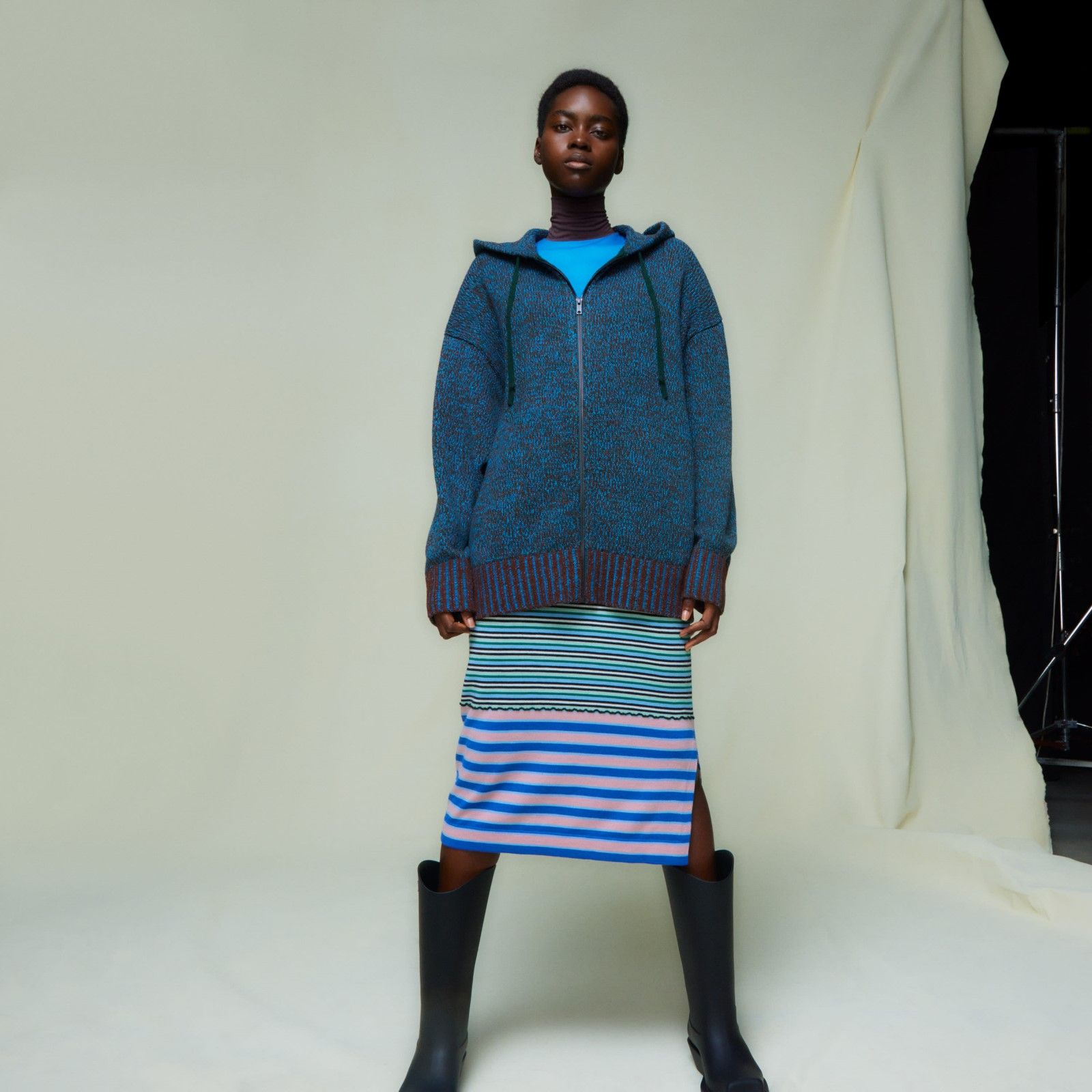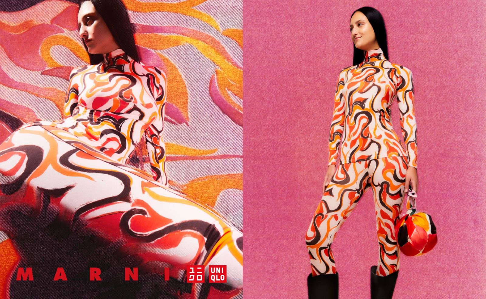 «Ho voluto indagare la percezione estetica degli anni '60, giocando con i cliché» ha invece dichiarato Francesco Risso di Marni. «I pattern continuano a confermare l'idea che ognuno ha di Marni perché sono al centro del nostro vocabolario e identificano il nostro linguaggio grafico». In effetti, se possibile, questa seconda collezione collaborativa è ancora più colorata della precedente. Tra maglieria a righe, stampe psichedeliche sui prodotti Heattech e color-blocking audaci, in effetti, la vivacità sembra essere stata la parola d’ordine della collezione che include anche set coordinati di berretti e guanti oltre che le sciarpe furoshiki in seta che può diventare anche una borsa.