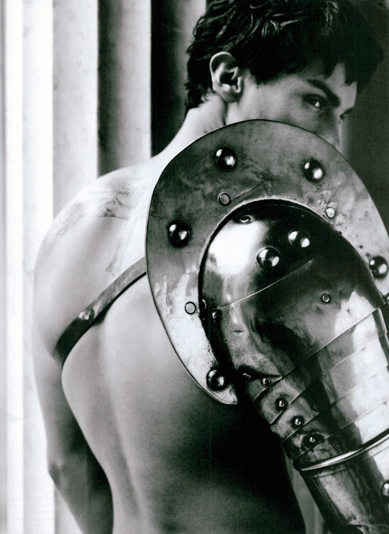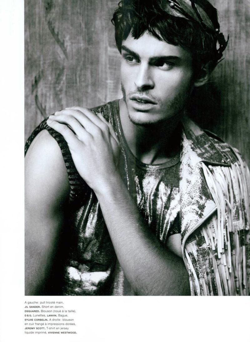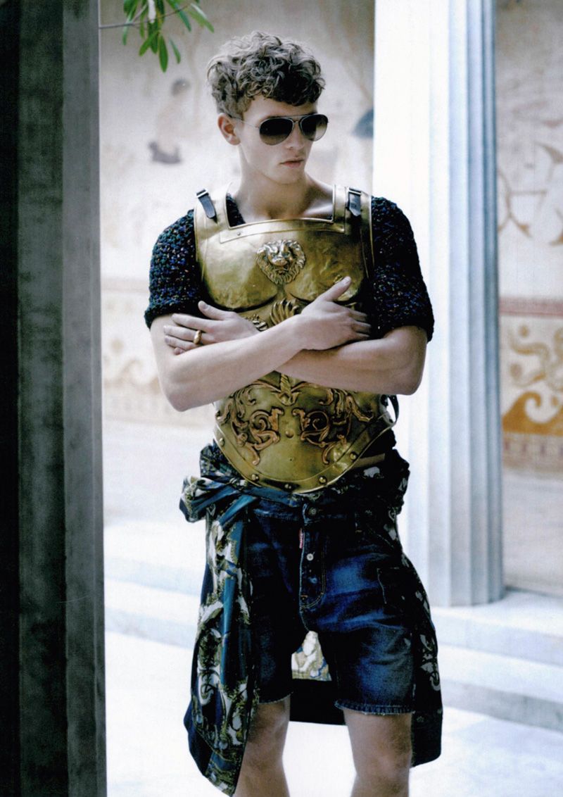 Models Baptiste Giabiconi and Benjamin Eidem play the roles of modern gladiators for the latest story lensed by fashion icon Karl Lagerfeld for the spring/summer issue of French magazine Numéro Homme.