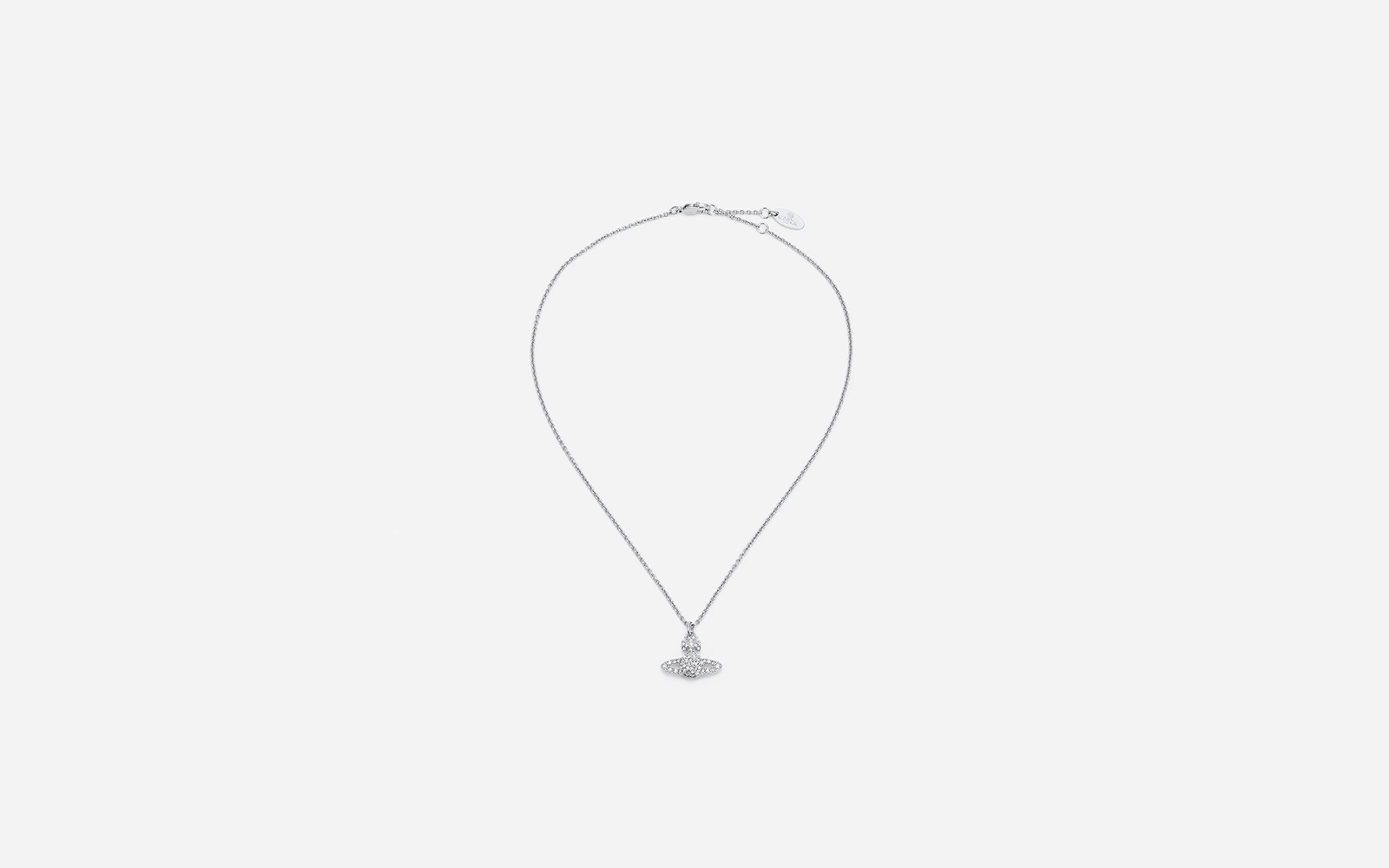 Il Grace Bas Relief Pendant è munito di una raffinata catenina con tre occhielli sottili che consentono di regolarne la lunghezza. Ha una placcatura argentata e un orb tempestato di cristalli che pende al centro.