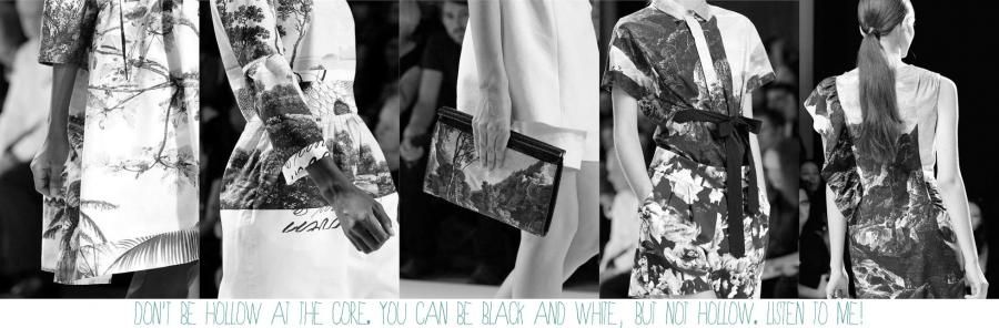 Travel postcards, of this new Albion of our imagination, printed like black&white prints on dresses and accessories; heading to thinking, and to peace. Back to the mirage, exotic with no evidence of esotericism; sensuous, but extremely smart.