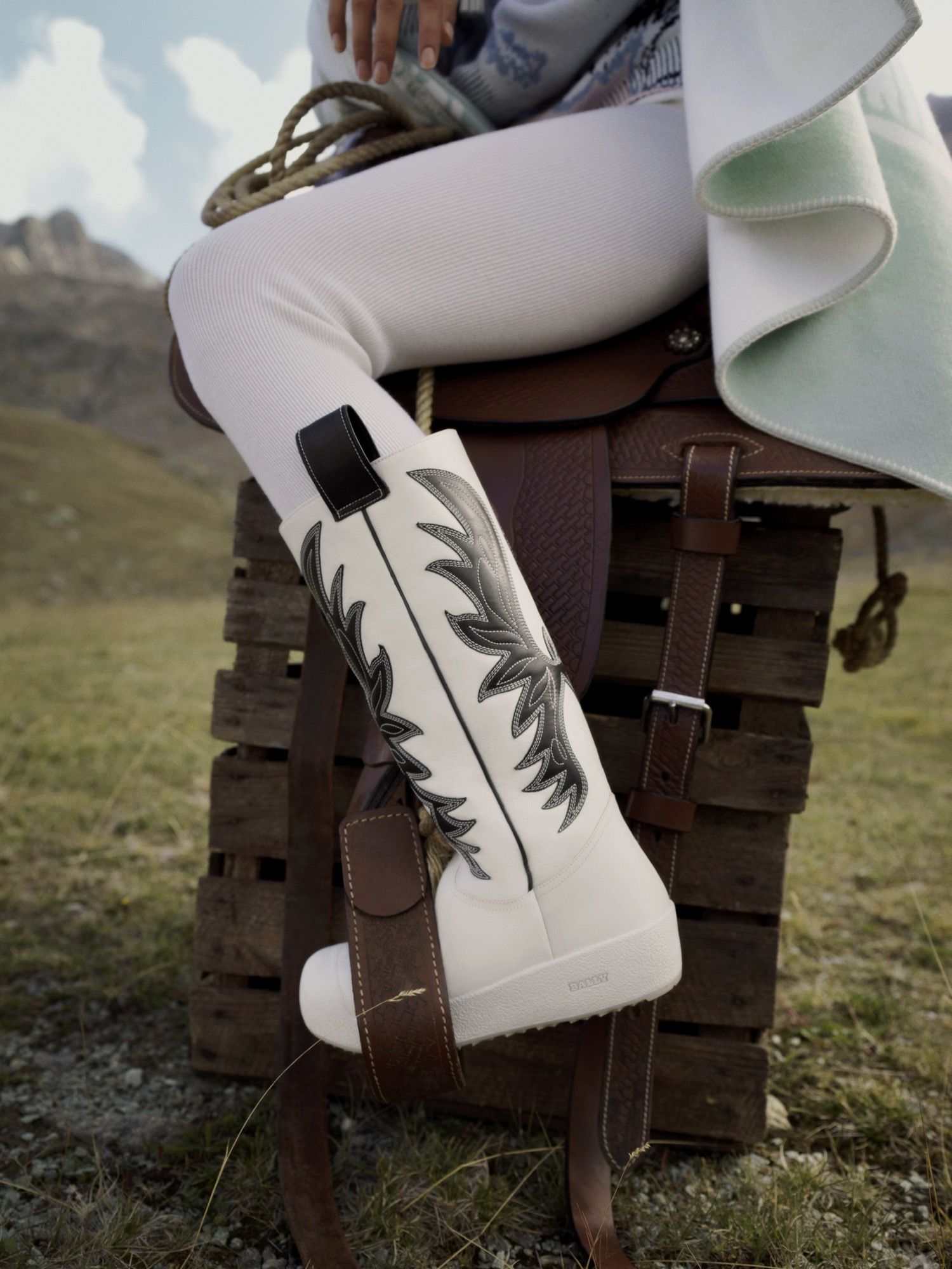 La scarpa da curling reinventata è al centro di una capsule completa di prêt-à-porter e accessori, ispirata a una contrapposizione di stili che intreccia alla tradizione alpina svizzera i codici estetici dello stile varsity e cowboy. Dallo spirito audace e spiritoso, Villaseñor, originario di Los Angeles, attinge dall’esuberante West americano e lo applica alla tradizione degli sport invernali svizzeri, dando vita a un nuovo dialogo transoceanico di decorazioni e materiali. Sintetizzato in Curl Curl Baby, un irriverente cortometraggio che racconta la sfida tra due squadre di curling avversarie, lo spirito grafico lussuoso della capsule prende vita nella splendida cornice del panorama di Saint Moritz. Dalle soluzioni di mezza stagione fino ai capi caldi per il pieno inverno, Bally Curling cattura tutta la ricchezza dell’atmosfera del dopo-sci, con completi mix-and-match che fondono dettagli Western a nostalgici motivi montani, in materiali naturali e raffinati come il cashmere, il montone e il camoscio.