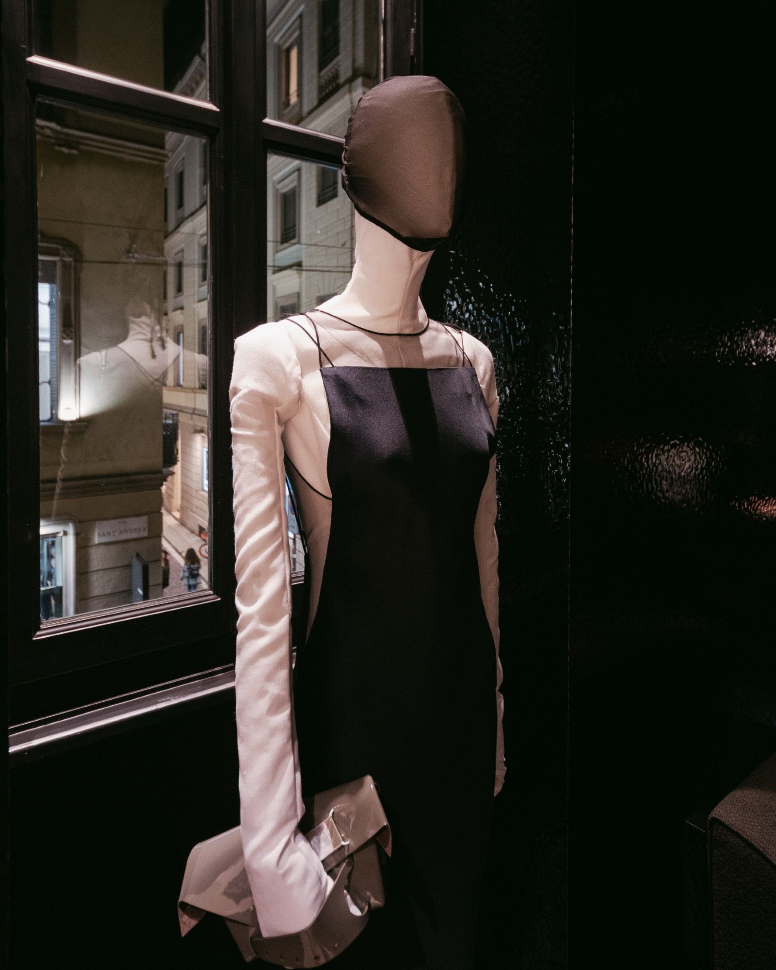 Dopo sei lunghi mesi di ristrutturazione, la boutique di Maison Margiela nel Quadrilatero della Moda di Milano, in Via Sant’Andrea per la precisione, è stata finalmente ultimata, seguendo un nuovo concept concepito dal direttore creativo del brand John Galliano. Elevata su due piani, con trecento metri di superficie totale, la boutique incorpora la leggendaria iconoclastia del brand tanto nella sua facciata che negli interni, adottando un’estetica astrattista basata, come dice lo stesso brand, «nell’appropriazione dell’inappropriato». All’interno, le collezioni di abbigliamento si trovano al piano superiore mentre il piano terra è dedicato a scarpe, accessori, gioielli, profumi e pelletteria.