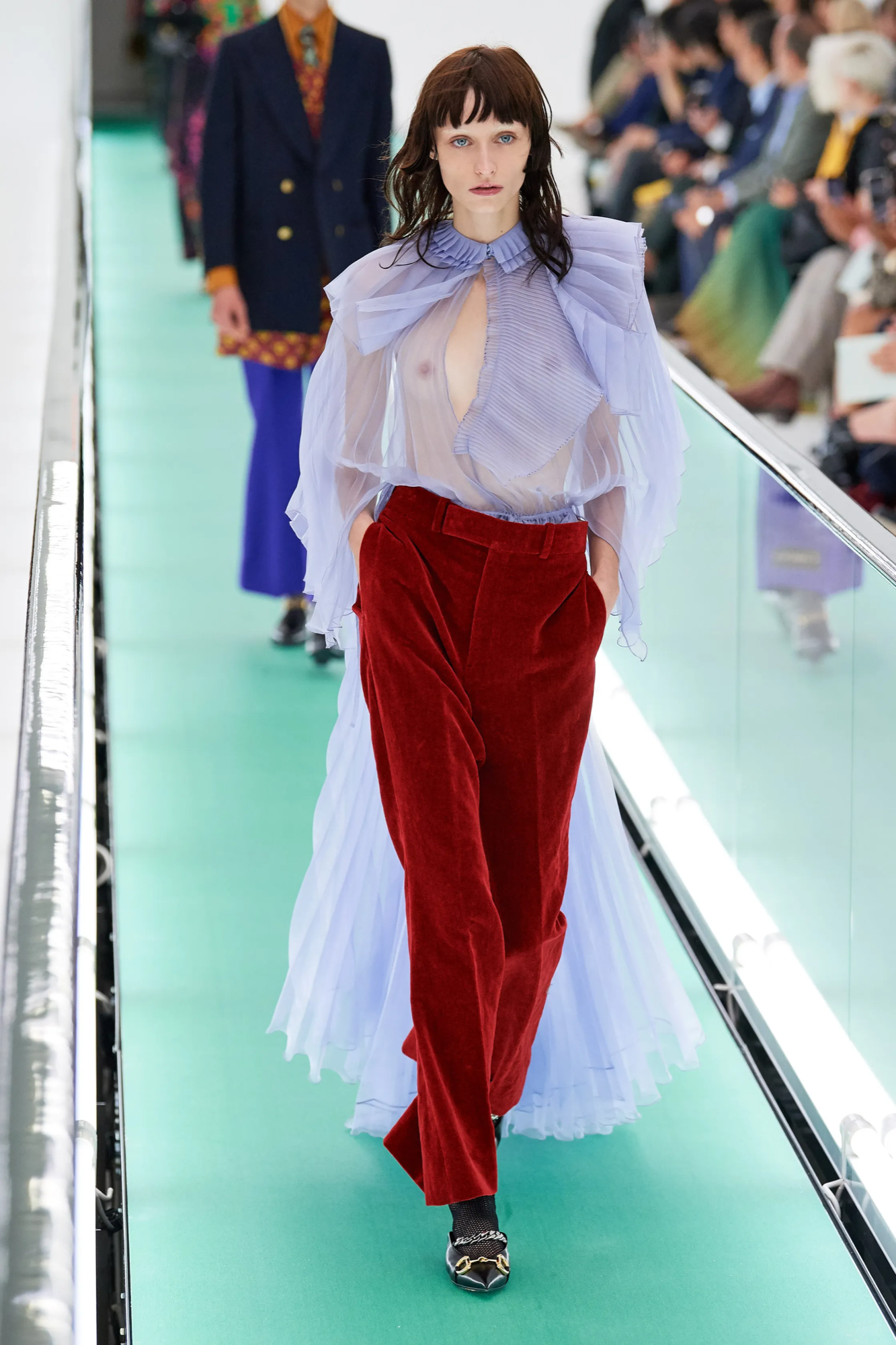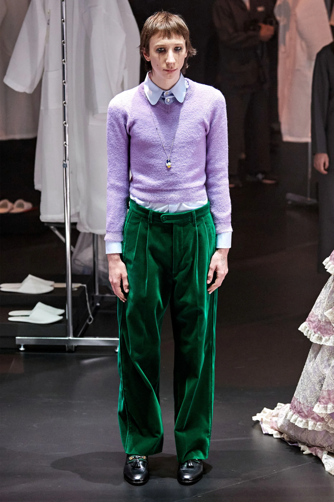 Negli anni in cui spopolava l’estetica metrosexual, Alessandro Michele ha intercettato la potenza sovversiva associata al genere: i suoi abiti e i suoi styling hanno usato il corpo come ipertesto narrativo e descrittivo per liberarlo da forme di stereotipi secolari. Emblematica, in questo caso, la collezione FW20 in cui le uniformi scolastiche e il kidswear hanno funzionato da pretesto per parlare di mascolinità tossica, patriarcato e teoria queer. La moda, nell’accezione personale di Michele, può e deve superare il binarismo di genere per offrire una dimensione che tenga conto di uno spettro umano complesso e altamente variegato. Quasi tutte le sue collezioni, neanche a dirlo, hanno messo in discussione la categorica separazione tra maschile e femminile.