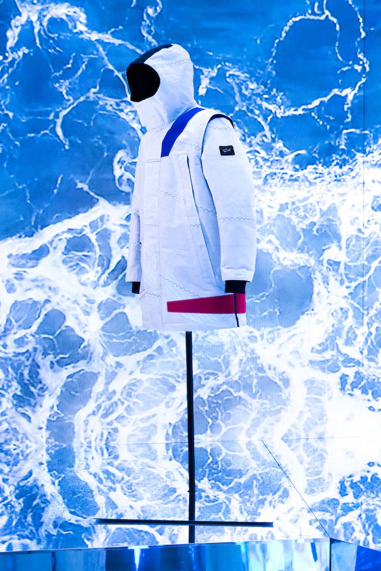 Una selezione di giacche Re-Sail è ora disponibile nei più prestigiosi store monomarca Paul&Shark, come parte della collezione SS23. Paul&Shark ha scelto la Milano Fashion Week FW 2023-24 per celebrare la sua giacca Re-Sail e lo fa attraverso un evento d’immagine che rende omaggio ai valori fondanti del brand. Per l’occasione, lo showroom Paul&Shark di Via Ciovassino 3, situato all’interno di uno degli spazi post-industriali più emblematici di Brera, ospita un’installazione immersiva e dinamica. La riproduzione multisensoriale di effetti di luce, suoni naturali e immagini dell’oceano coinvolge i visitatori, guidandoli in un viaggio emozionale in mezzo al mare, spinti dal vento tra le onde, proprio come accade alle vele. Ad emergere dal blu profondo dell’acqua, una selezione di giacche Re-Sail esposte nel mezzo di questa avvolgente realtà.