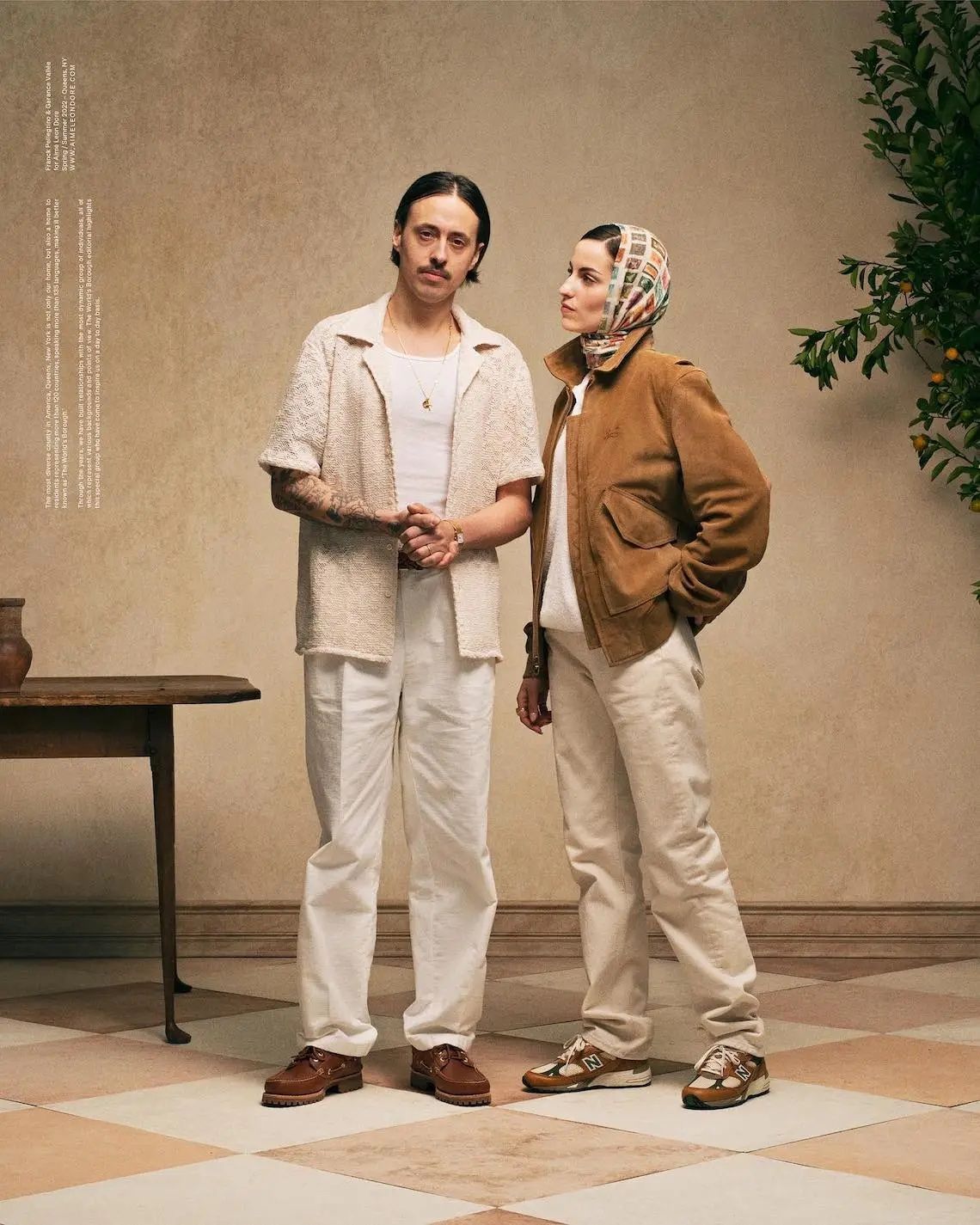 Questa attenzione unica ai propri canali ha dato loro pieno controllo della percezione del brand, consentendogli di rendere il proprio brand ancora più auto referenziale. Questo è evidente nei lookbook con il caratteristico styling Aimé Leon Dore, che consiste in un mix di sportswear e sartoria, ispirato all’iconico stile Ivy League con un twist moderno per distinguersi da Ralph Lauren e Nom De Guerre, due delle ispirazioni più grandi di Santis. Lo styling di Aimé Leon Dore include un’intensità di colori e accostamenti, sempre presentati con un look atletico preppy. L’abilità di creare un sorprendente setting è un’unicità per Aimé Leon Dore, e il lookbook e la campagna Spring Summer 2022 ne sono un esempio eccellente. Le riprese del video fatte ad Atene, in Grecia, includono l’unico canestro da basket dell’isola, ed è una bellissima presentazione visiva del loro stile atletico preppy.