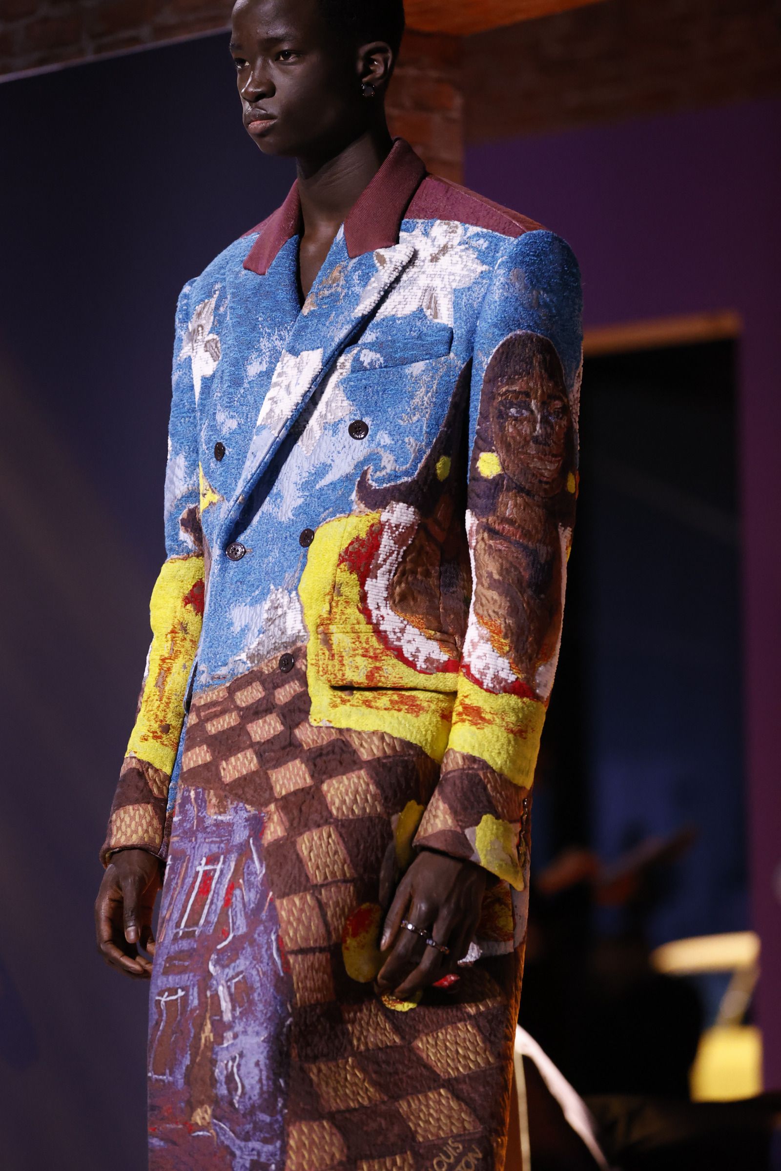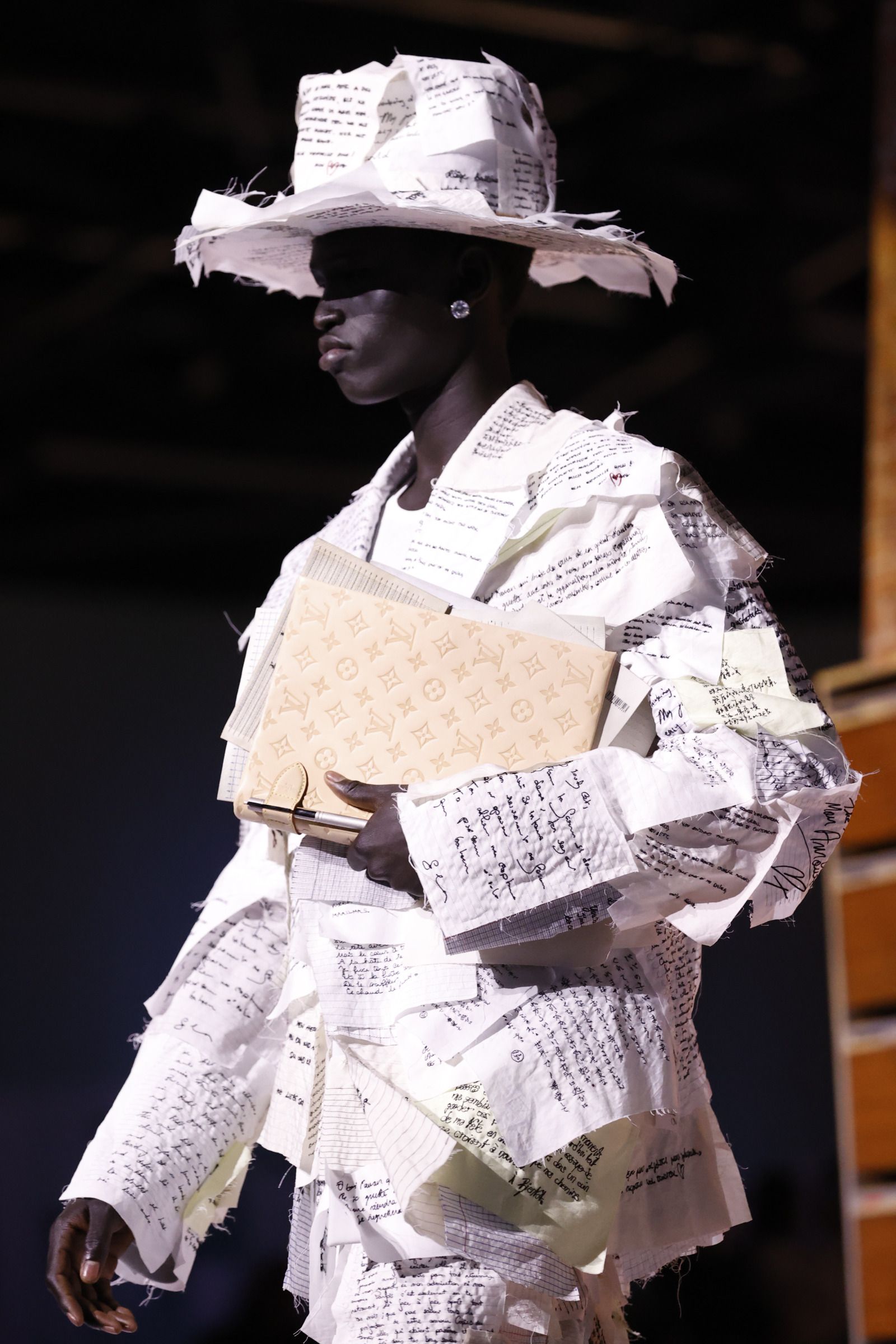 Lo show FW23 di Louis Vuitton di ieri è stato un evento molto particolare. Da un lato, leggendolo come spettacolo puro, ha rappresentato un’uscita meno faraonica delle passate stagioni ma riuscitissima sotto il punto di vista creativo anche grazie al lavoro di Michel e Olivier Gondry e della perfetta curation musicale di Rosalìa; dall’altro lato, però, contestualizzandolo nella storia di Louis Vuitton, e considerato come sia stato Colm Dillane a partecipare ai lavori del design studio del brand, lo show sembrava ancora portare in tutto la firma di Virgil Abloh. Il che non sarebbe un problema se Virgil Abloh non fosse scomparso ormai da più di un anno. La chiamata di Colm Dillane come guest designer della collezione del brand è parsa inizialmente come un tentativo di portare avanti la narrativa di Louis Vuitton preparando il terreno a una svolta creativa di qualche tipo, magari facendo acclimatare il pubblico a un designer diverso da Abloh. La collezione, però, è rimasta ambigua sotto questo punto di vista: la presenza di Dillane è servita a far sì che il risultato non fosse una sterile ripetizione del passato, ma quello stesso risultato ha riconfermato quanto ancora il menswear del brand dipenda da un passato da cui non si riesce a distogliere lo sguardo. Gli occhi stampati sui cappotti, i cristalli, le stampe giocose, il richiamo all'infanzia, i flare dei pantaloni, il look fatto di fogli di carta, l'outerwear architettonico, i completi sartoriali completamente dipinti - sembrava tutto fatto come se Virgil fosse ancora vivo. La mano di Dillane non è parsa la mano di un altro designer, diverso ma affine all’illustre scomparso, ma quella di un devoto seguace che ha omaggiato Abloh.