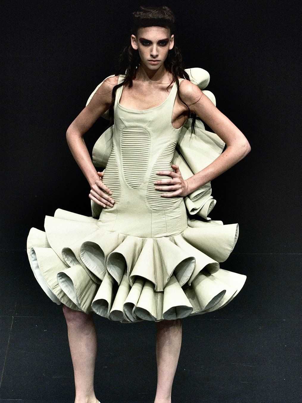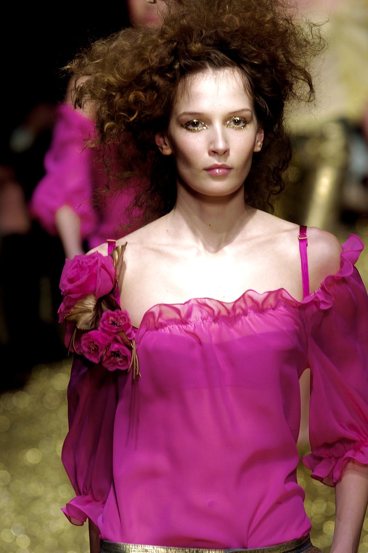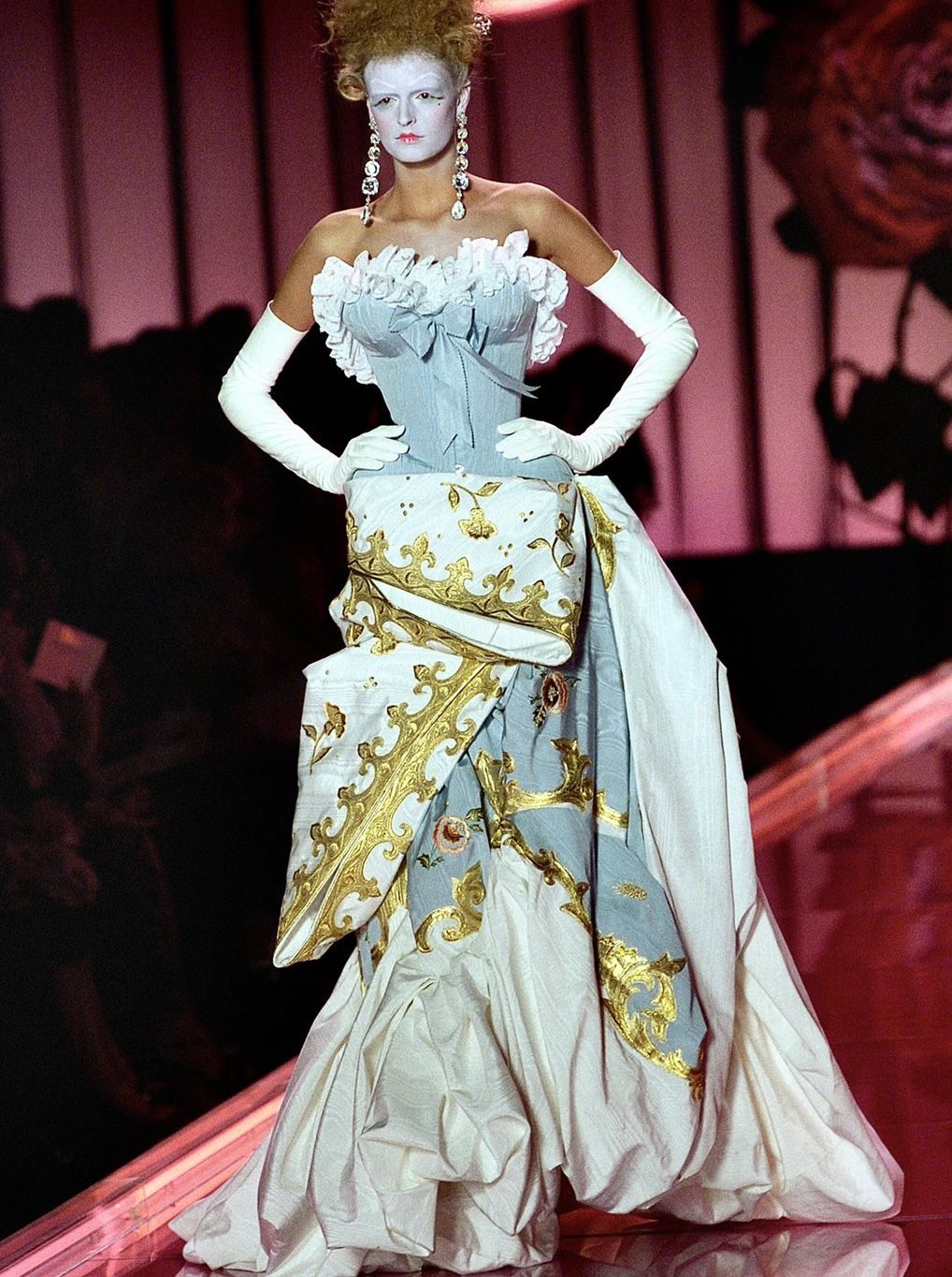 “What you waiting for”, il videoclip del 2004 girato da Francis Lawrence, segna il debutto da solista di Gwen Stefani dopo l’esperienza con i No Doubt, un punto di svolta artistico quanto estetico per la cantante statunitense. Si ispira al leggendario servizio “Alice in Wonderland’, fotografato da Annie Leibowitz per Vogue USA nel Dicembre 2003 in un tripudio di abiti firmati Vivienne Westwood, Alexander McQueen, John Galliano. La maggior parte dei look sono presi dalla FW04 di Dior, una collezione ispirata alle principesse austro-ungariche tra abiti corsetto e corone un po' sbilenche, perfettamente in linea con le avventure di Alice. Traballando sotto il peso di chili di tessuto elaborato, balze larghe quanto la passerella (a un certo punto Karolina Kurkova è rimasta incastrata nell'uscita) e zeppe di 15 centimetri, le modelle di Christian Dior hanno dato vita a uno spettacolo fiabesco che ha tenuto il pubblico con il fiato sospeso.
