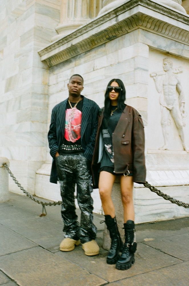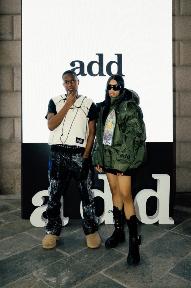 Con radici ben salde a New York, per la nuova collezione Who Decides War ha intrecciato il suo cammino con quello di Add, il brand italiano esperto in tecnologia tessile all’avanguardia e outerwear di lusso. Insieme i due marchi hanno creato una linea di parka, piumini e gilet voluminosi e soffici, delineati da rifiniture bianche e da funi sottili che sposano il mondo dello sport all’aria aperta con la vita urbana. «Abbiamo unito la visione della moda di Bravado e D’Amore alla nostra esperienza e tecnicità di prodotto,» spiega il CEO di Add Marco Corbellini, «In questa capsule genderless il nostro DNA si è mantenuto interamente, con caratteristiche dell’outerwear tecnico e di lusso che si riconosce in Add.» La collaborazione, parte integrante della collezione Fall Winter 2023 di Who Decides War, ha sfilato a New York il mese scorso, ed è stata celebrata nel corso della Fashion Week milanese all’interno del Dazio di Ponente dell’Arco della Pace, un edificio dalle linee neoclassiche illuminato per l’evento da luci soffuse e riproduzioni digitali dei capi disegnati da Ev Bravado e Téla D’Amore, proiettate con installazioni artistiche high-tech. Poche ore prima del lancio, Bravado e D’Amore siedono sui divanetti del Dazio per discutere “Politics As Usual.”
