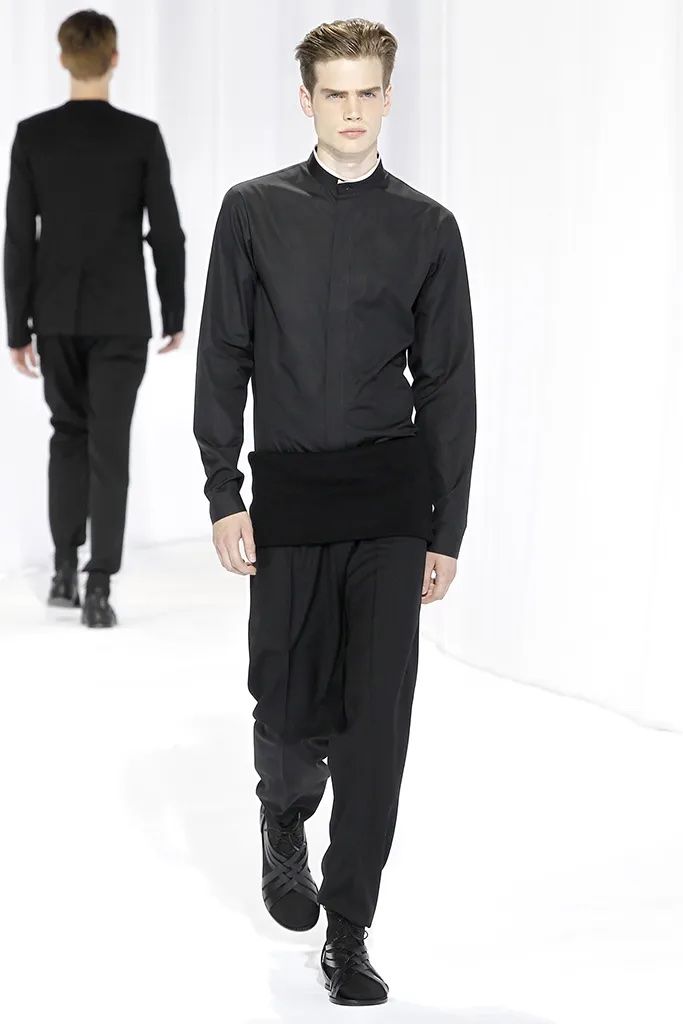 Lo stile di Van Assche è stato da sempre caratterizzato da tagli sartoriali, spesso severi e lineari, infusi però di elementi derivanti dalla Youth Culture, non definibile – sarebbe troppo semplicistico – come solo streetwear. Pur essendo distribuito in centotrenta negozi multimarca in più di trenta paesi nel mondo, il marchio del designer belga resiste solo fino al 2015 quando, per difficoltà legate alla sopravvivenza di una realtà indipendente, è costretto a chiudere. La sua cifra stilistica, però, si sviluppa e cresce come direttore creativo di Dior Homme, carica che ricopre dal 2007 al 2018 e che gli consente di definire con grandissima eleganza un periodo fondamentale per la Maison francese. L’unione tra la sartorialità più tradizionale e le influenze subculturali è sempre più marcata, in particolar modo quella che deriva dal mondo dello skate con aperture verso l’hip-hop – anche testimoniate dal coinvolgimento di figure come ASAP Rocky che nel 2016 è stato protagonista di una celebre campagna per il brand – e lo sport in generale, sempre elevato senza cadere in banalità e scontatezza. Uno dei suoi look più identificativi del “periodo Dior” è il completo con pantaloni ampi che, sebbene ora sia diffusissimo tra sfilate e streetstyle, una decina di anni fa era un chiaro esempio di rottura – senza dimenticare ovviamente Raf Simons quale antesignano di questa sartorialità “ampia”.