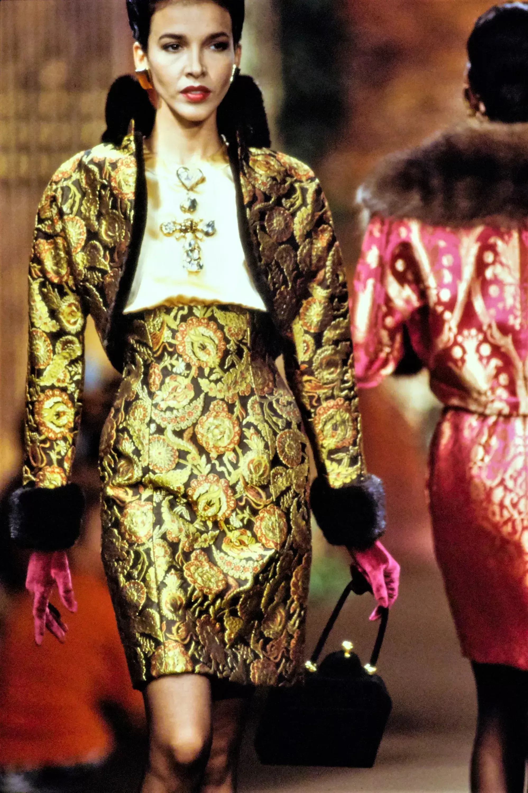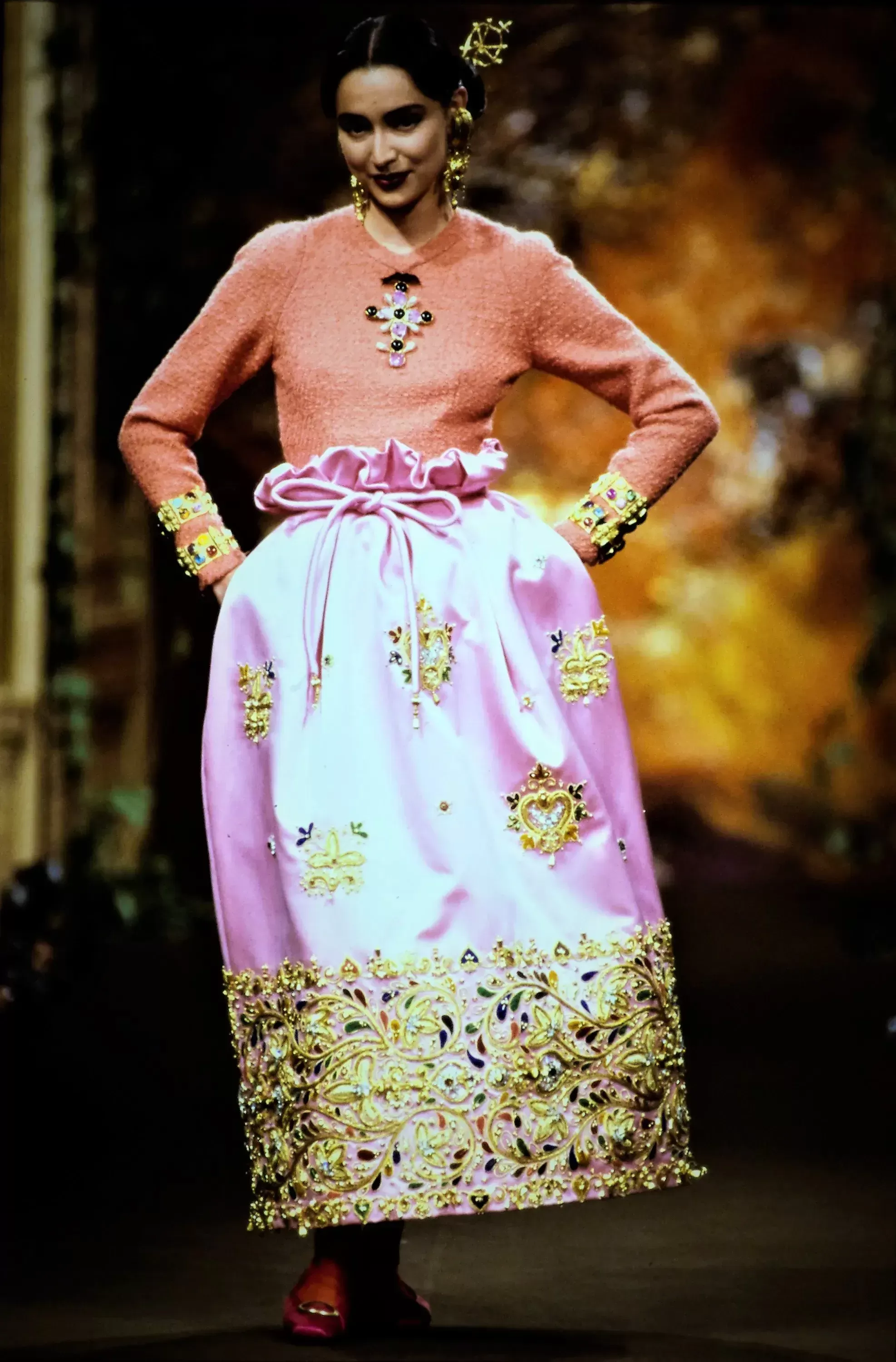 Qualche anno più tardi, nel 1987, fonda la sua maison omonima, potendo dare finalmente sfogo al crogiolo di riferimenti che hanno da sempre definito la sua cifra stilistica. Tra tutti primeggia di certo il passato per il quale Lacroix è sempre stato ossessionato anche – e forse soprattutto – per i suoi natali in Provenza, una terra nella quale collimano il folklore mediterraneo da una parte e le architetture dell’impero romano dall’altra. Perciò è stato quasi inevitabile, con questo storico punto di partenza, dare grande spazio nel suo lavoro proprio al passato, convogliando così non solo ciò che potesse rimandare alla sua Francia, ma anche tutta una serie di citazioni quali il Medioevo, l’età Vittoriana, Wallis Simpson, i costumi di Cecil Beaton per My Fair Lady indossati da Audrey Hepburn, Fellini, ma anche temi più “pop” come Mickey Mouse e Lady Diana. Il tutto elevato all’ennesima potenza, vestito di un’aura lussuosa e quasi regale, ricchissima e massimalista, perfettamente in linea con gli anni Ottanta, periodo che lo consacrò.