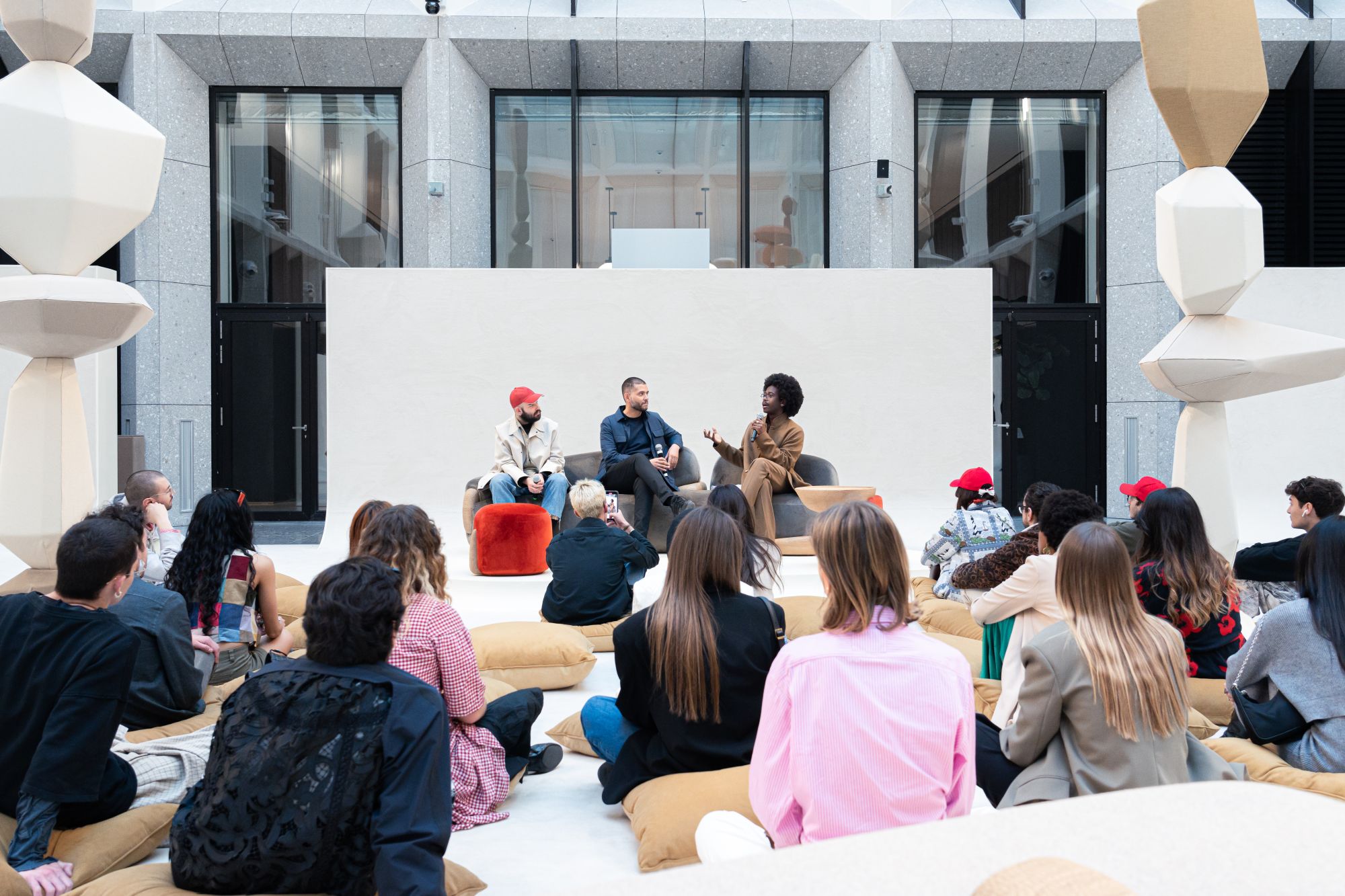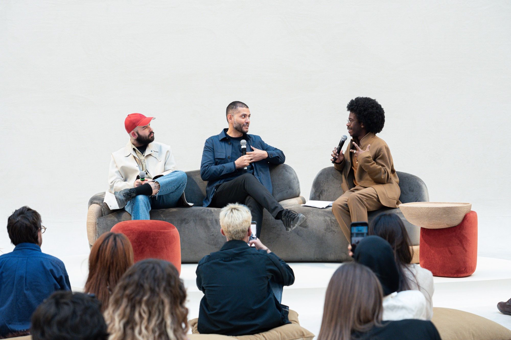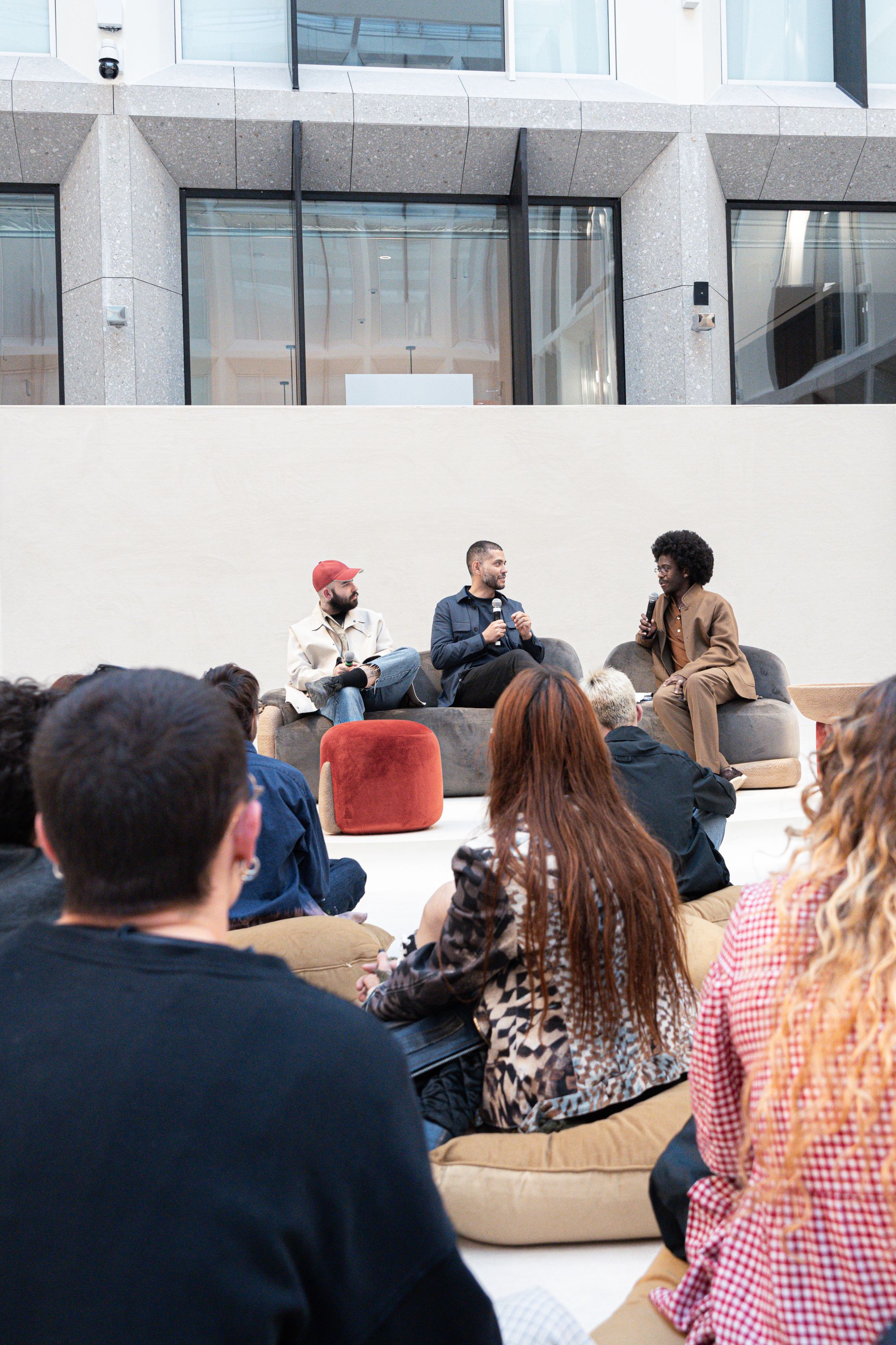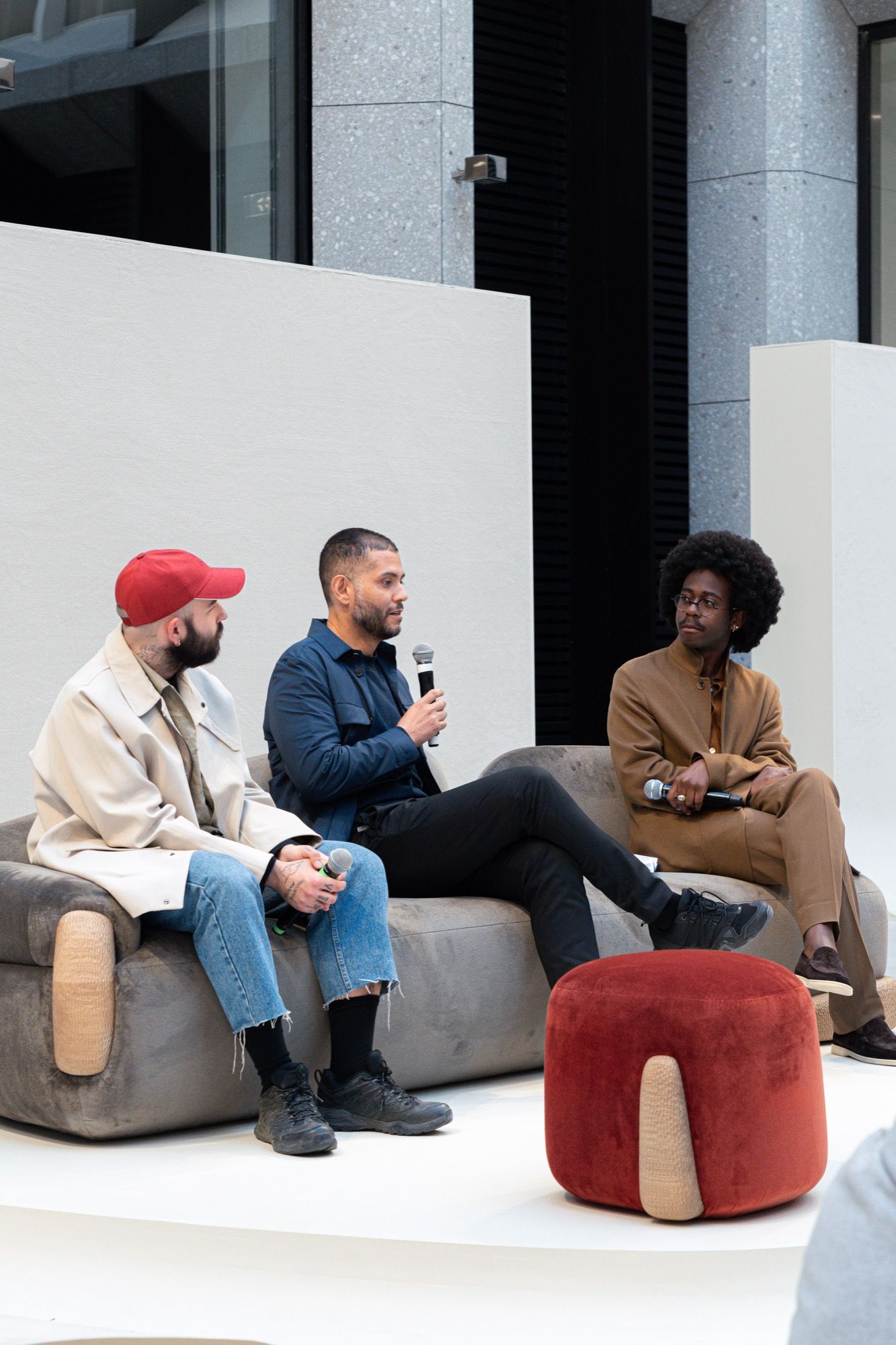 «Ogni capo ha una storia» ha aggiunto Riccardo Scaburri, mettendo in evidenza così anche l'utilità di recuperare qualcosa di vecchio ma pregno di significato per dargli una seconda vita. Da qui è partito anche il workshop in cui gli ospiti hanno creato una tote bag esclusiva utilizzando dei tessuti riciclati di Loro Piana. Una celebrazione dell'artigianato e della riscoperta dell'essenza dei tessuti. L'artigianalità e la manualità legata al lavoro è stata anche al centro del talk, in cui i due ospiti hanno raccontato quello che secondo loro è il momento più soddisfacente durante il processo creativo. «È la parte finale» ha confessato Riccardo Scaburri, «soprattutto poter vedere il volto di chi lo indossa e capire dall'espressione se è soddisfatto.» «Concordo» ha aggiunto Cristián Mohaded, «è importante ricevere un feedback e un parere emozionale sul proprio lavoro».