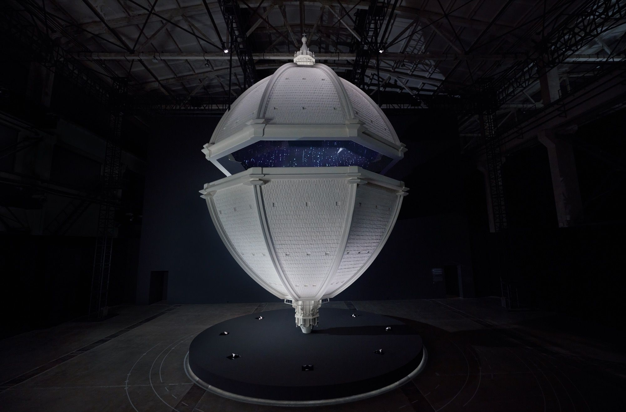Per Delvin, ricostruire l’evoluzione di Gucci in Cosmos significava interpretare la sua «capacità di evolversi e più in generale, di espandersi seguendo l’evoluzione della nostra stessa consapevolezza e di pari passo alla nostra capacità di attuare mutamenti cognitivi. Così come un abito che può essere modificato e riadattato, come la pelle che cambia durante la muta e continuamente si rinnova». Un’opera di enorme ambizione, dall’alto l’installazione imita degli ingranaggi, un riferimento al passato industriale che caratterizza il West Bund Art Center, mentre la mostra dipinge una metafora di orbite cosmiche. «Il progetto Gucci Cosmos è stato per me una straordinaria opportunità per attraversare ancora una volta, con suggestioni sempre diverse, l’universo Gucci,» ha dichiarato Frisa, «Gucci Cosmos è un'esperienza espositiva immersiva in cui il racconto delle origini e della storia è continuamente messo alla prova dall’immaginazione del futuro.»