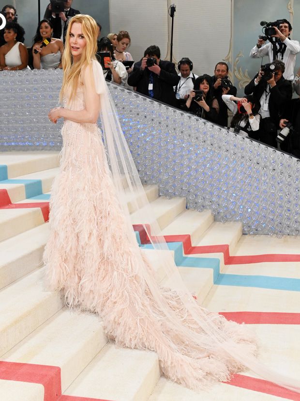Durante una carriera artistica lunga quasi 70 anni, Lagerfeld ha collaborato con numerose modelle e artiste - una più bella dell’altra, ça va sans dire. Ieri sera, per ricordare alcuni dei momenti passati insieme al designer, due delle sue ex-muse hanno deciso di rispolverare due abiti che Lagerfeld aveva ideato per i loro fisici scultorei. Nicole Kidman ha percorso la navata del red carpet - che poi era color champagne, con delle bande rosso e blu - indossando lo stesso vestito scelto da Lagerfeld per lo spot pubblicitario di Chanel N5 del 2004, di cui l’attrice australiana era protagonista. La top model brasiliana Gisele Bündchen ha invece scovato nell’archivio Chanel un vestito a sirena a strisce glitterate bianche, sovrastato da una spumosa mantella di piume, un look indossato per un editoriale scattato da Lagerfeld per un numero del 2007 di Harper’s Bazaar Korea.