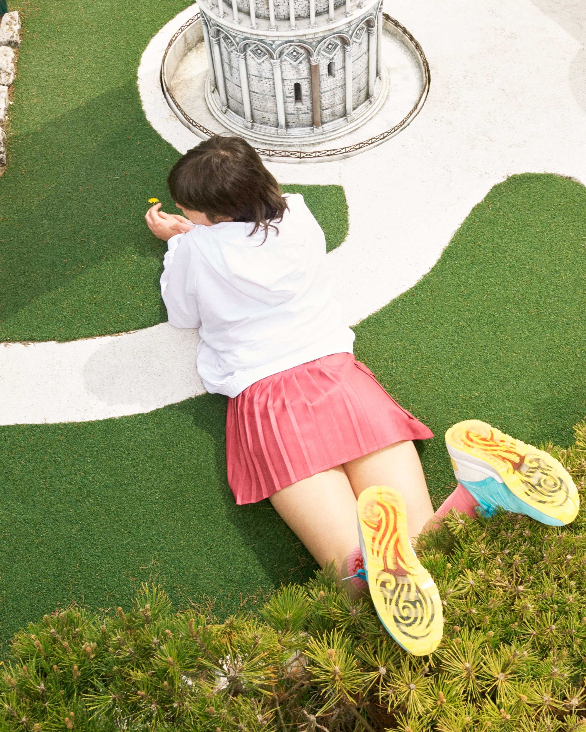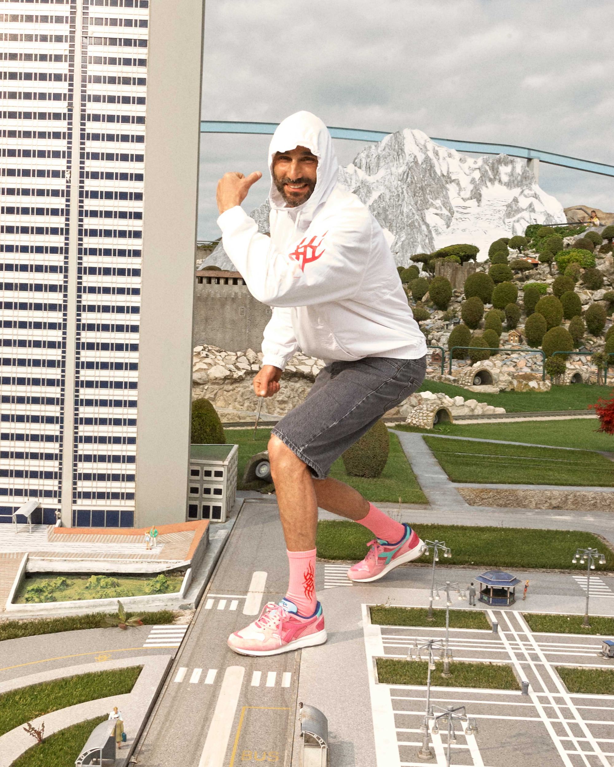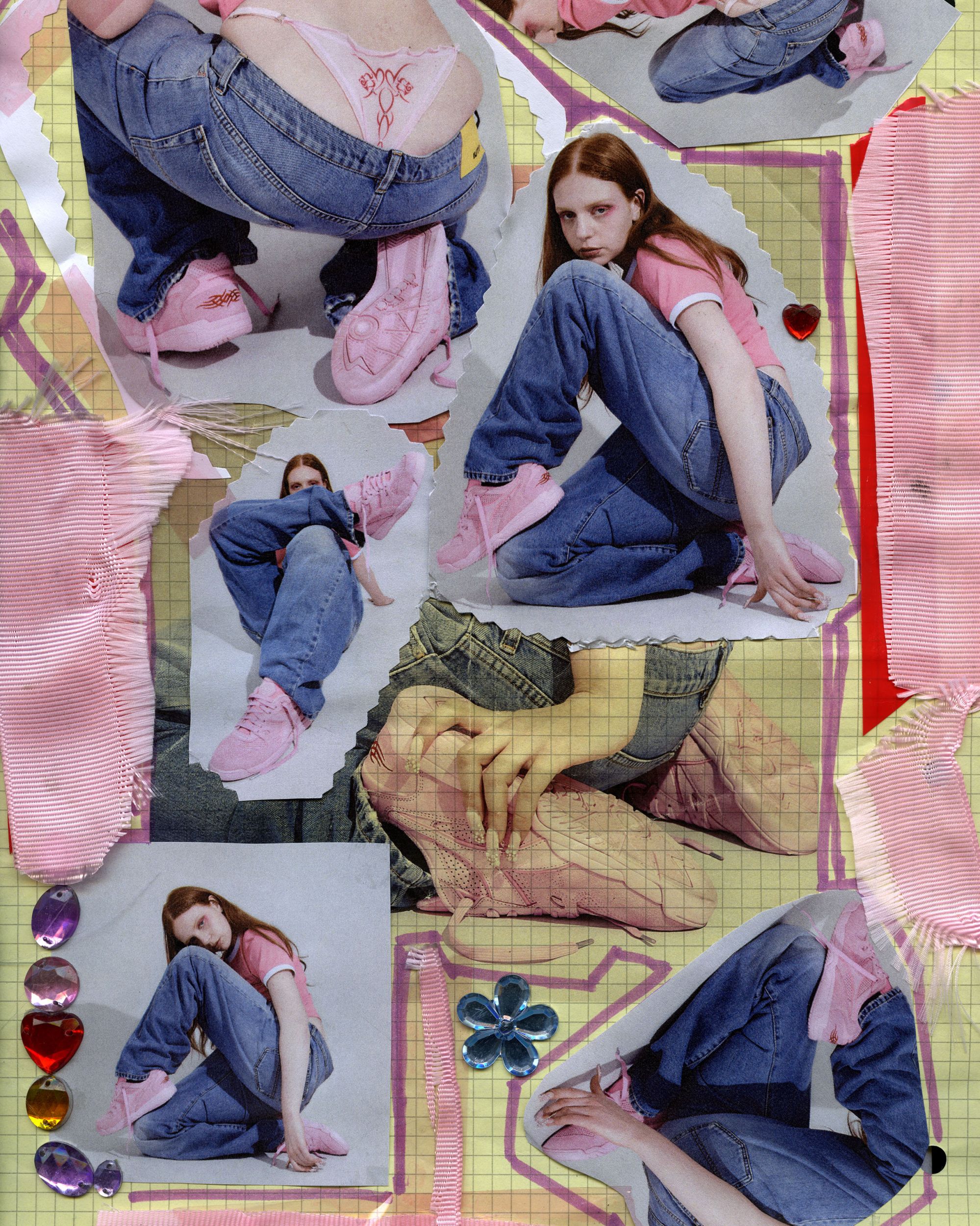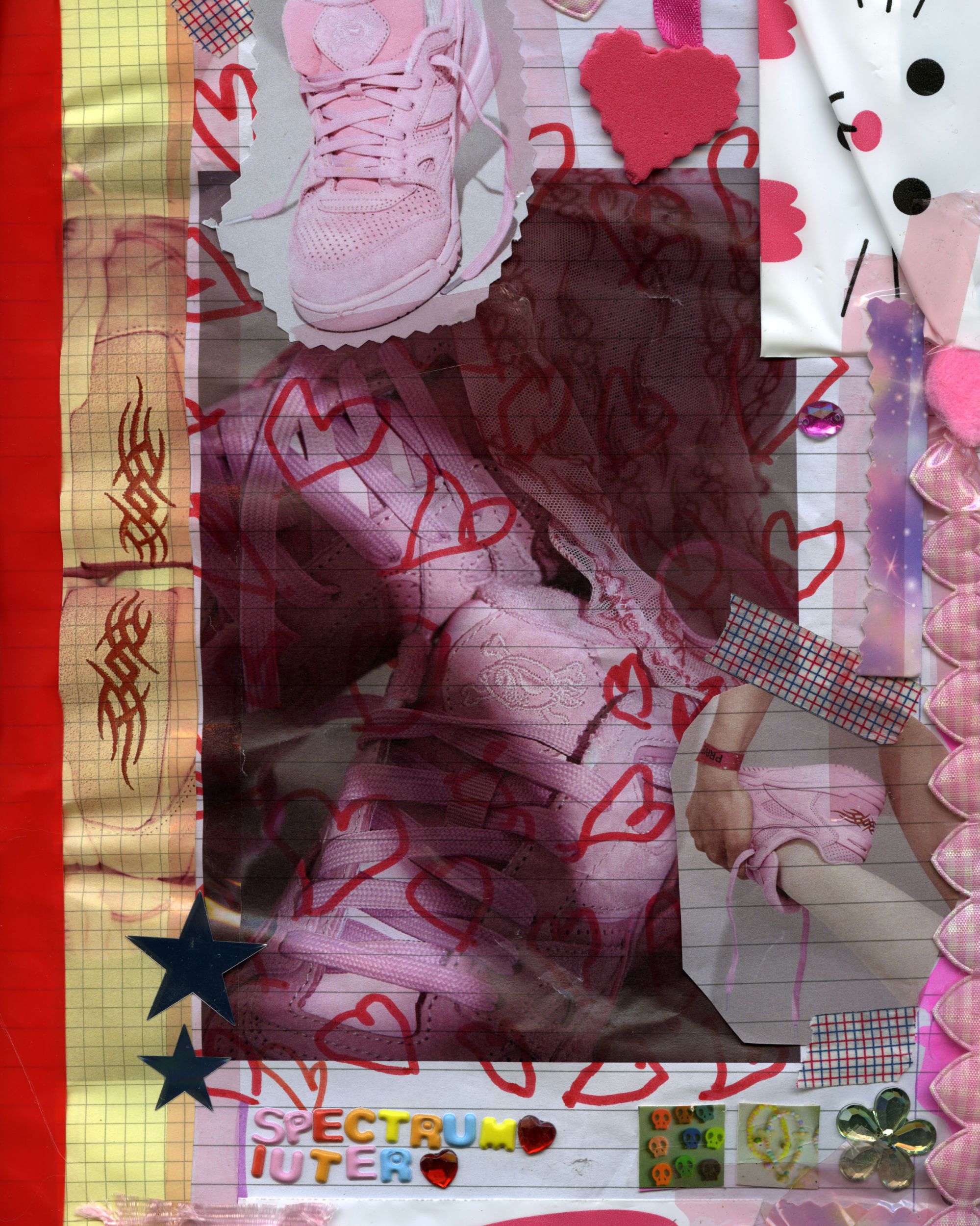 Le N9002 “Giro” sono quasi completamente rosa, con un mix di pigskin suede, pelle pieno fiore e mesh chiuso in nylon tecnico sulla tomaia. Le N9002 “Tour” invece hanno il toebox in pelle traforata. Entrambe le colorazioni hanno in comune diversi particolari custom: suola trasparente con stampa tribale, logo IUTER e SPECTRUM sulla linguetta sinistra, icona del pirata simbolo della collaborazione su quella destra, soletta stampata e lace tip a contrasto. La collaborazione a tre teste tra IUTER, Diadora e SPECTRUM include anche alcuni capi IUTER (made in Italy) realizzati per l’occasione: una Track Jacket con cappuccio bianco in tessuto traspirante e water repellent, con stampe tribali sulle maniche e loghi ricamati sul petto; una long sleeve pocket t-shirt con ricamo e stampe tribali sulle maniche; un calzino sportivo in cotone rosa con tribale rosso.