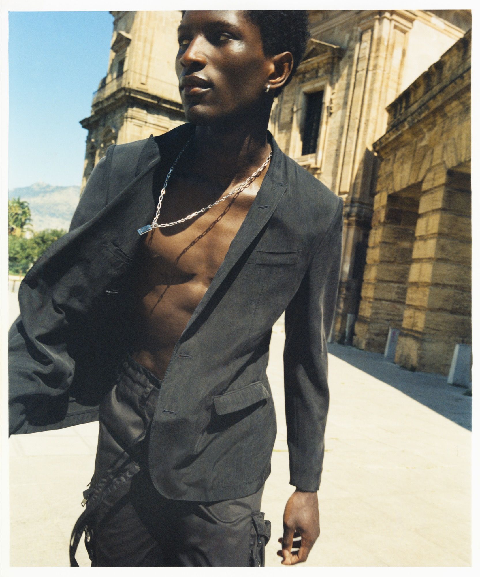 Fanno parte della capsule pantaloni baggy e giacche multi-storage pockets, un denim consumato con logo ricamato sulle tasche posteriori, così come un set da notte, pantaloni sartoriali e polo slim-fit. Gli accessori includono mocassini, sneaker Portofino e Daymaster e gioielli con perle grigio basalto. La campagna è stata realizzata da Kris Tofjan e diretta dal direttore creativo di Mytheresa, Julian Paul. Scattata a Palermo, Bah Aziz è il protagonista delle foto. La campagna racconta le radici della casa di moda italiana trasmettendo la versatilità della collezione "Dolce&Gabbana x Mytheresa" in modo colorato e accattivante.