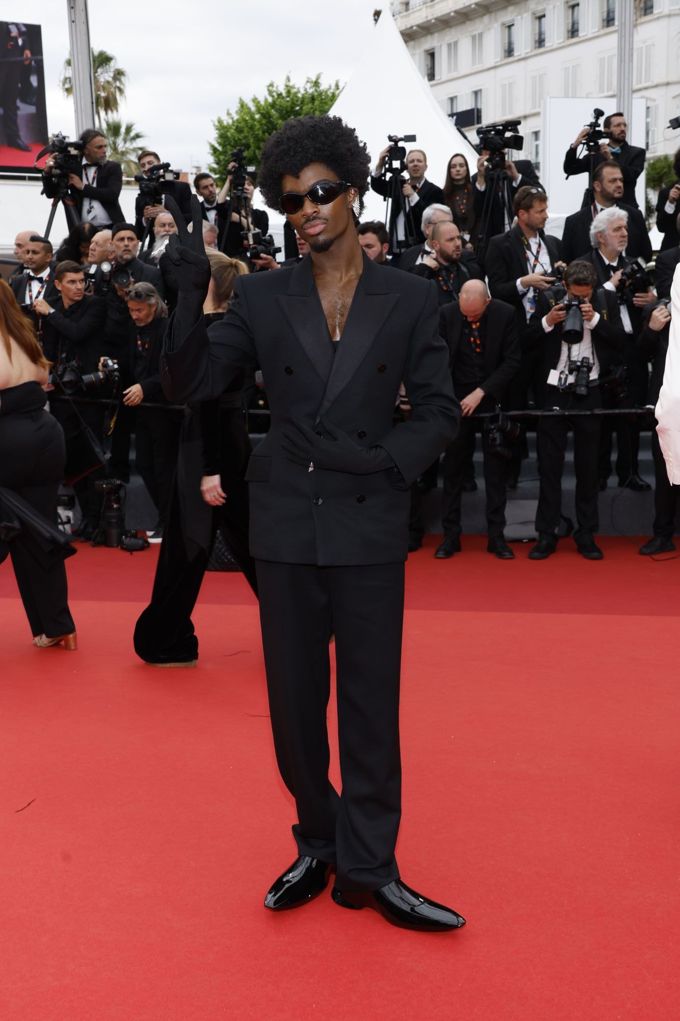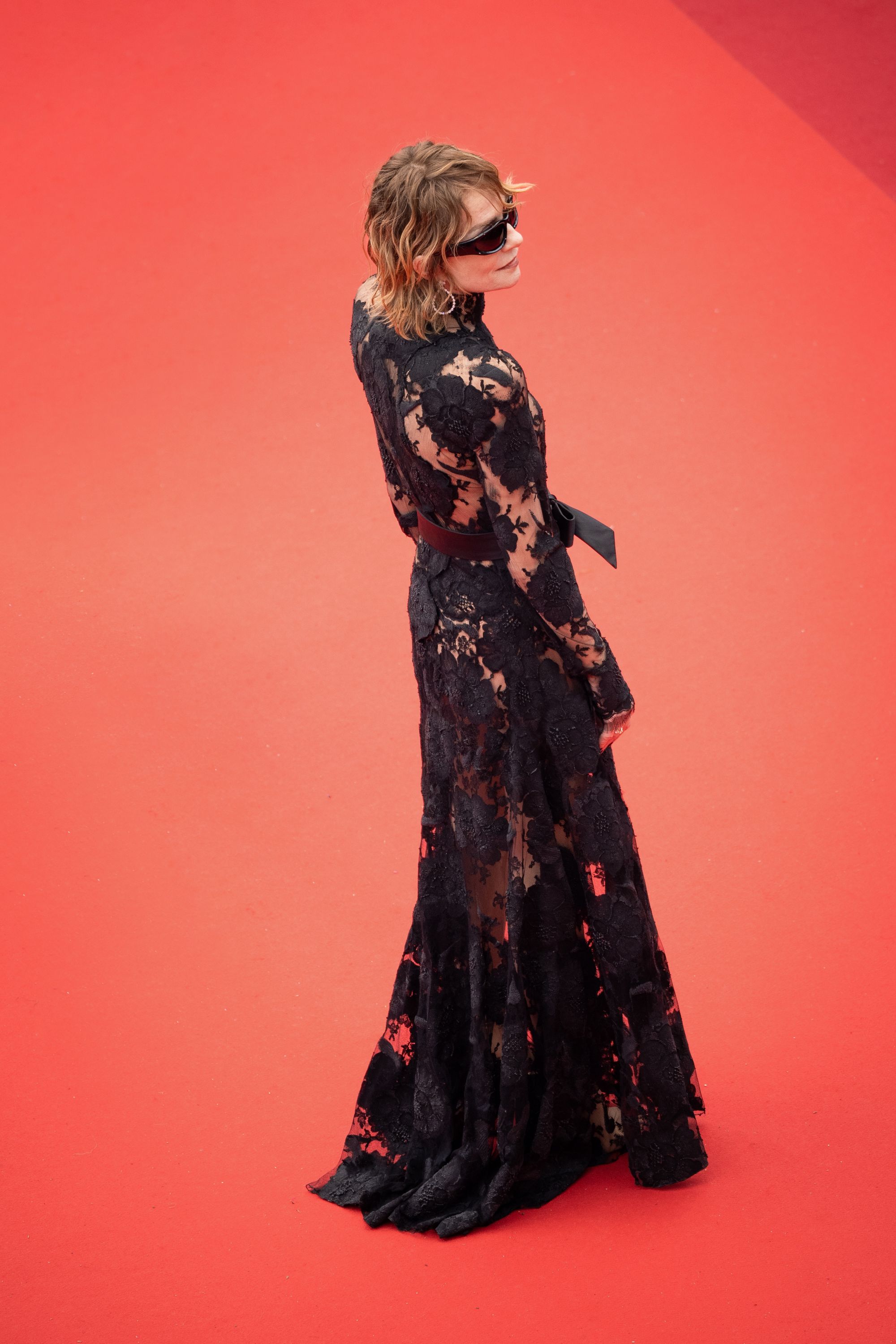 A dimostrazione del supporto da parte di Kering per il brand, il presidente e CEO dell’azienda François-Henri Pinault ha indossato un look semplice che però evidenzia il suo completo appoggio a Demna e al suo lavoro, uno smoking su misura disegnato per la sua partecipazione alla premiere del film Killers of the Flower Moon. Tra gli artisti che hanno sfoggiato alcuni look dell’ultima collezione Winter 23 di Balenciaga ci sono stati l'attrice francese Isabelle Huppert, in un vestito in pizzo nero a collo alto, Renata Litvinova, avvolta nella lunga mantella del Cave Dress in taffetà di seta, e il modello americano Alton Mason, in doppio petto e corsetto, guanti e occhiali da sole. L’unica che ha sfoggiato un abito colorato firmato Balenciaga è stata l’attrice vincitrice del Premio Oscar Michelle Yeoh, star di Everything Everywhere All At Once, premiata al Festival all’evento Women in Motion Awards sponsorizzato da Kering. Sul red carpet, Yeoh ha indossato un lungo tubino in seta verde brillante, guanti neri, scialle, e un grande collier di Boucheron. Al suo arrivo a Cannes è stata fotografata in un trench di pelle della Winter 23, e la versione mini della borsa Hourglass in argento metallizzato, e poi alla cerimonia di premiazione alla carriera un altro tubino, questa volta nero e più strutturato, abbinato a lunghi guanti bianchi e ad una parure di diamanti Boucheron.