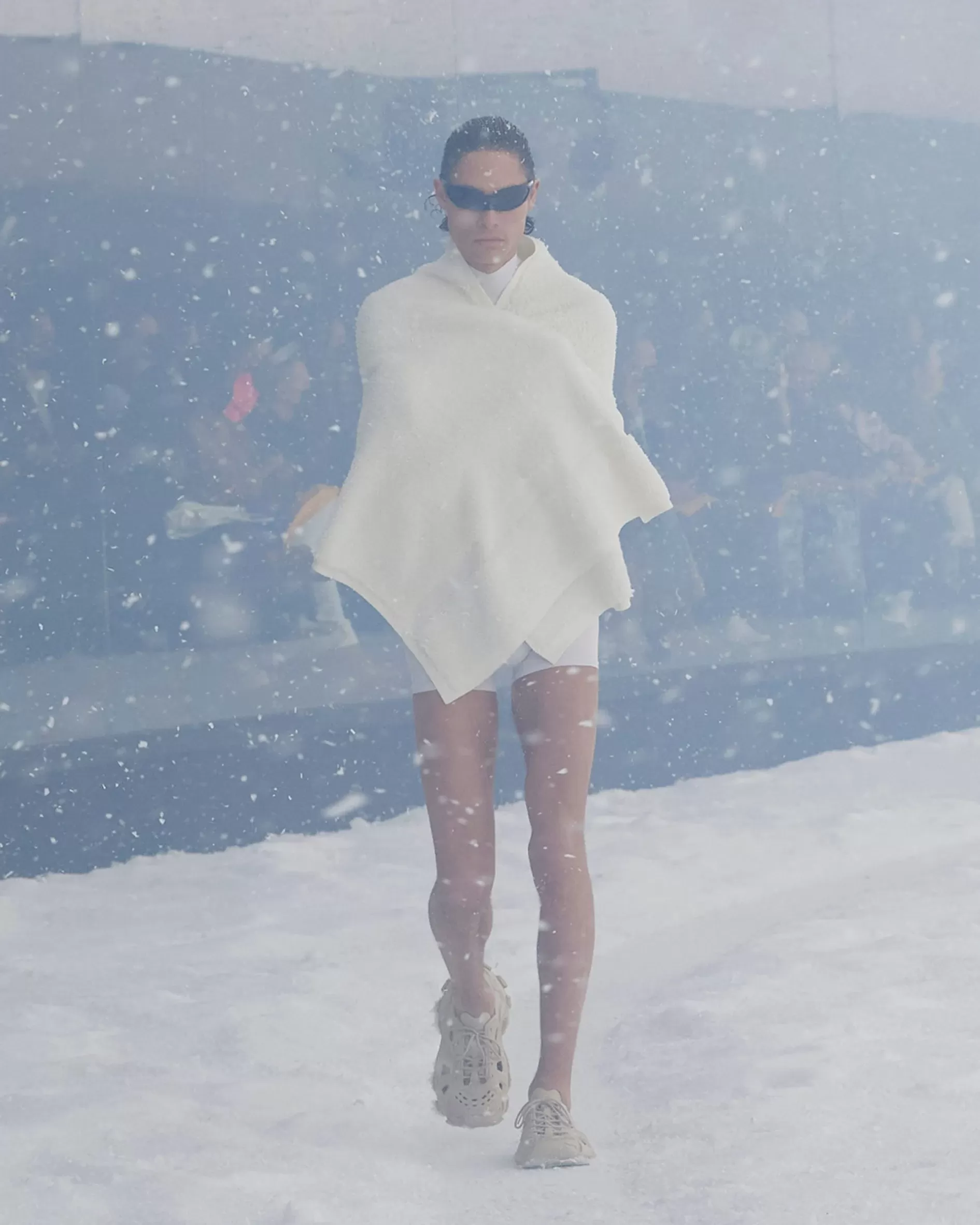 A meno che non si decida di abbracciare le abitudini bohemien dei surfisti, nessun comune mortale si sognerebbe mai di indossare un asciugamano fuori dei confini del bagno domestico o della spiaggia. Eppure la spugna, umile materiale che ha fatto capolino nella produzione di massa agli inizi del secolo scorso diventando il tessuto principe dei nostri teli, in passato era frequentemente utilizzata per la realizzazione di capi ben più formali di un copri bikini. Dall’athleisurewear all’alta moda, dalle "gonne-asciugamano" della SS24 di Balenciaga agli abiti drappeggiati di Daniel Lee da Bottega Veneta, gli stilisti hanno spesso tratto ispirazione dalla versatilità della spugna, un materiale tanto quotidiano quanto inedito. Il terry cloth non appare spesso in passerella, ma quando lo fa ruba la scena a tessuti ben più nobili.