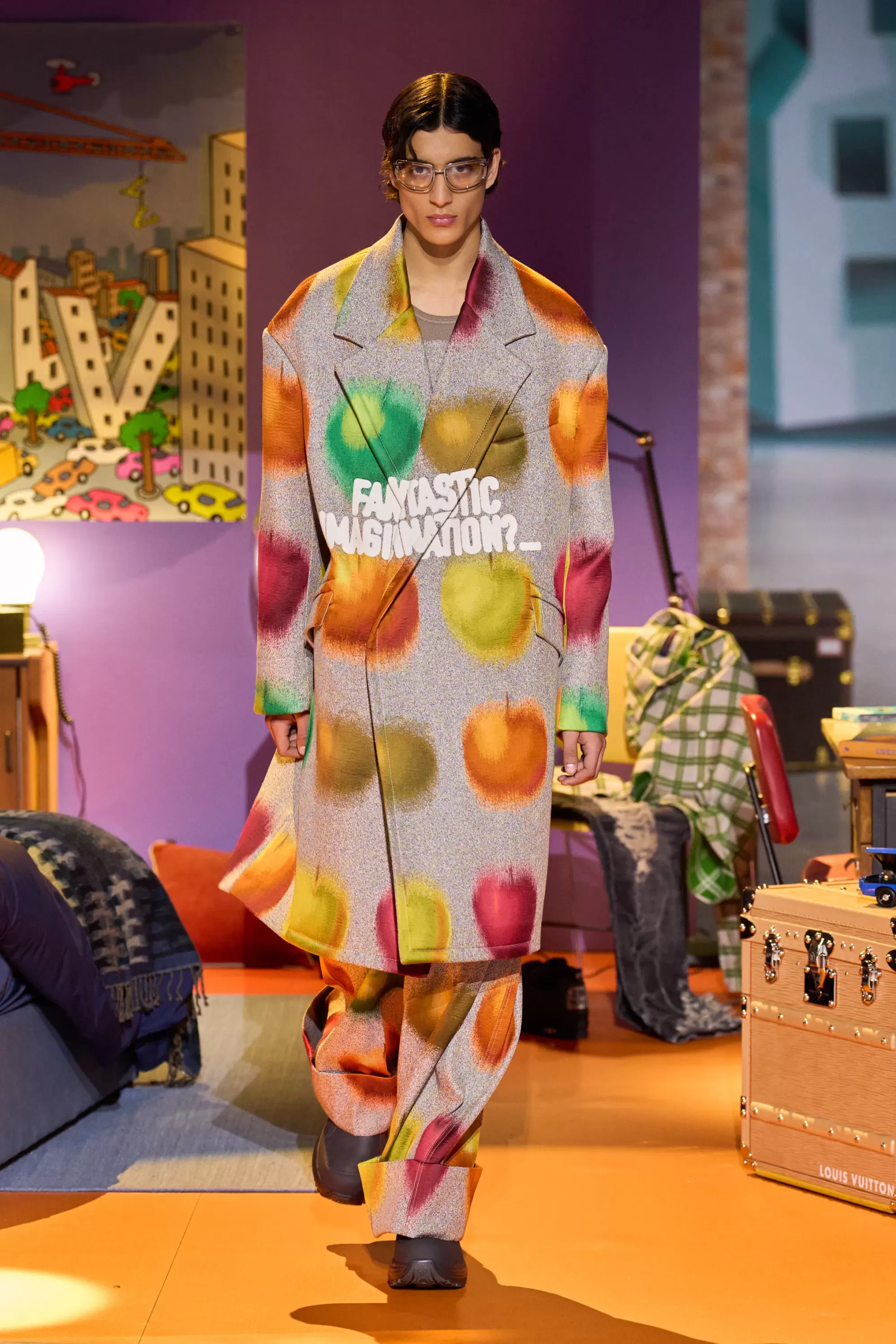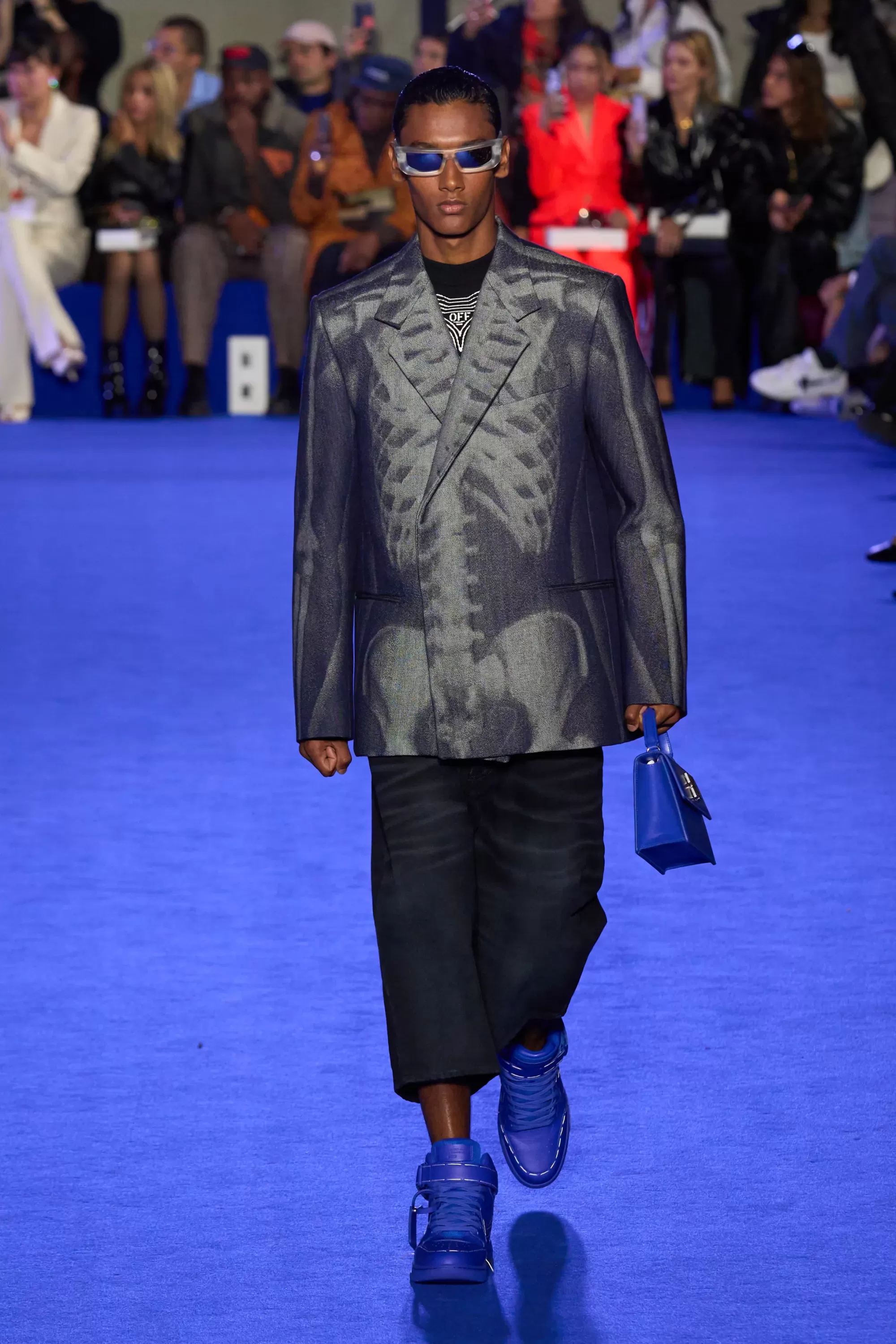 Per la FW23 di Louis Vuitton, le parole sono state un prezioso strumento per Colm Dillane e Ibrahim Kamara nella celebrazione dell'eredità artistica e culturale di Virgil Abloh. Completi strutturati con stampe giocose, slogan promettenti come ”bright vision” o “fantastic future”, un tripudio di colori: l’instancabile ottimismo di Abloh rivive in una collezione celebrativa del suo lascito. Nello stesso anno sempre Kamara (questa volta da Off-White™) ha approfondito le potenzialità dello screen print suit proponendo su un blazer in denim la stampa di un corpo sottoposto a raggi X. Tornando indietro di un ventennio, scopriamo che la moda d’avanguardia ha sempre giocato con le parole stampate, dagli slogan provocatori delle t-shirt grunge Number Nine di Takahiro Miyashita ai poem jeans nati dalla collaborazione tra Levi's e Junya Watanabe. Nel caso specifico delle parole stampate su blazer sartoriali come strumento di superamento delle categorie di genere, Yohji Yamamoto è da sempre stato un pioniere.