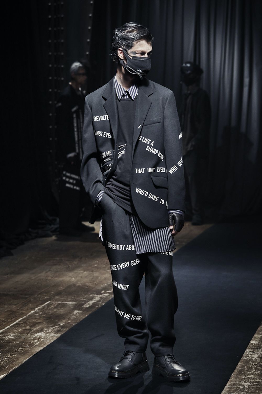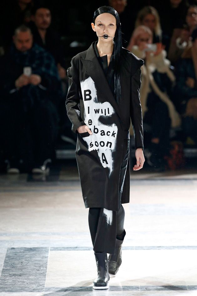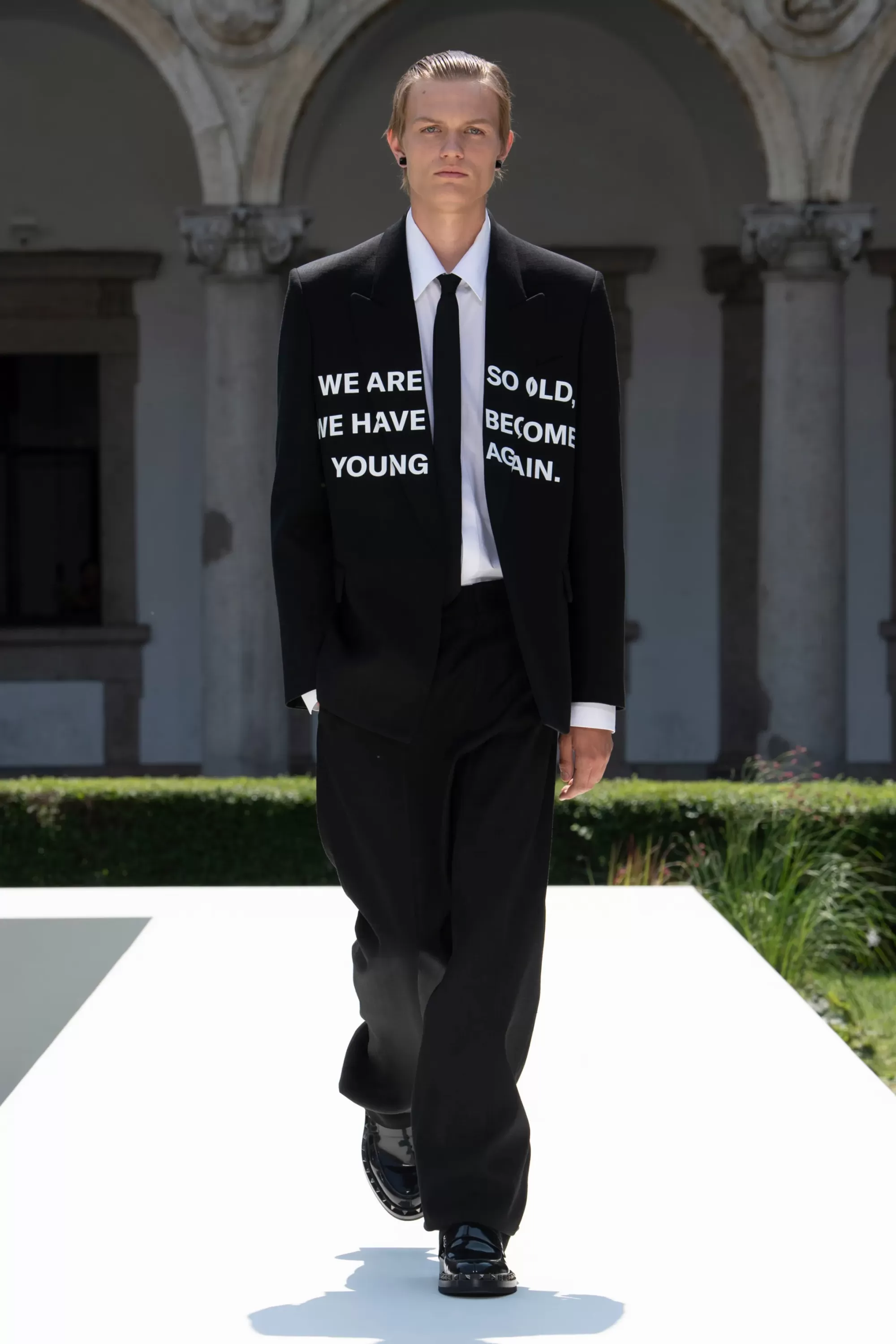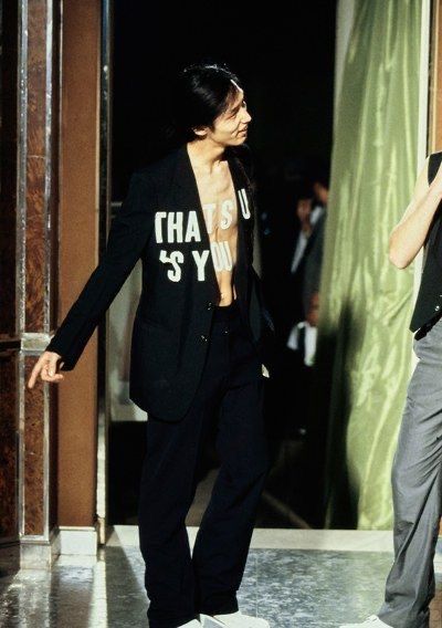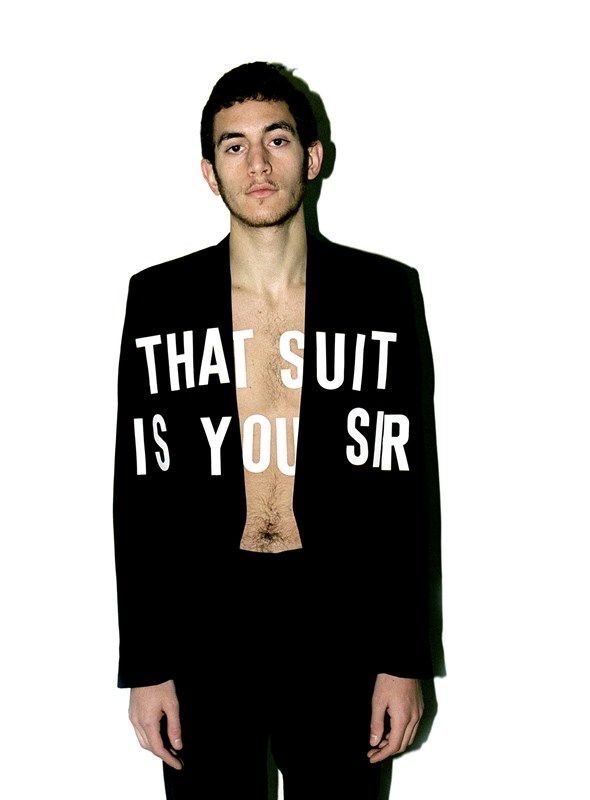 «Penso che i miei abiti da uomo stiano bene alle donne come i miei abiti da donna - ha dichiarato l'influente stilista giapponese Yohji Yamamoto al New York Times nel 1983 - mi chiedo sempre chi abbia deciso che ci debba essere una differenza nell'abbigliamento di uomini e donne». "Forget me not" si legge su un cappotto della SS04, la stampa "Will be back soon" fa capolino invece nella fw17, mentre per la FW21 le scritte si moltiplicano e si spezzano ricoprendo un completo due pezzi, frasi brevi, ermetiche, ammiccanti o evasive che decorano capi genderless rigorosamente neri. Probabilmente il primo a presentare un completo screen printed resta tuttavia Martin Margiela, nel lontano 1999. La sfilata spring-summer racchiudeva una sorta di greatest hits: le stampe trompe l'oeil facevano riferimento a quelle presentate per la primavera del '96, gli abiti da bambola a misura d'uomo erano una citazione rispetto all'autunno del '94 e i top dei manichini Stockman una reference alla primavera del '97, a chiudere la sfilata una stampa che percorreva il blazer nero e il petto nudo del modello: "This suit is yours sir".