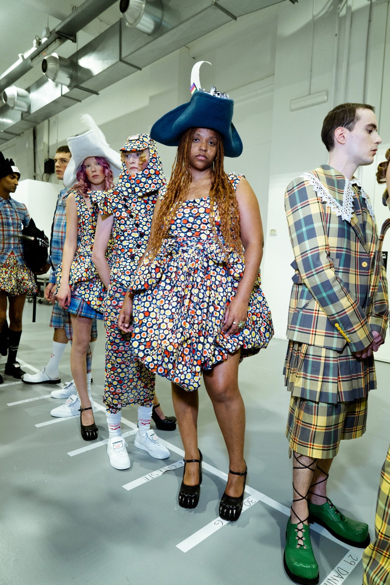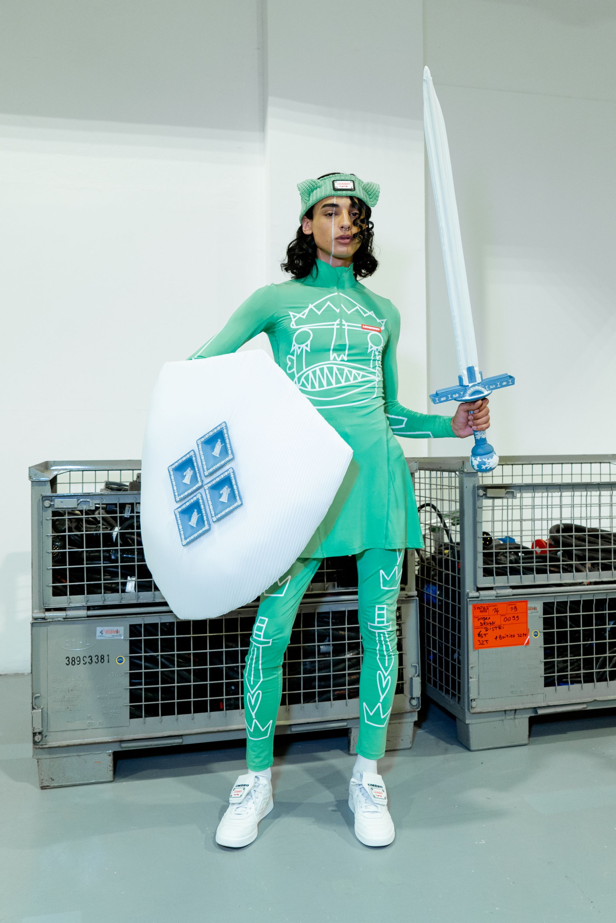 La collezione è nata in un periodo piuttosto turbolento per il Regno Unito. La Regina era morta, io stavo facendo ricerche a settembre, e sentivo di star perdere il controllo su molte cose, quindi per me è stato interessante usare una collezione per creare un mio spazio all'interno della turbolenza. Ho scoperto che eravamo in un'epoca... Carleiana? Prima eravamo nell'era elisabettiana, ora però abbiamo Re Carlo e anche il mio nome è Charles. E dunque ho pensato a come sarebbe stata un'epoca Carleiana - provando anche a raccontare di una realtà in cui tutti possono indossare la corona in una sorta di gioiosa controcultura: è colorata, apprezza le arti e la cultura, ma anche il benessere e l'abbigliamento sportivo.
