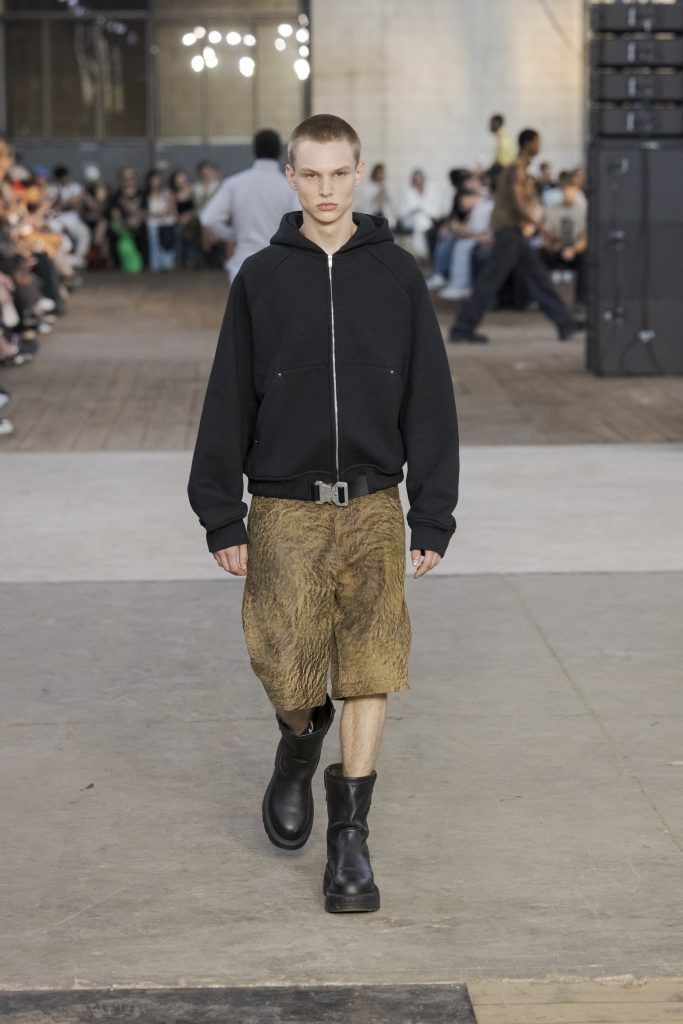 Lunghi, corti, sopra e sotto il ginocchio, stretti ad avvolgere la gamba o più larghi per accompagnarne i movimenti, gli short (che qualcuno ancora ama chiamare pantaloncini) sono stati tra i protagonisti assoluti di questa Fashion Week a Milano, complice il caldo che ha colpito la città in questi giorni. Capo basico per eccellenza, insieme a pochi altri è l’ambasciatore perfetto per rappresentare l’evoluzione del guardaroba maschile che, in maniera nemmeno troppo silente, va ormai in scena da svariate stagioni. Matthew M. Williams da Alyx li ha resi un simbolo di continuità con lo streetwear che il designer americano porta avanti da tempo: multi-pocket in pelle che sfiorano il ginocchio o shorts corti che sembrano costumi da bagno. Il designer americano non disdegna nemmeno una versione con stampe militari o nascosti sotto un lungo cappotto sartoriale. Diverso è il discorso per Domenico Dolce e Stefano Gabbana, che rendono i loro shorts così stretti da somigliare quasi a degli underwear, ricoperti di stampe o semi nascosti da abiti trasparenti. E se non possono mancare quelli in salsa Y2K con un tocco preppy di DSQUARED2, Marco de Vincenzo li rende complementari ai suoi outfit con un gioco di stampe e pattern su pantaloni dal fit variegato.