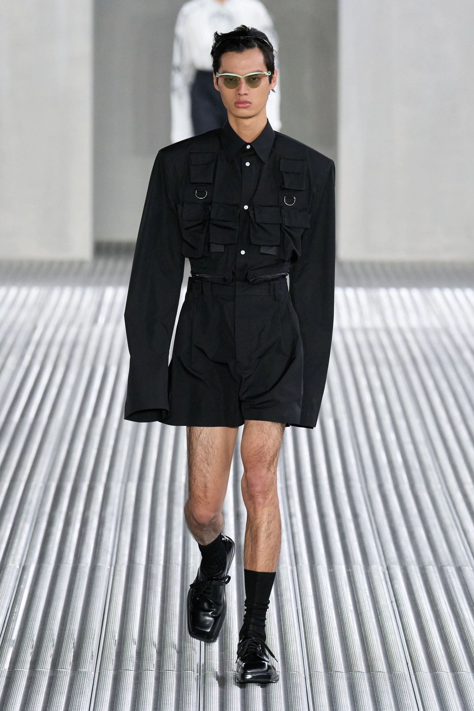 Per Pierpaolo Piccioli sono ormai parte della sua idea di guardaroba maschile, ridefinendo anche il concetto dei look delle celebrities, come dimostrato prima da Pedro Pascal sul red carpet del Met Gala e poi da Jacob Elordi, tra gli ospiti dello show nel chiostro dell'Università degli Studi di Milano, con un fit che ha catturato l'attenzione dei presenti e non solo. Raf Simons e Miuccia li rendono invece protagonisti assoluti dei loro look, abbinati con dei blazer dalle maniche lunghissime del designer belga o con le camicie dalle stampe "pradesche", fino ai vest multi pocket dall’ispirazione fisherman. Oltre la banale ricerca del trend, quanto visto in questi giorni di moda milanese è la testimonianza di come un semplice capo riesca a assumere forme e incarnare idee e visioni diverse pur mantenendo vivo il suo spirito e il suo intento originario, raccontando perfettamente il processo di evoluzione e rinnovamento che sta vivendo il guardaroba maschile in questi anni.