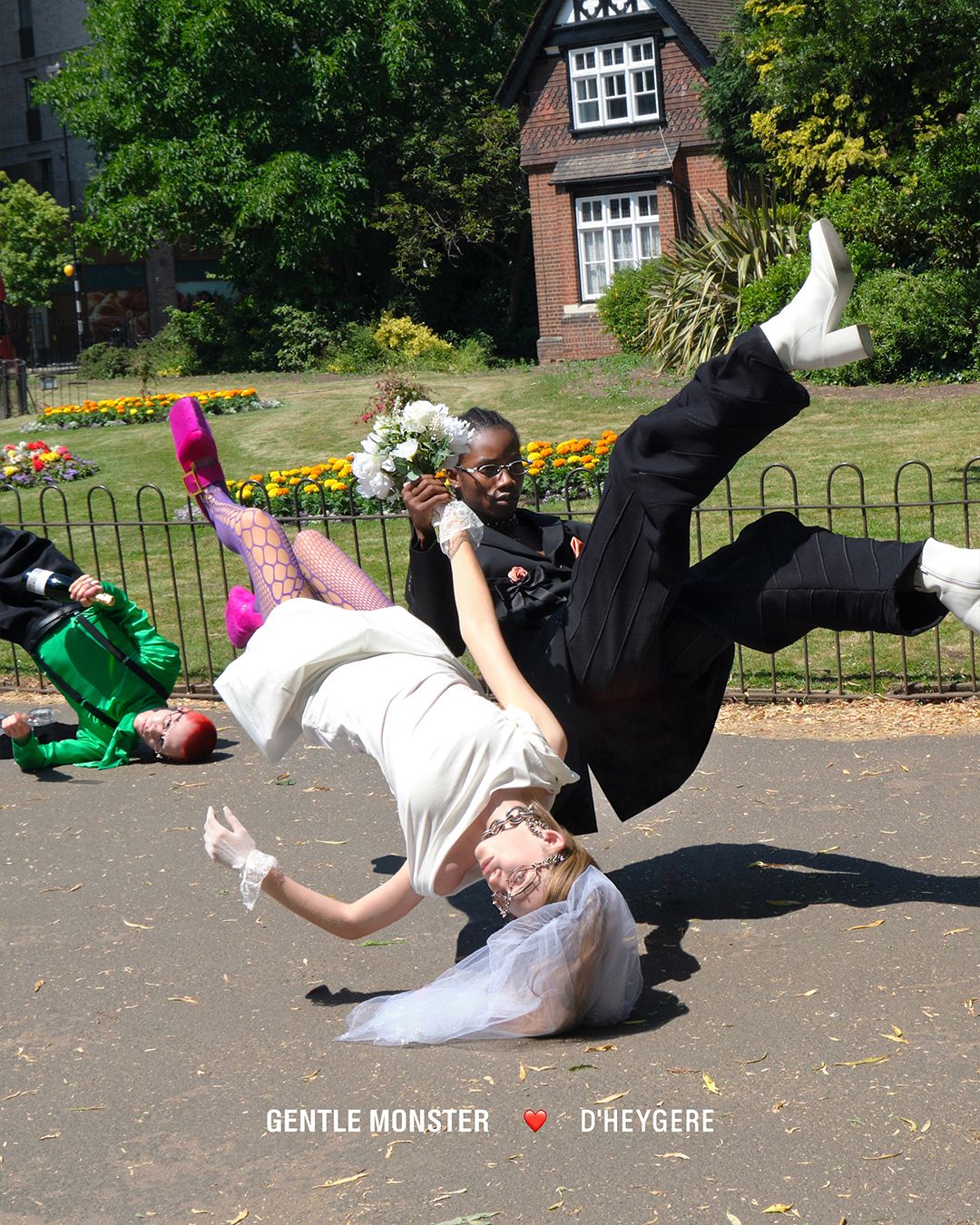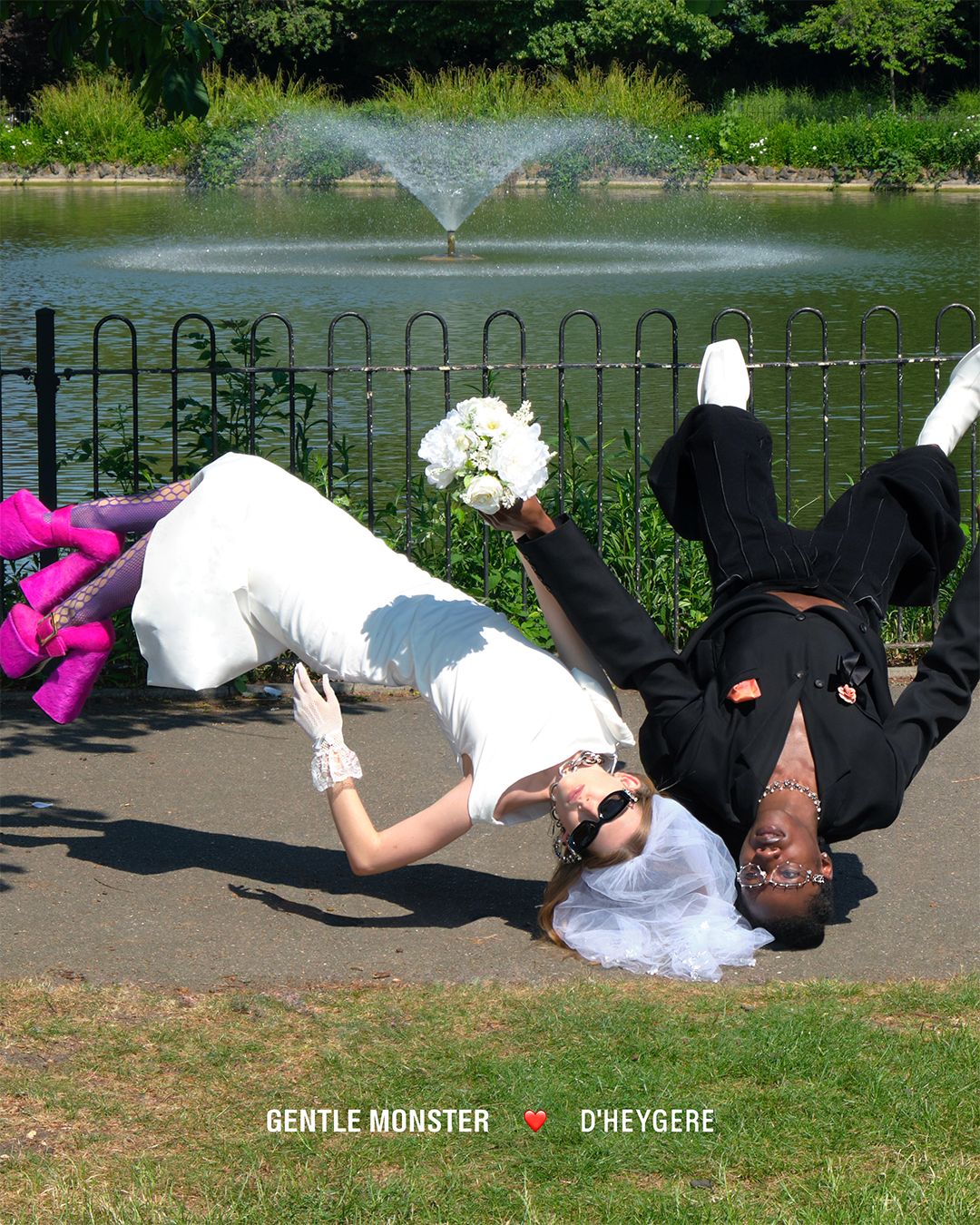 La campagna della collaborazione, a realizzata dal fotografo londinese Yis Kid, presenta un bizzarro e unico matrimonio tra Gentle Monster e D'heygere, simboleggiando il profondo legame tra i due brand nonostante la distanza geografica e il fuso orario che separano Seul e Parigi. Questo concetto creativo riflette la natura immaginativa e innovativa della collaborazione. Il pacchetto della collaborazione Gentle Monster x D'heygere incarna magnificamente il concetto di "bellezza senza tempo degli oggetti trovati", fondendo le identità funzionali e filosofiche di entrambi i brand. Il pacchetto, che ricorda una scatola per gioielli, offre un tocco fresco al design classico. All'interno, un cuscino per gioielli svolge anche la funzione di custodia per gli occhiali, aggiungendo un ulteriore significato concettuale all'intero pacchetto.