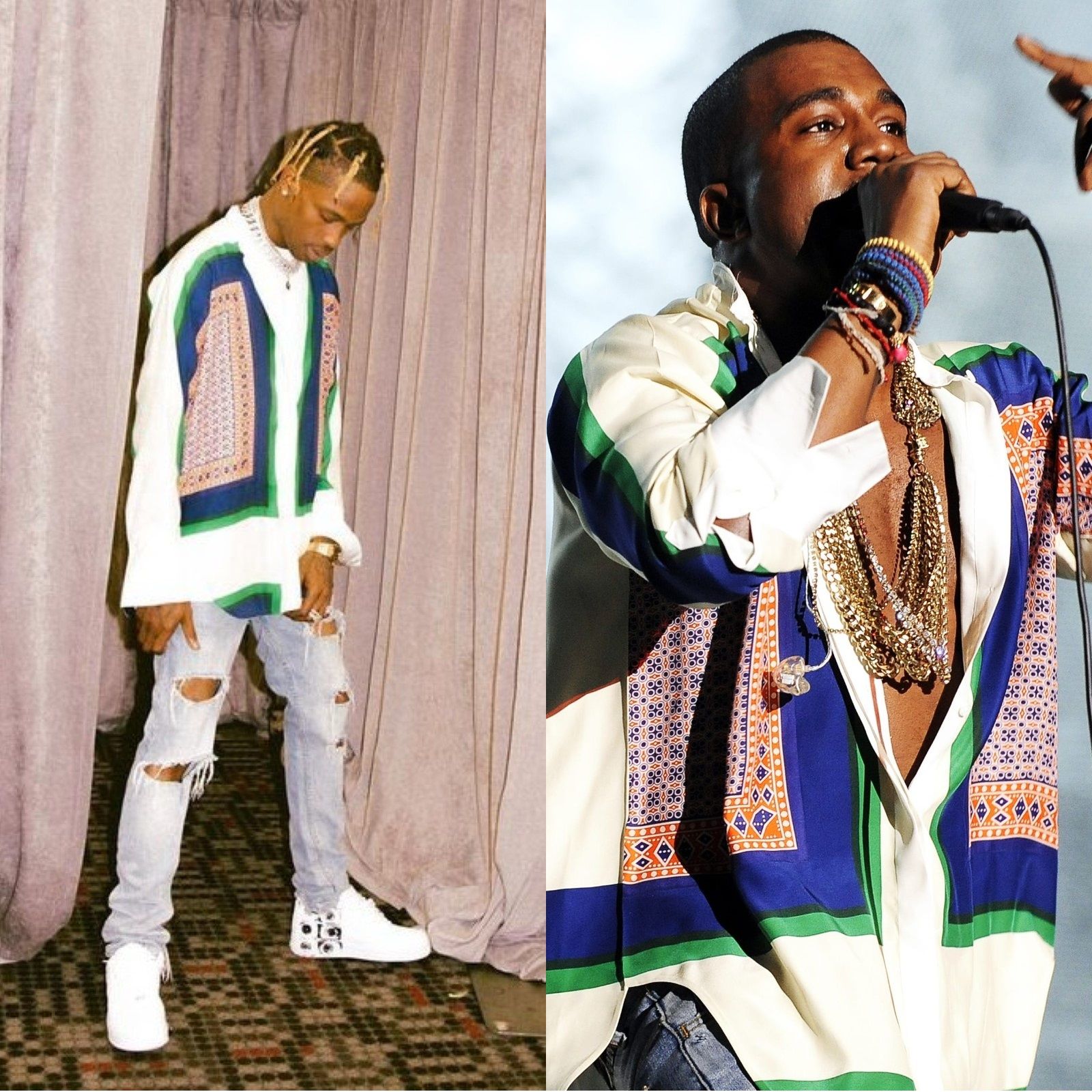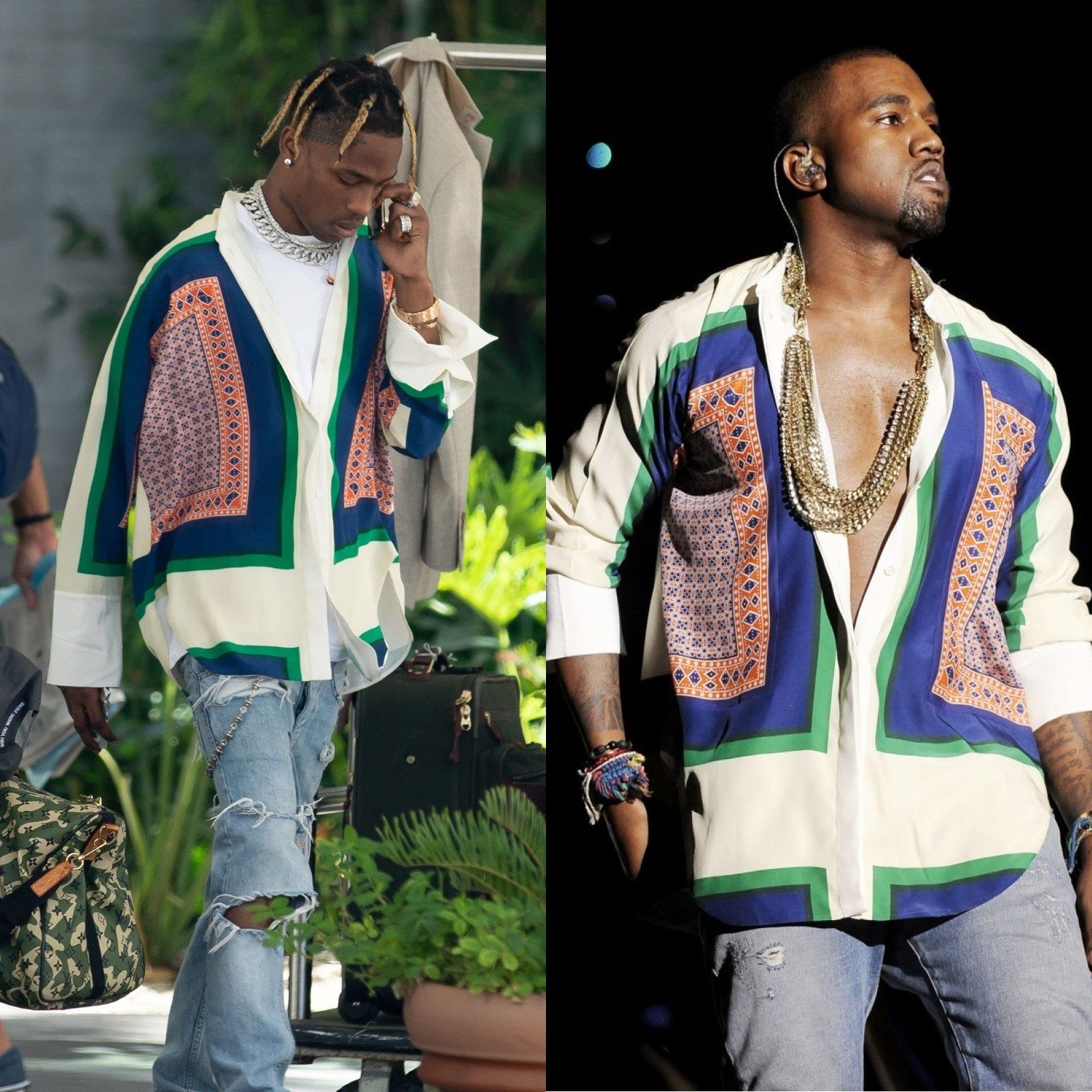 Nel 2018 Travis Scott finì addirittura su Vogue per aver indossato la stessa camicia della collezione SS11 del Celine di Phoebe Philo. La camicia era stata resa un classico sette anni prima da Ye, che l’aveva indossata per una storica performance al festival di Coachella. Forse questa è la citazione più diretta che Scott abbia mai fatto al vestiario di Ye – anche la più apprezzabile.