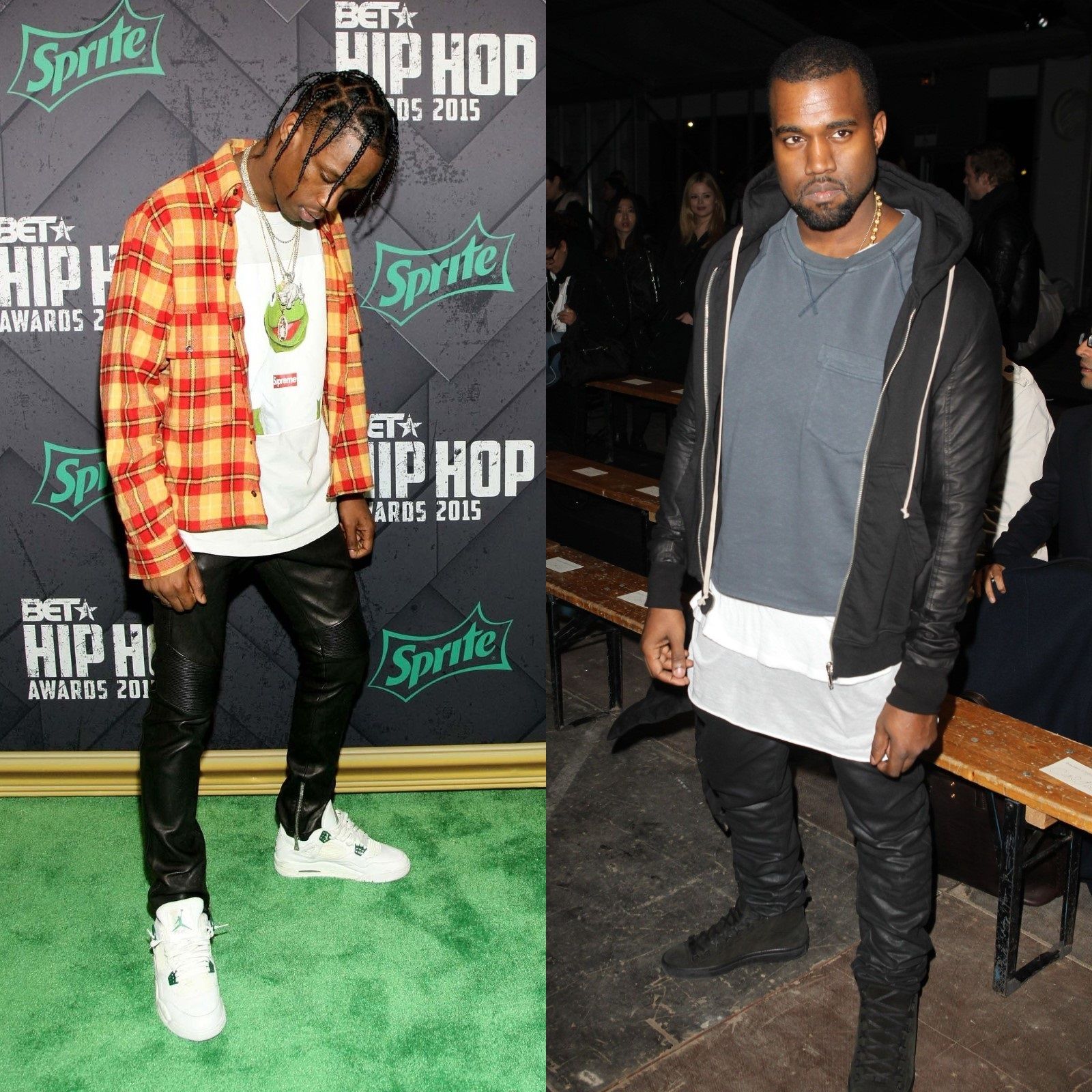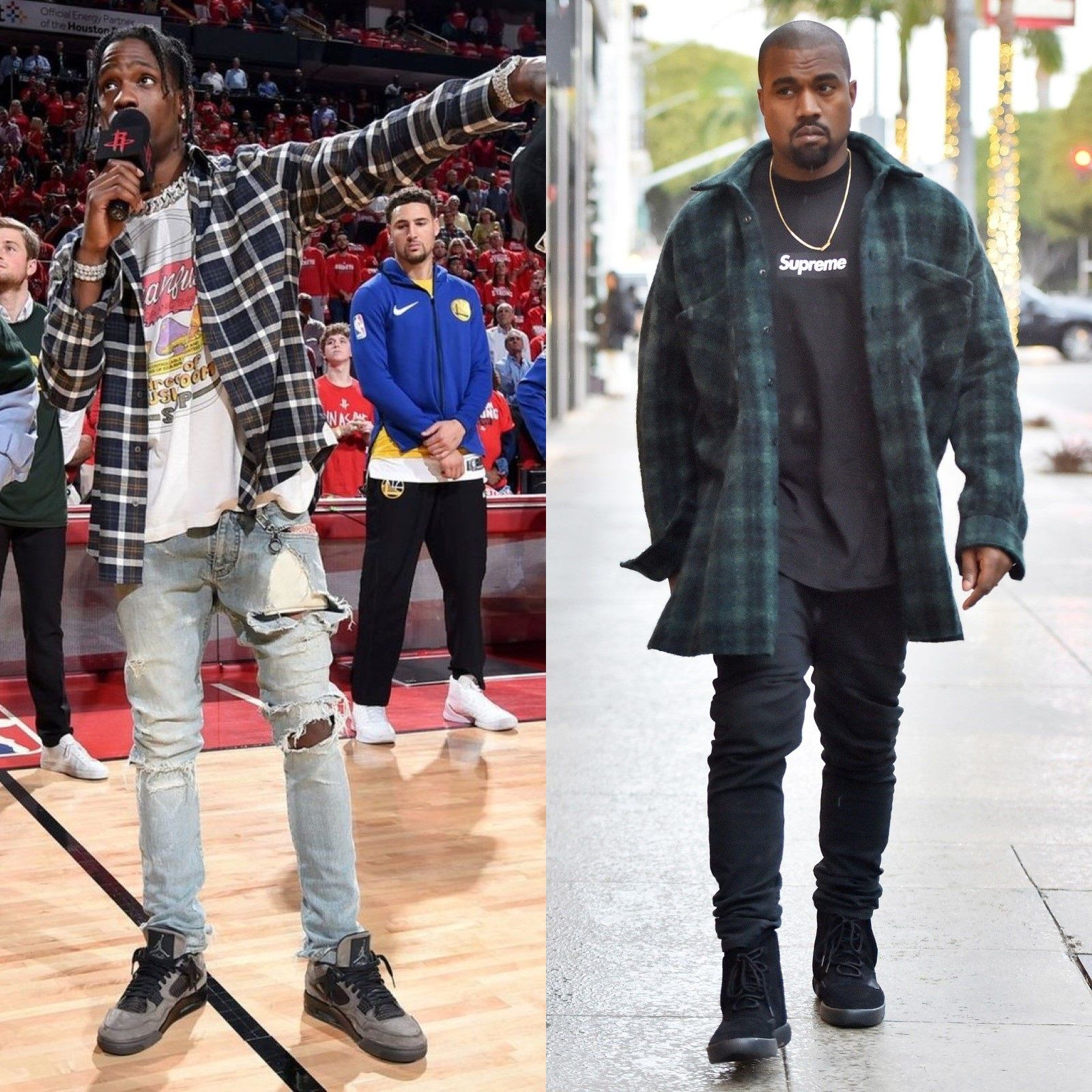 Ma le somiglianze non si limitano, come si diceva, soltanto alla musica, estendendosi anche ad alcuni tratti di stile che Scott parrebbe aver assorbito da West. Pur avendo i due maniere di vestire parecchio diverse (a un certo punto è stato anche A$AP Rocky ad aver accusato Scott di avergli rubato i vibes) alcune similarità esistono. Abbiamo elencato le più evidenti.