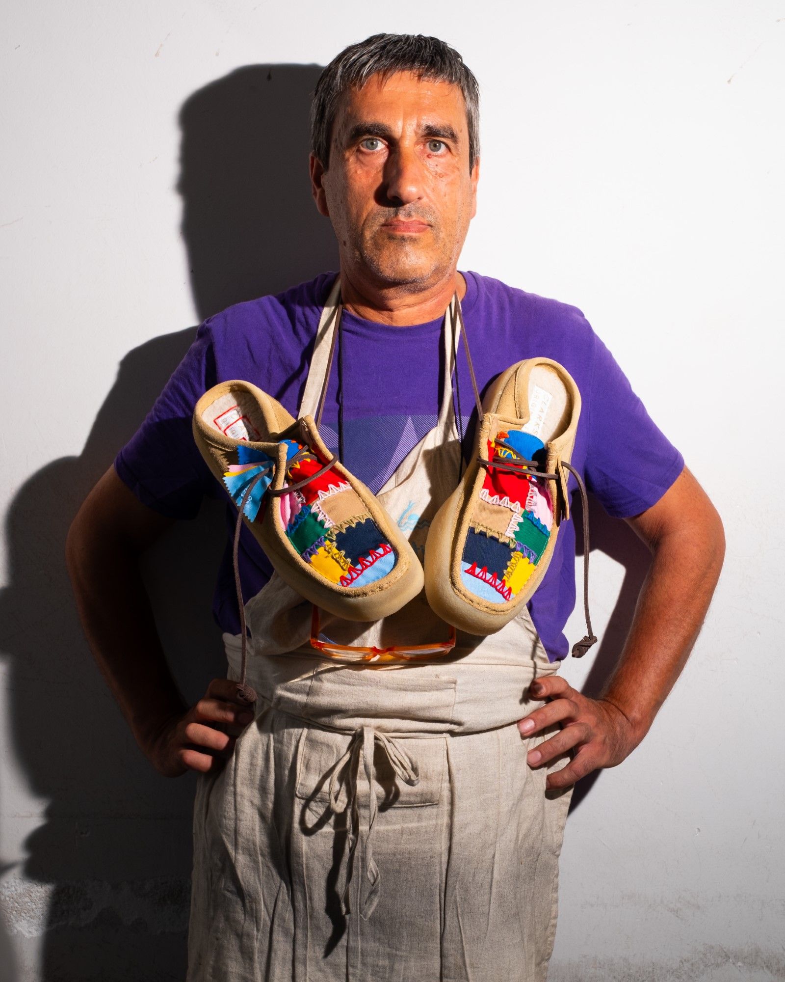 Nel mondo della moda e del footwear, l'innovazione spesso si fonde con la tradizione artigianale per creare prodotti unici. Questo è il caso di Clarks e LC23, che si sono uniti per presentare una straordinaria creazione: le Wallabee Cup LO customizzate, con una tomaia patchwork ricamata a mano, realizzata con i tessuti raccolti nel magazzino pugliese di LC23. Questo rende ogni paio di scarpe unico, con una storia da raccontare. Le foto di questa collezione di Wallabee unice, scattate dall'artista Piero Percoco nei laboratori pugliesi di LC23, catturano l'anima di questa collaborazione straordinaria raccontando anche la dedizione degli artigiani di LC23 al proprio lavoro. Gianni, un esperto tagliatore con 30 anni di esperienza presso LC23, e suo figlio Fabio, che segue le orme del padre, sono i volti che animano la campagna, raccontandone tutta l’autenticità dato che è proprio la tradizione artigianale tramandata di generazione in generazione a rendere queste calzature così speciali.