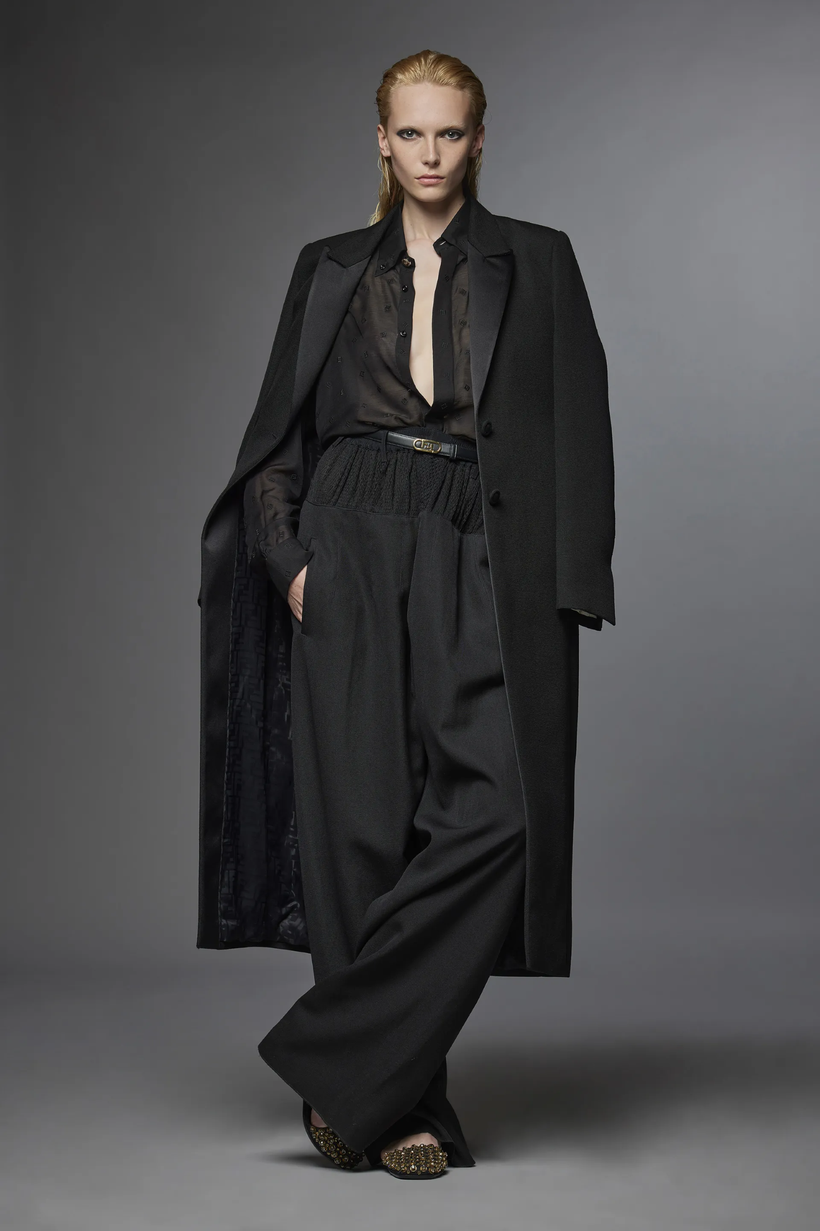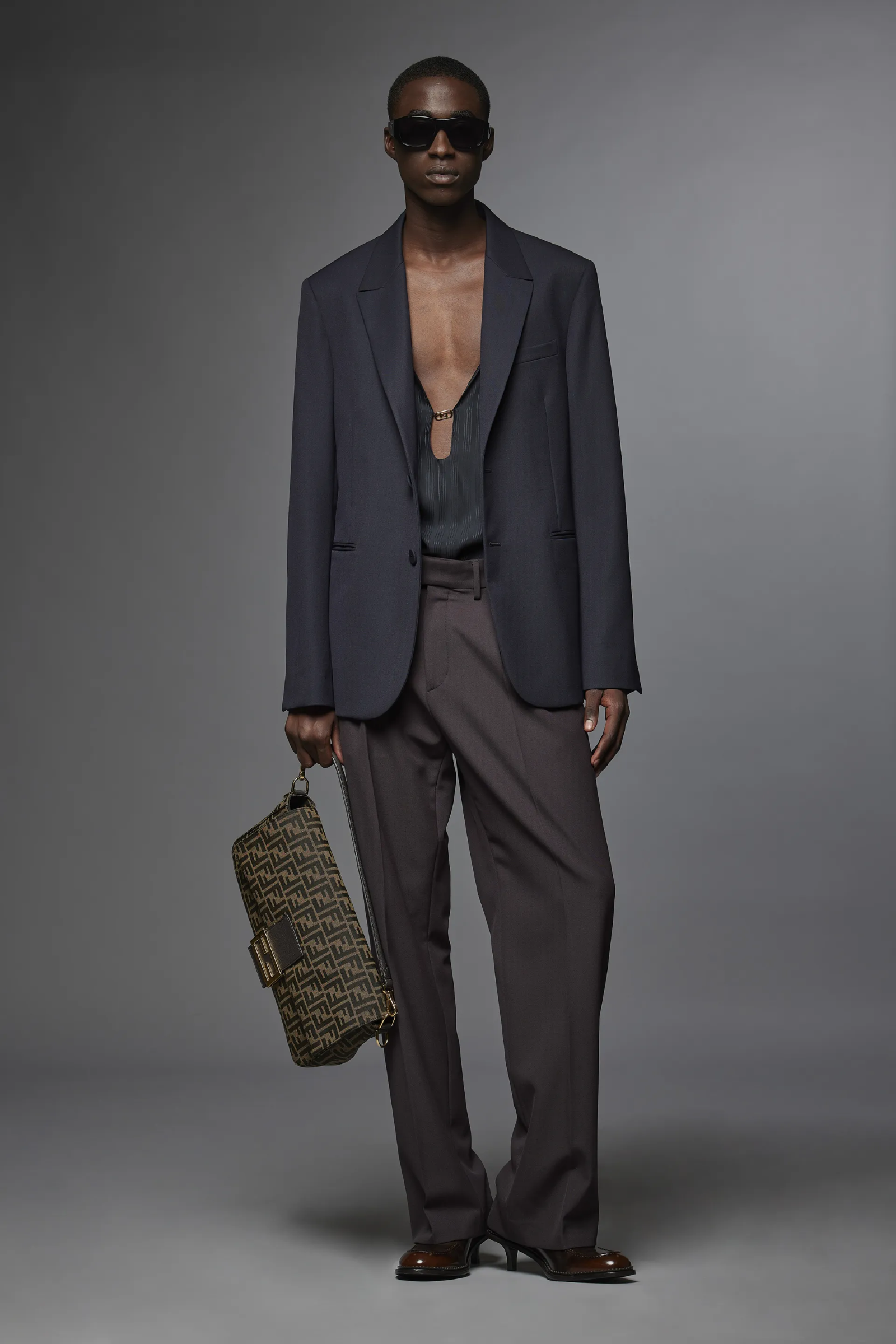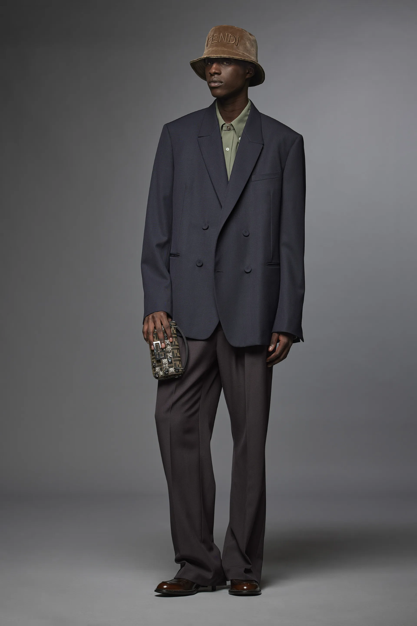 Per la sua Resort 2024 di Fendi, Pilati ha fatto riferimento alle epoche progressiste degli anni '20 e '60, due momenti storici definiti dalle lotte di genere per l’emancipazione femminile. Dagli anni ’20 proviene l’ispirazione alle flapper, le donne in bob cut che guidavano e ascoltavano jazz rivendicando la propria indipendenza e simboleggiate dalla diva del cinema muto Louise Brooks. Erano donne viste come una minaccia per la mascolinità ma che oggi rappresentano un simbolo di liberazione. Riferendosi al loro costume tradizionale Pilati ha riempito la collezione di vite basse, di bucket hat che fanno cenno alla silhouette anni ’20, tacchi décolleté con un cinturino che ricorda le Mary Jane, forme libere che avvolgono il corpo, abiti il cui busto e la cui vita ricorda il classico robe de style ma privo della gonna voluminosa. In particolare, è notevole il taglio delle giacche vagamente spioventi e dai revers rettangolari. Inoltre, Pilati ha rifatto il logo "F" di Fendi, incorporandolo in stampe e jacquard. Il riferimento alla pellicceria, l'origine di Fendi, è evidente in un maglione di shearling e in un elegante cappotto a forma di uovo in tweed "animalier". Anche gli accessori sono stati disegnati da lui.