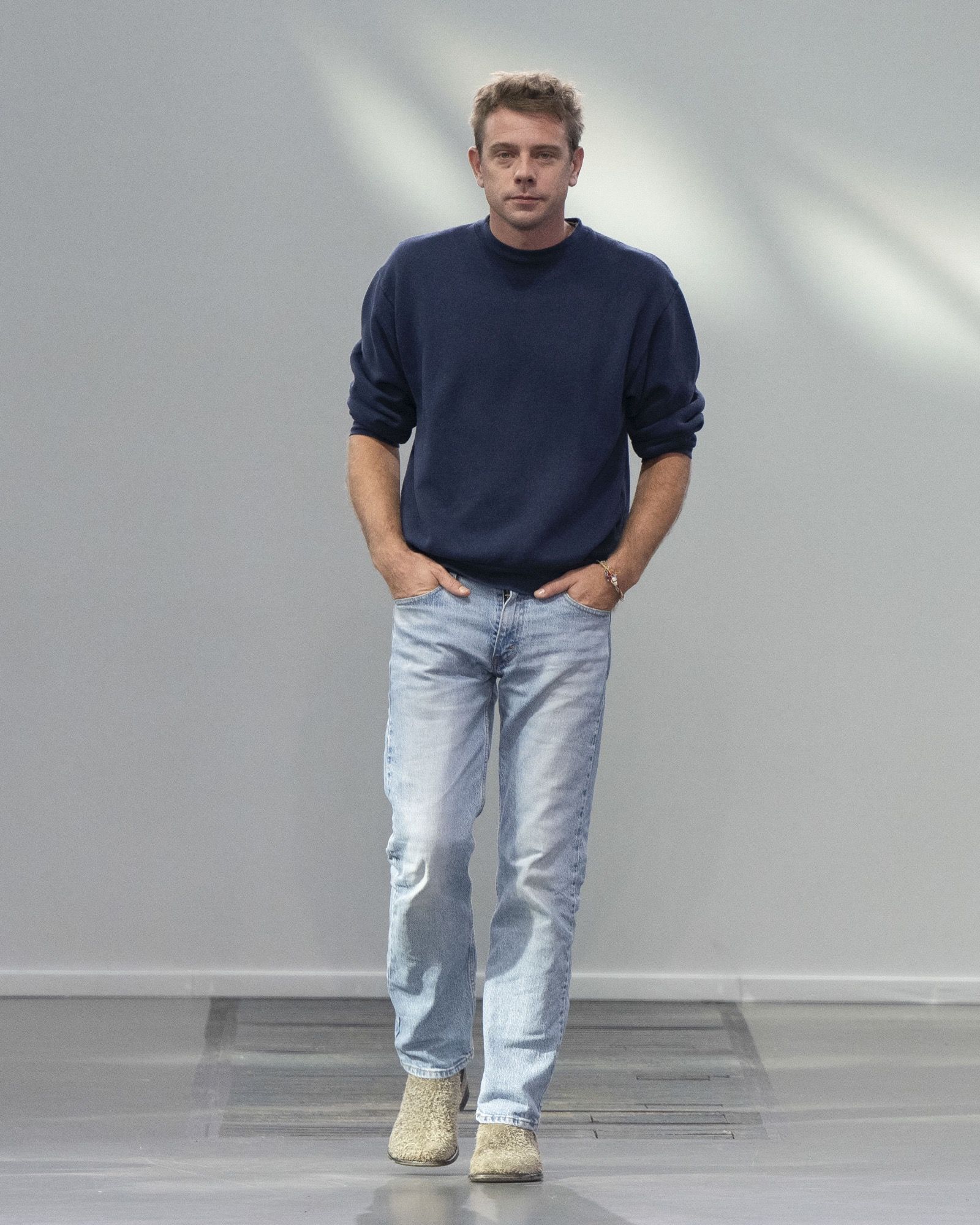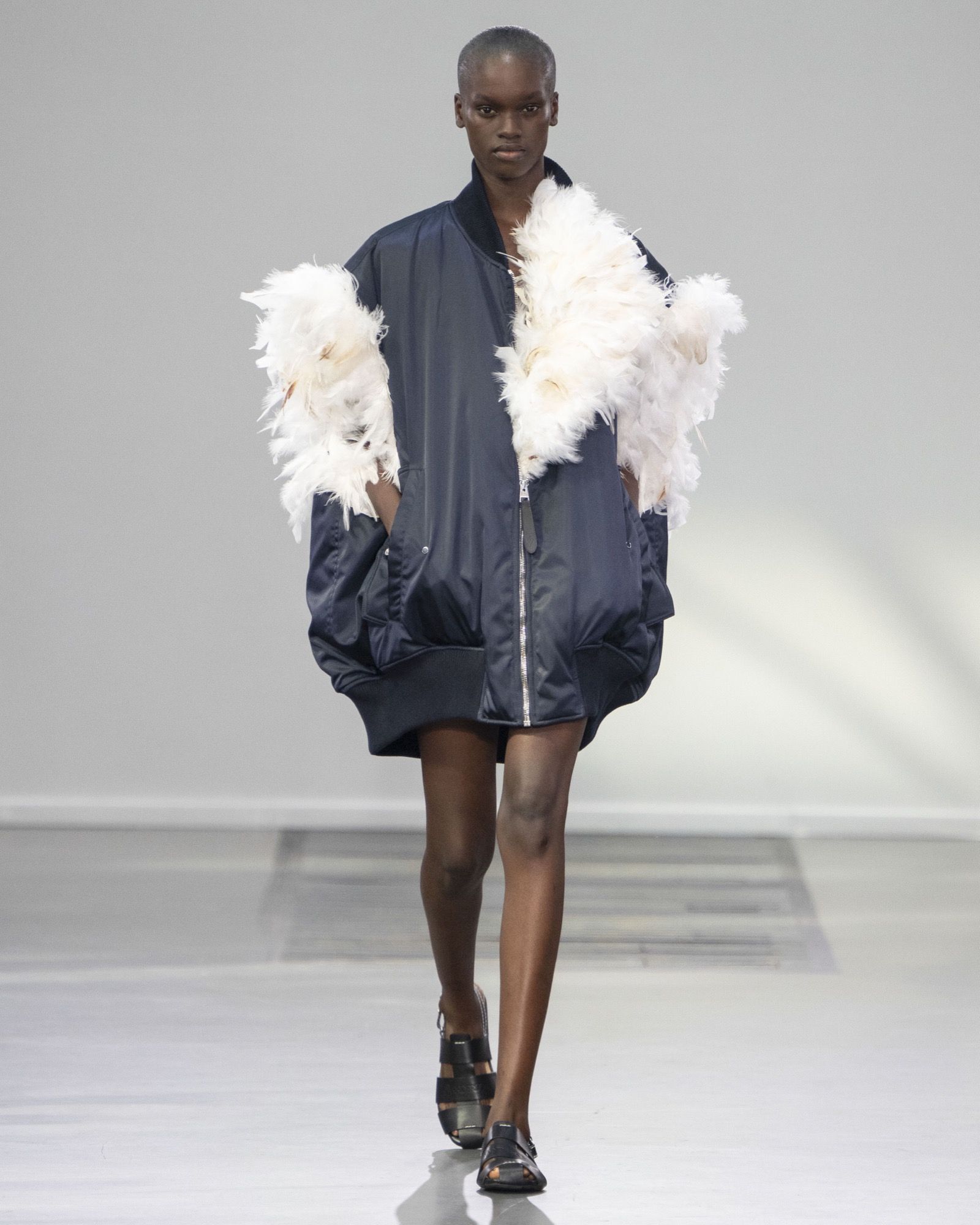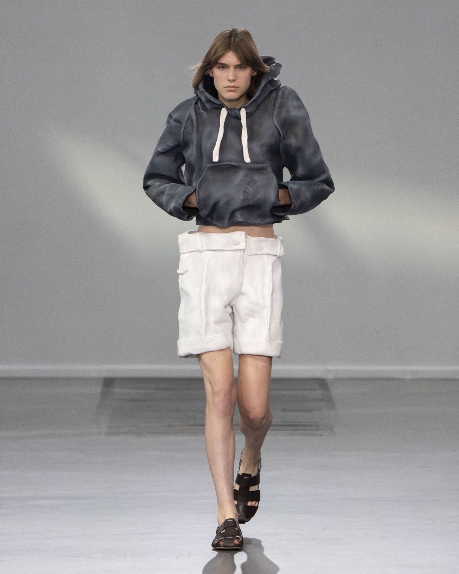 Partendo dallo street style delle principali città europee, il designer ha scelto di portare gli abiti che indossano oggi i giovani - biker jacket e pantaloni cargo - indietro nel tempo, intrecciando i codici stilistici dello stile contemporaneo, sportivo e aggressivo, con il suo inimitabile approccio autoironico e sperimentale. Il blu elettrico era accesissimo, così come l’arancione, le proporzioni erano esagerate, le silhouette spigolose e quasi comiche, i primi look, come voleva anticipare l’invito, sembravano prodotti in plastilina. A prima vista, la collezione sembra una presa in giro della moda attuale, troppo ostinata nel limitarsi a hoodie e pantaloni kaki, ma con l’ingresso in passerella dei look imbottiti, la giocosità benevola di Anderson appare ben chiara. Quelli che il designer ha presentato sono abiti che non vanno presi sul serio, non vanno studiati minuziosamente, non vanno forse neanche troppo capiti; come un gioco da bambini, come la plastilina, prendono la forma e il senso che la persona che li indossa vuole conferirgli. «Un senso di semplicità che non è così semplice» recita il comunicato della sfilata.